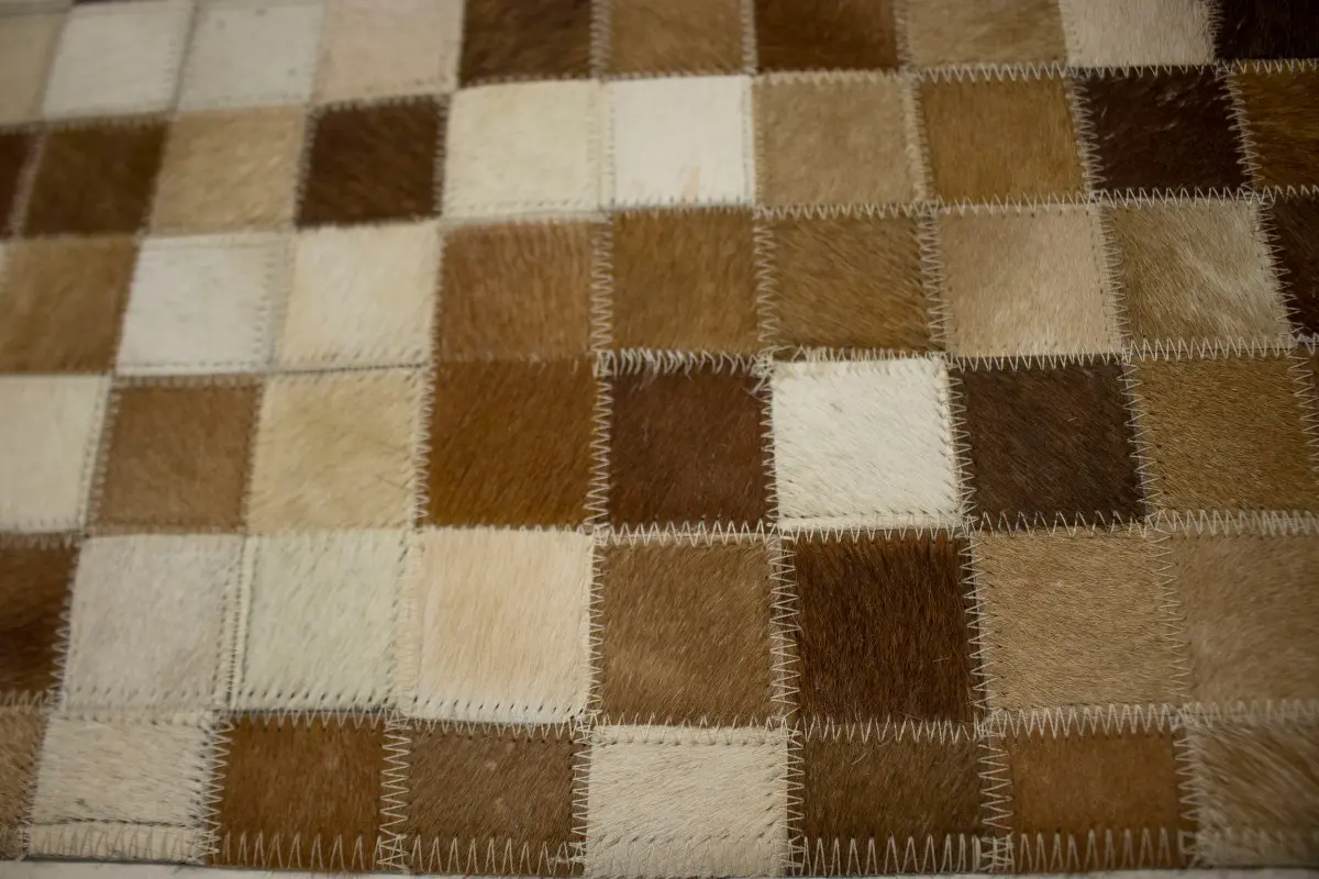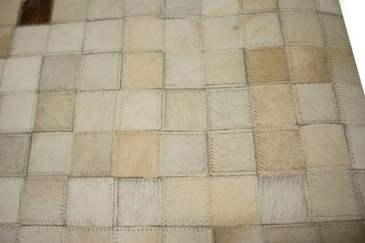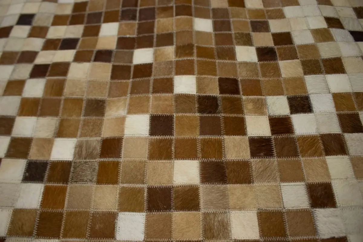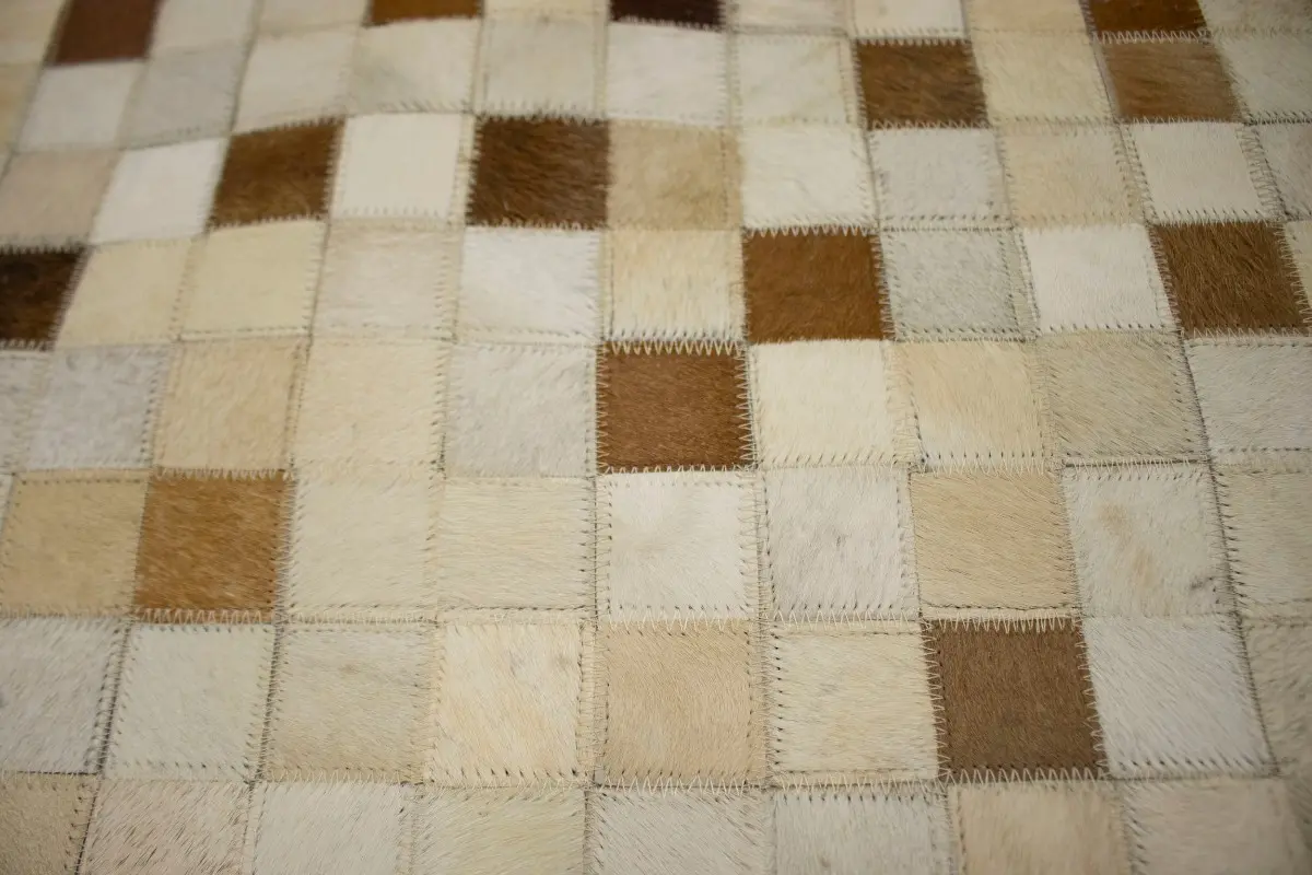 Beige Brown Cowhide 6X6 Modern Leather Square Rug