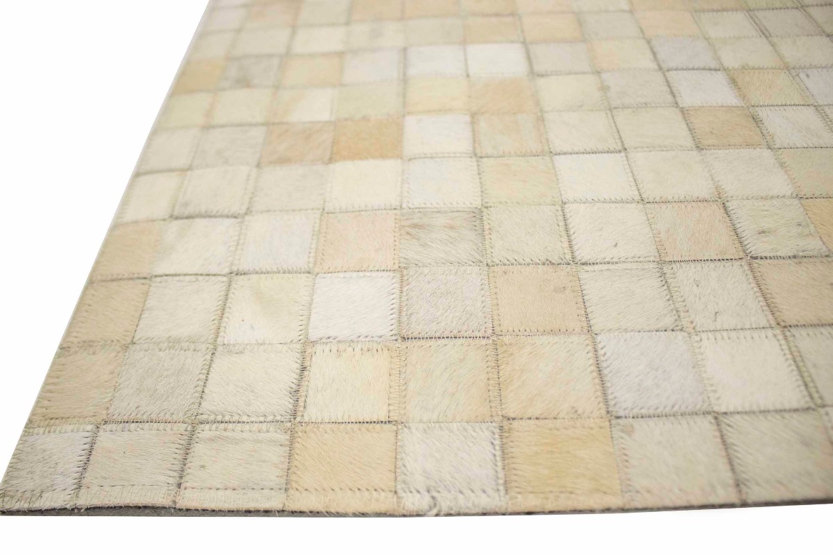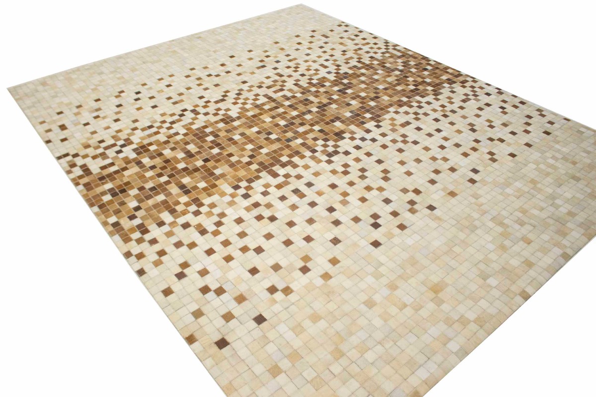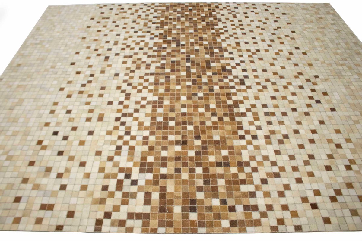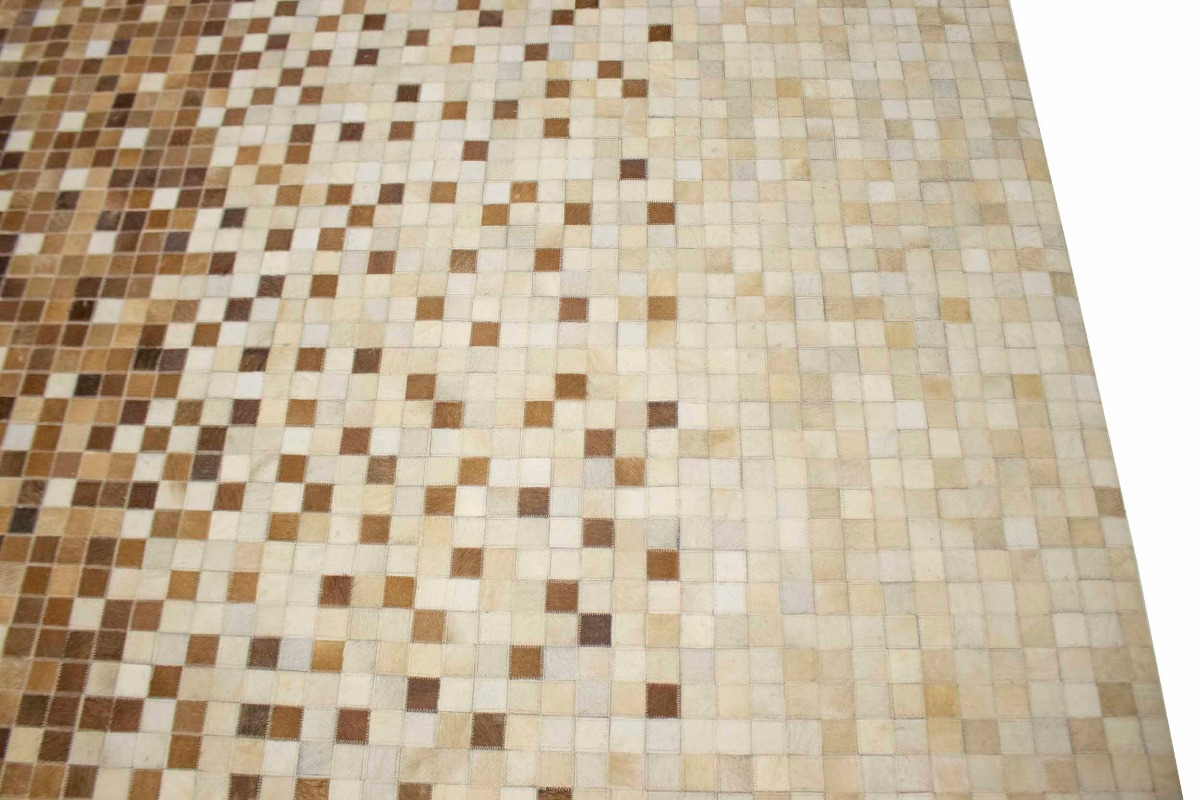 Beige Brown Cowhide 8X10 Modern Leather Rug