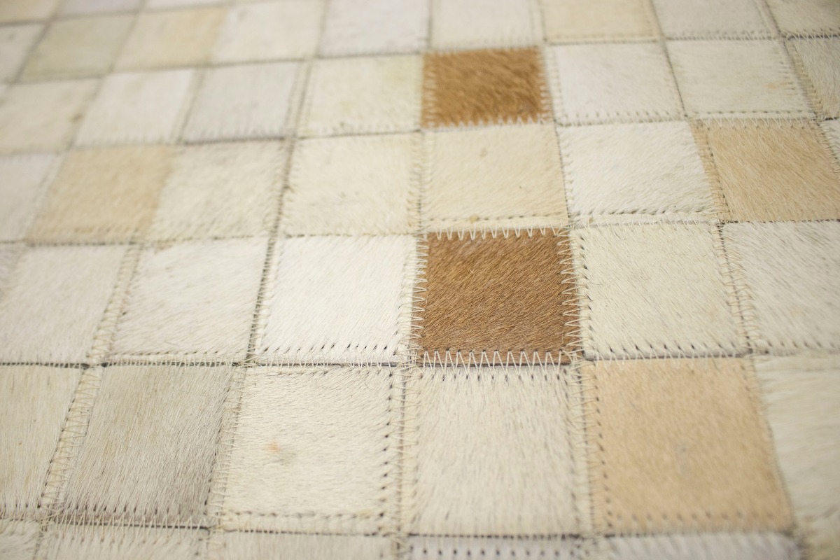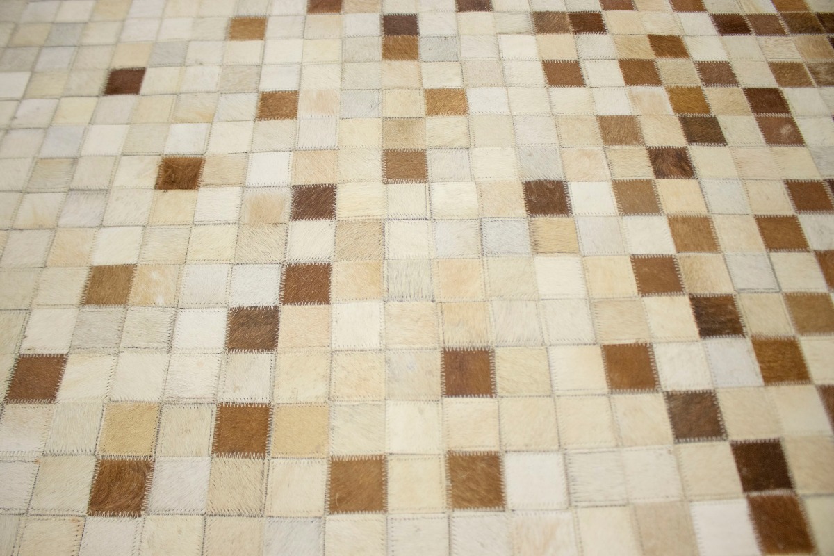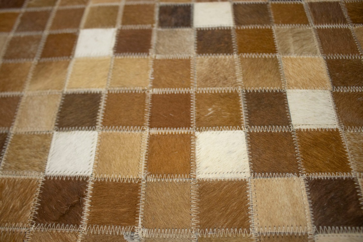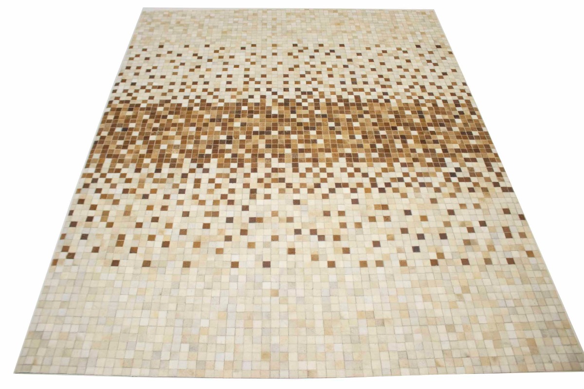 Beige Brown Cowhide 8X10 Modern Leather Rug