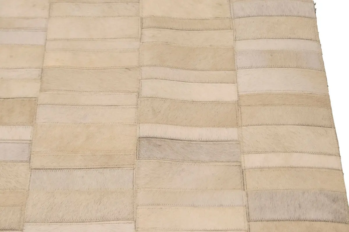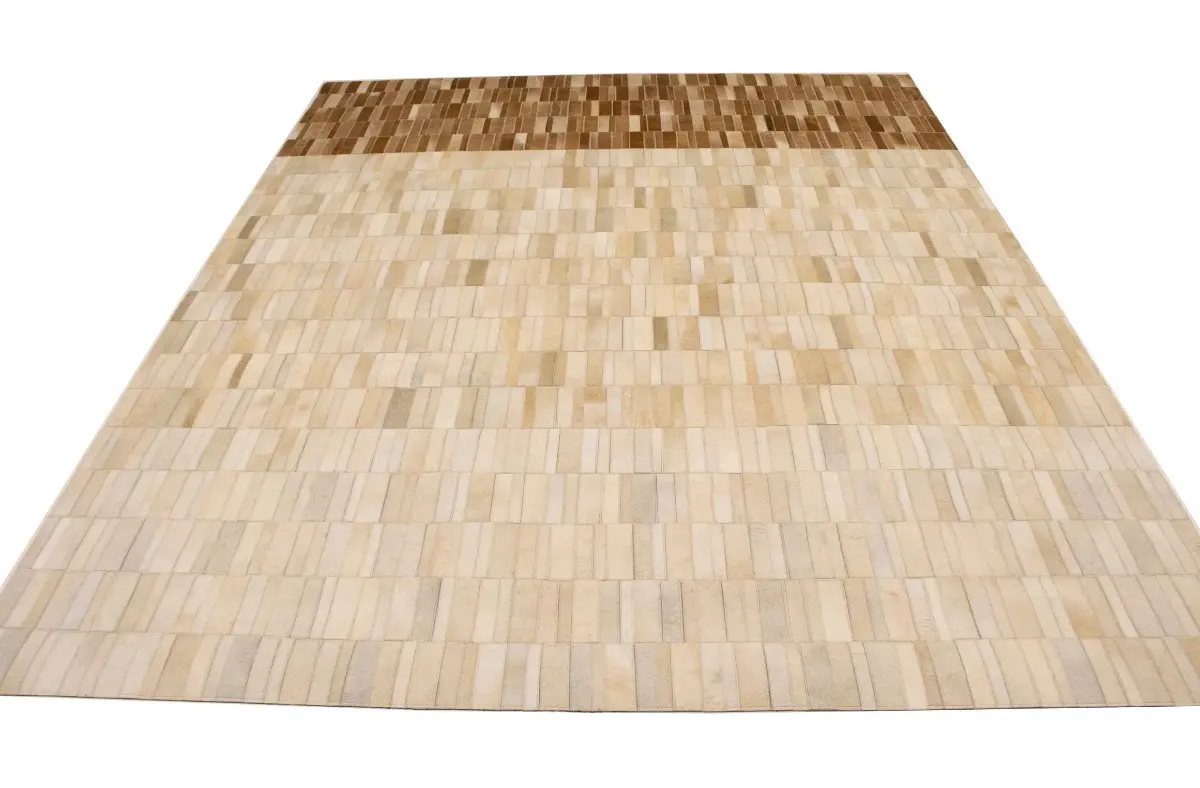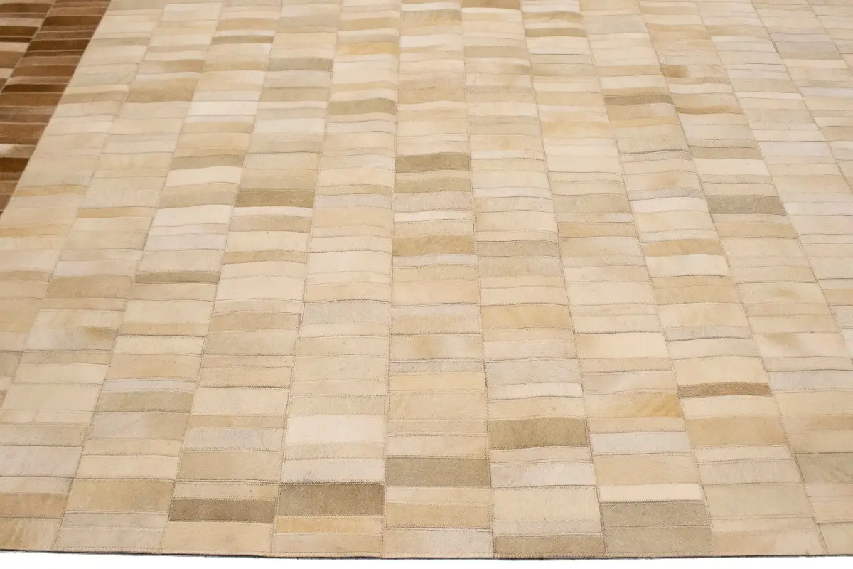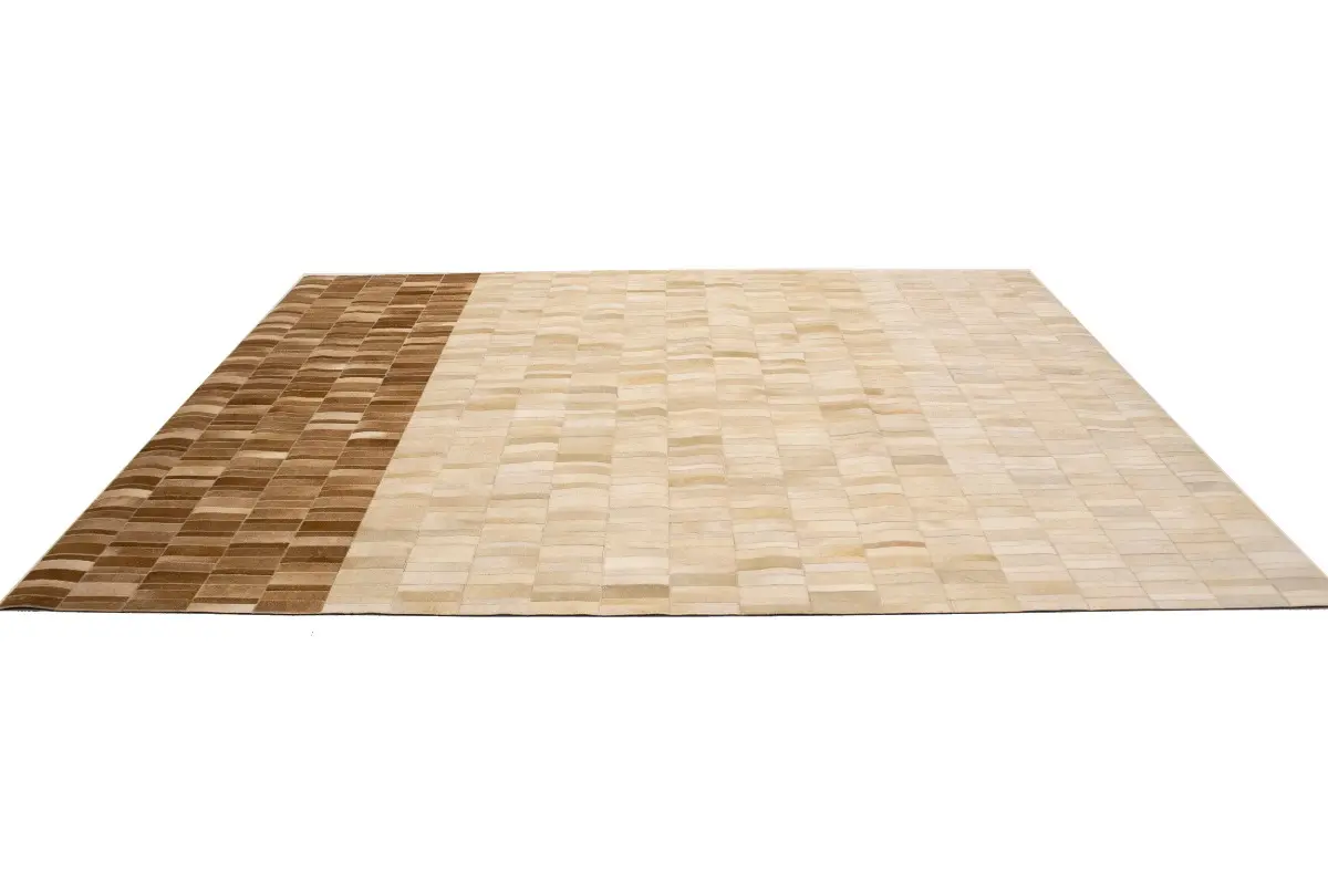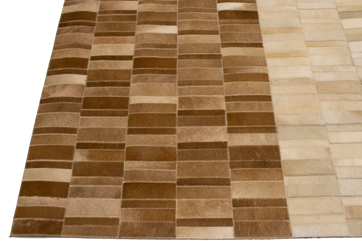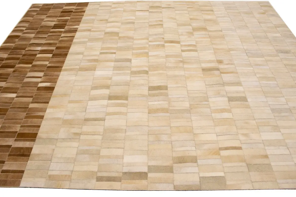 Beige Brown Cowhide 8X10 Modern Leather Rug