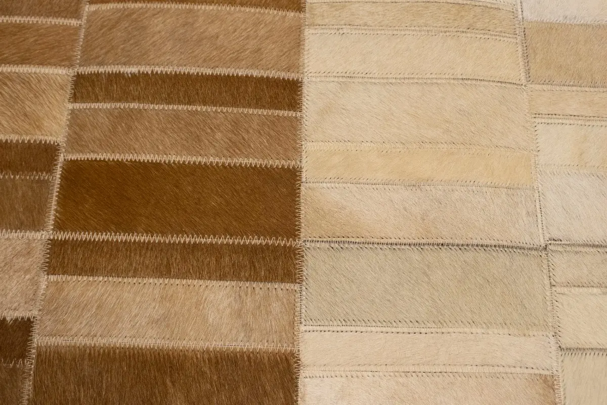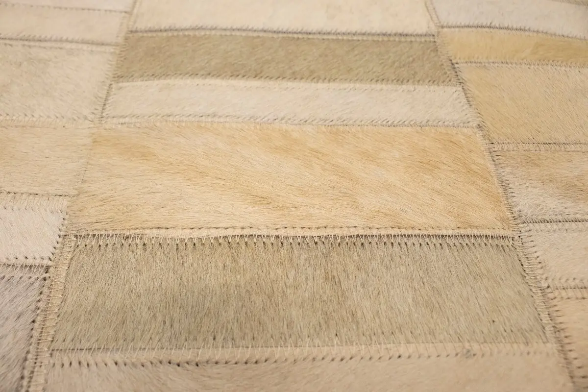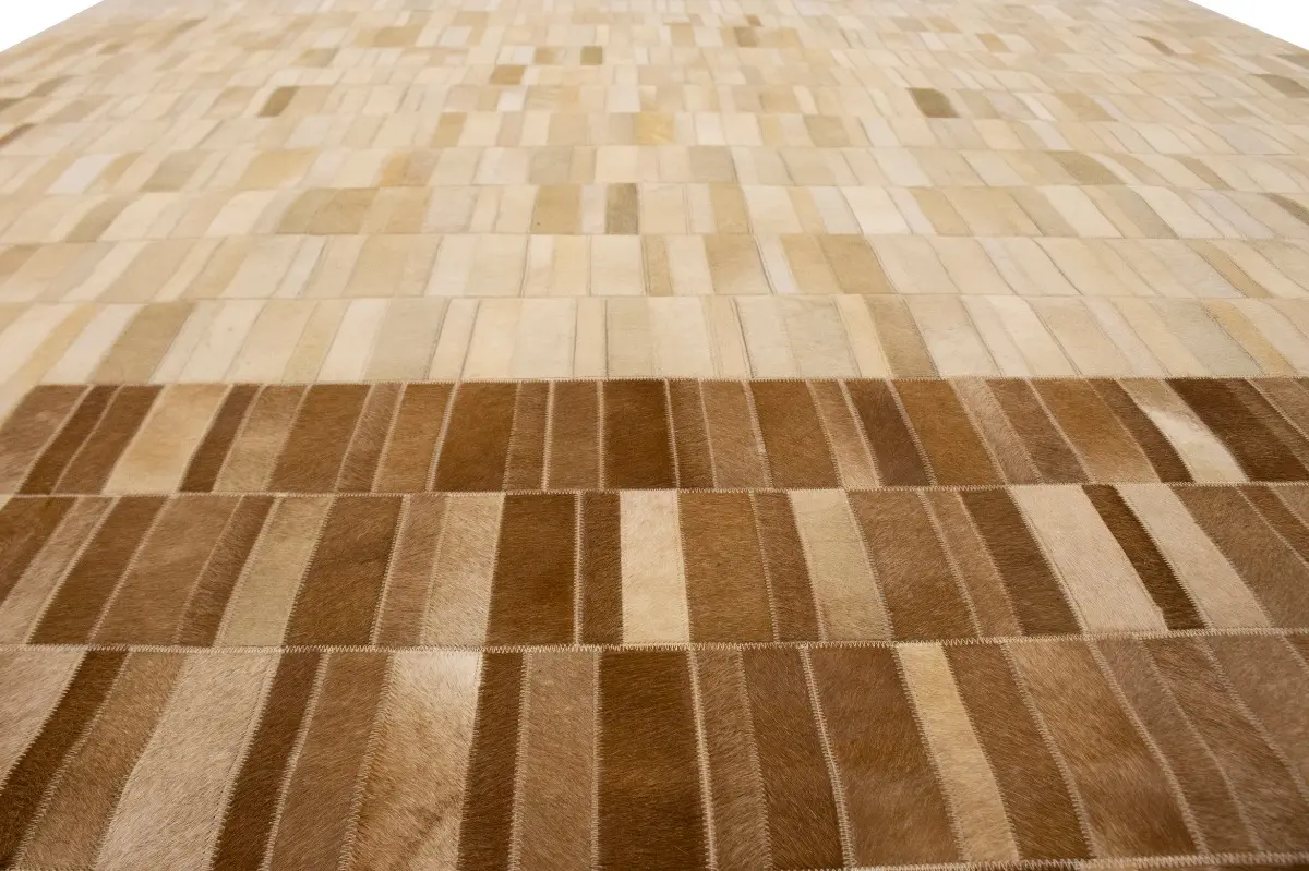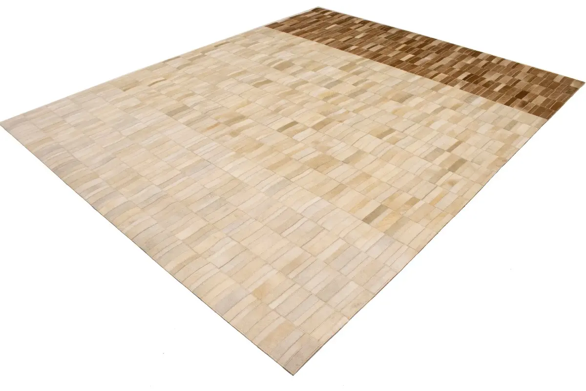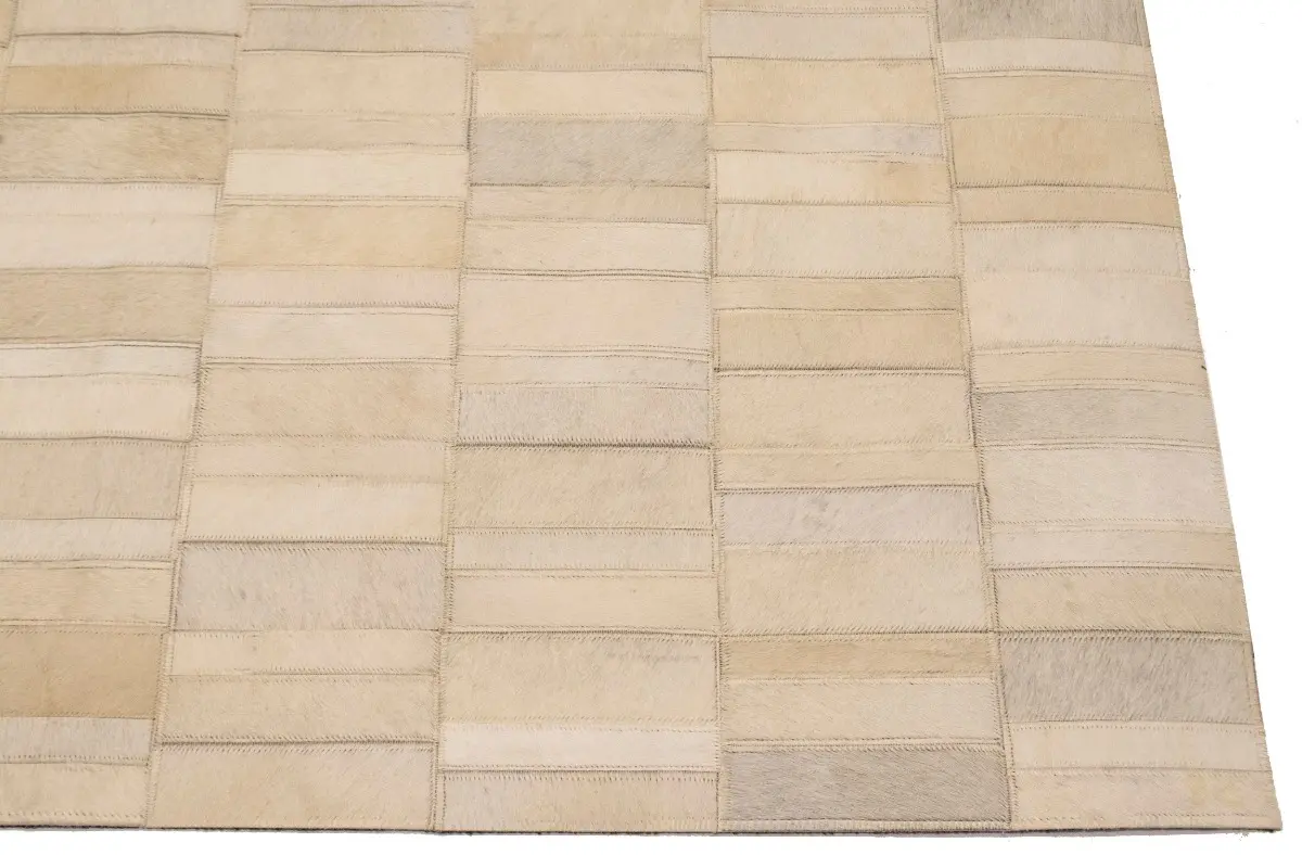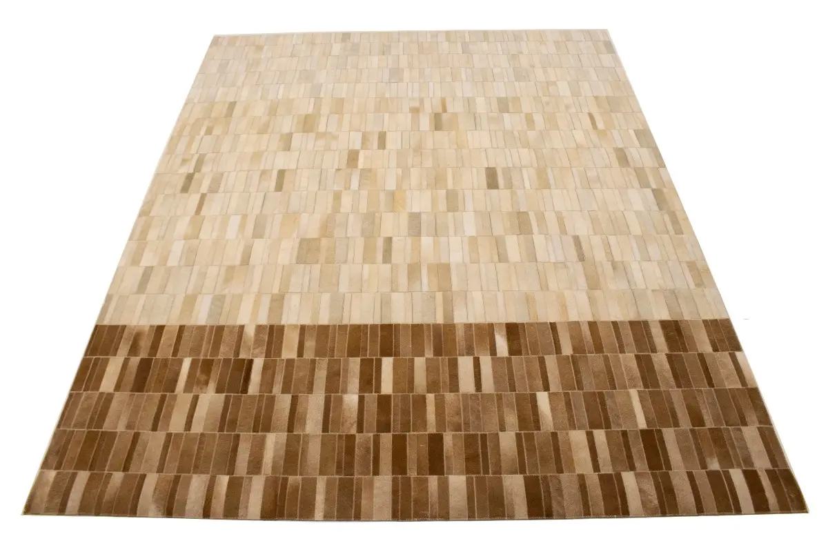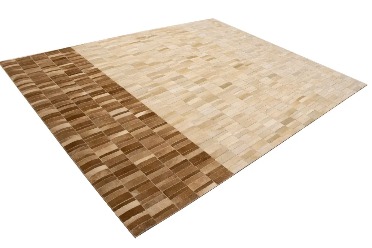 Beige Brown Cowhide 8X10 Modern Leather Rug