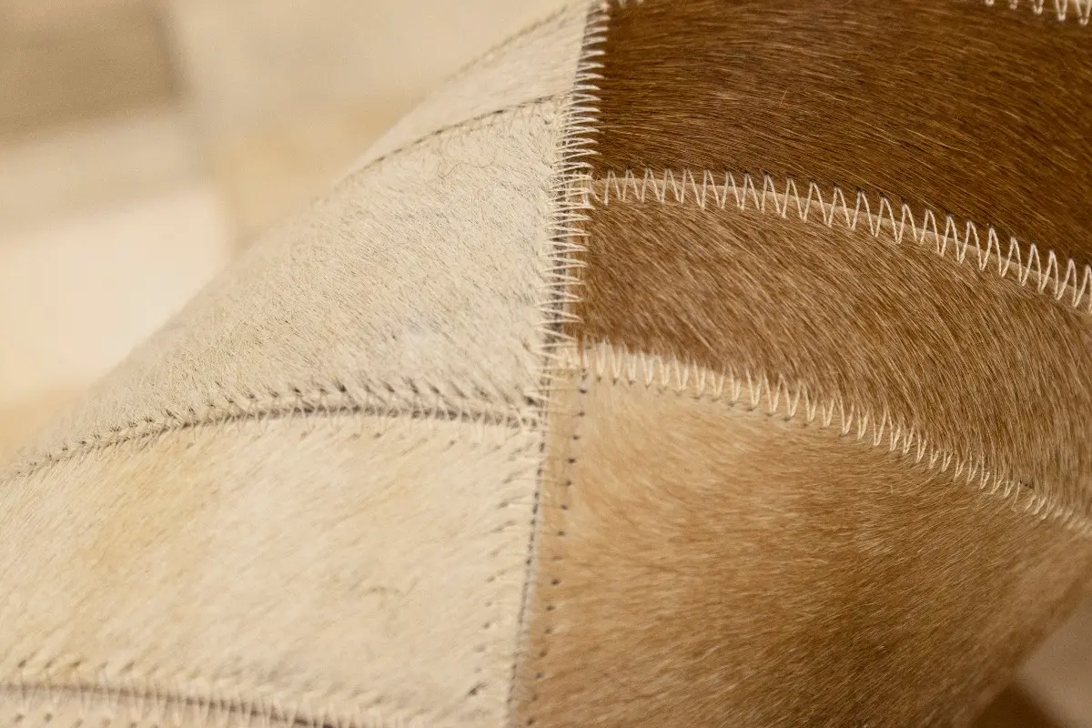 Contemporary Cowhide Patchwork 8X10 Modern Leather Rug Hand-stitched Carpet