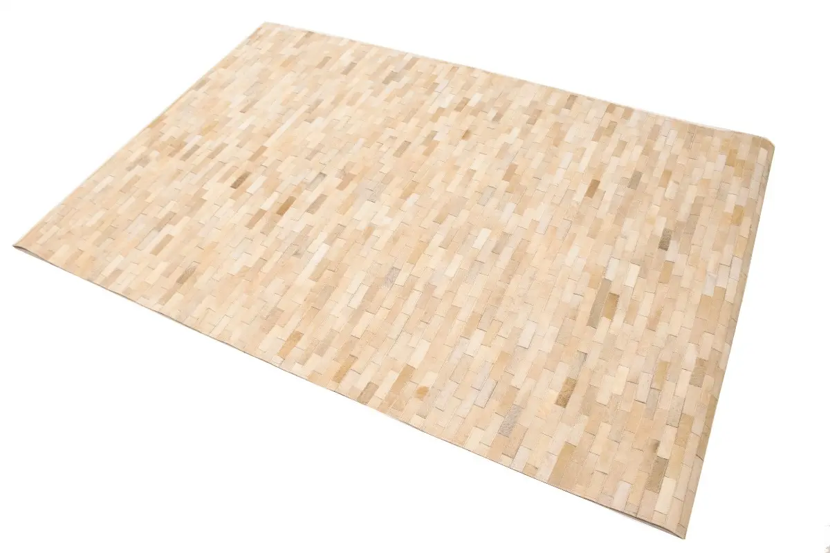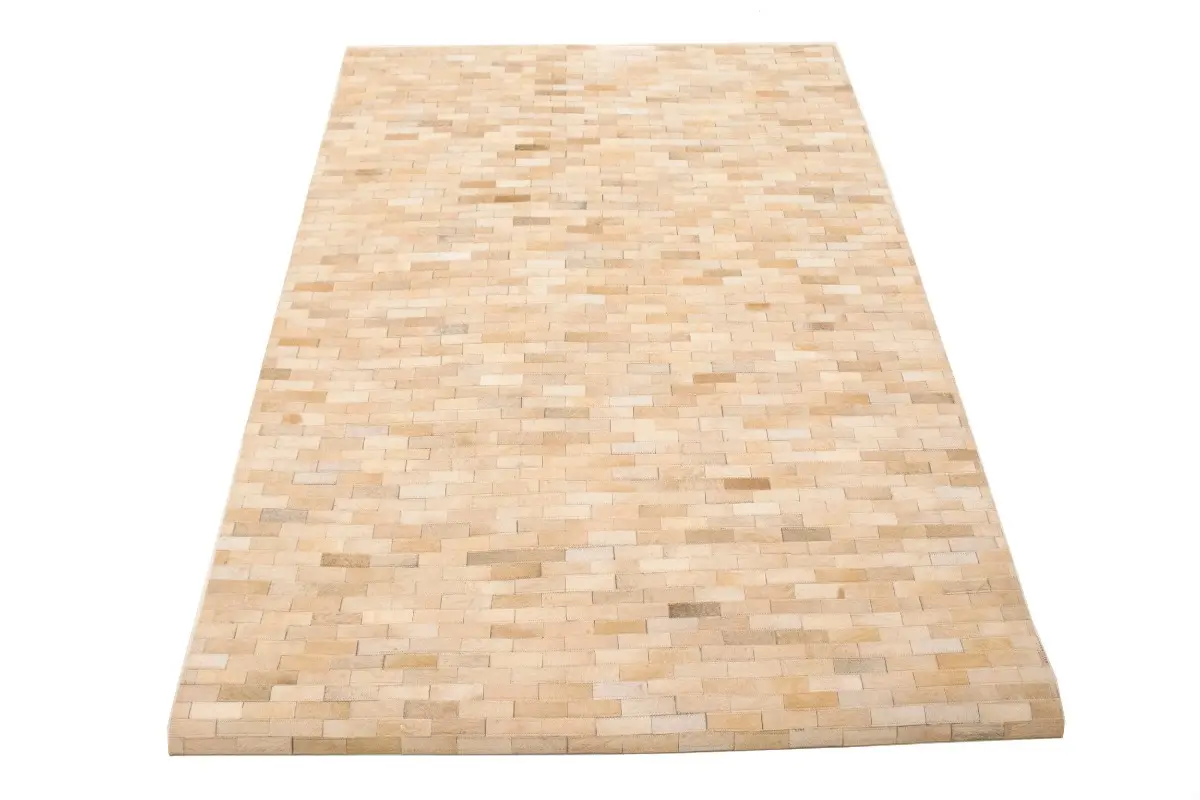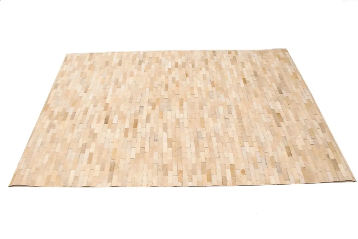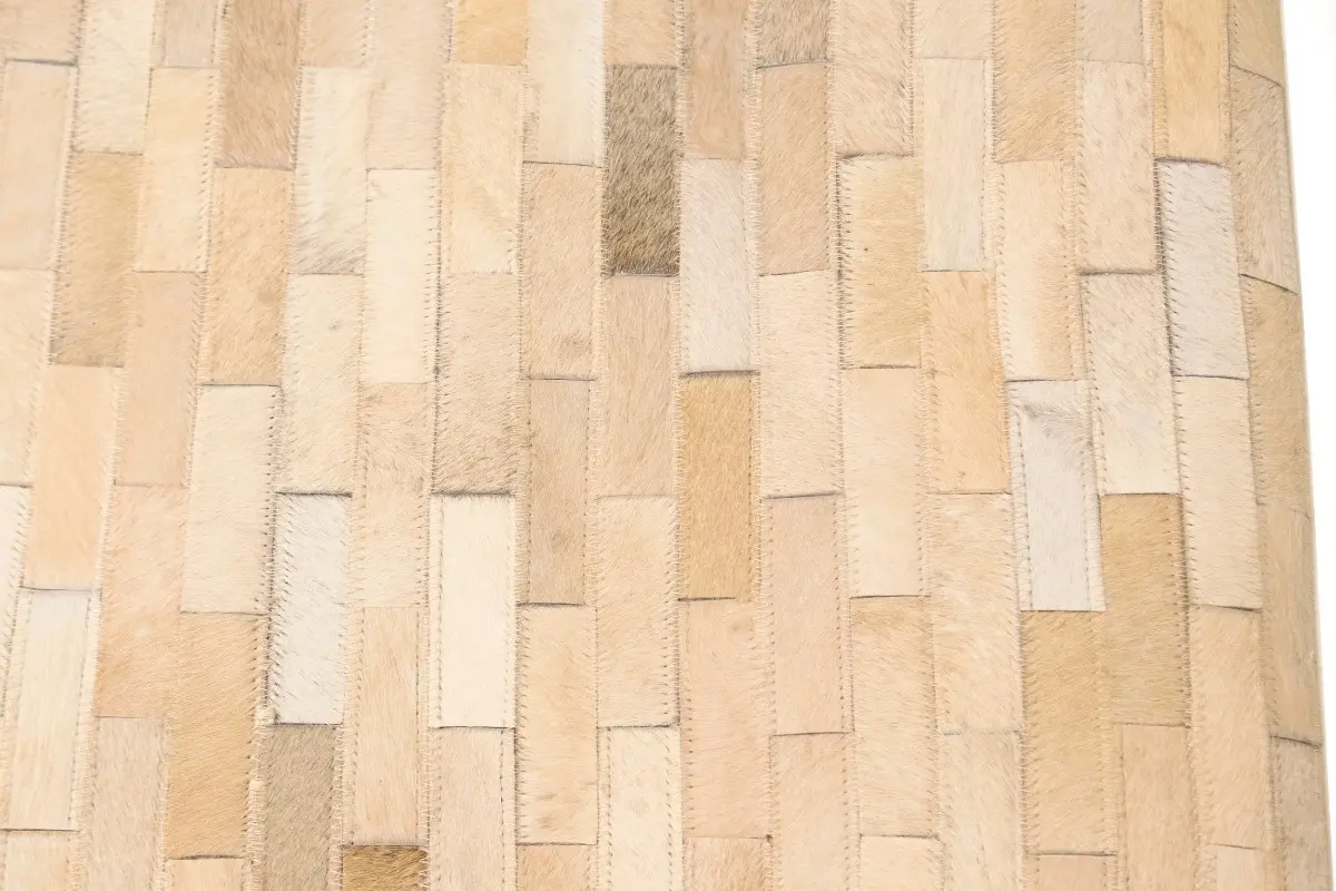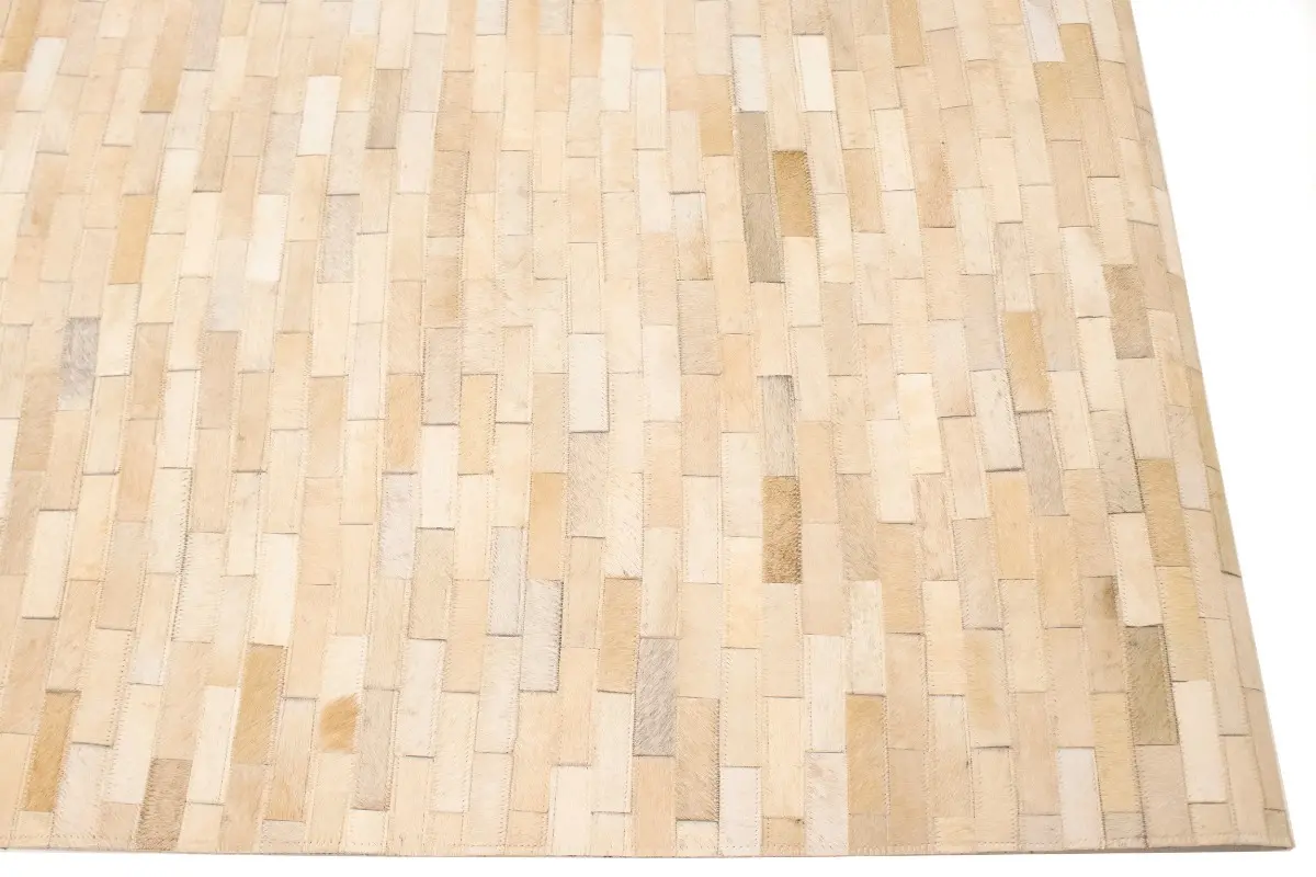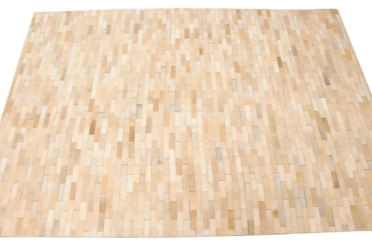 Hand-Crafted Beige Cream Cowhide 4X6 Modern Design Leather Rug Home Decor Carpet