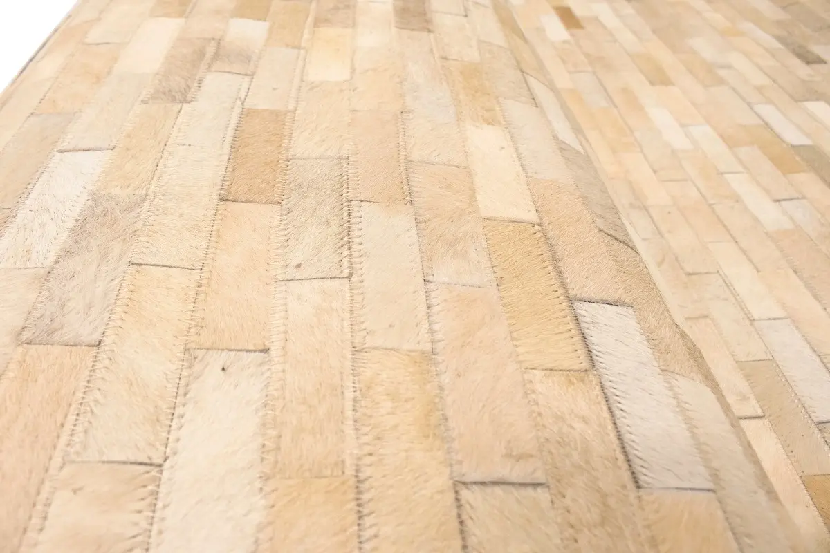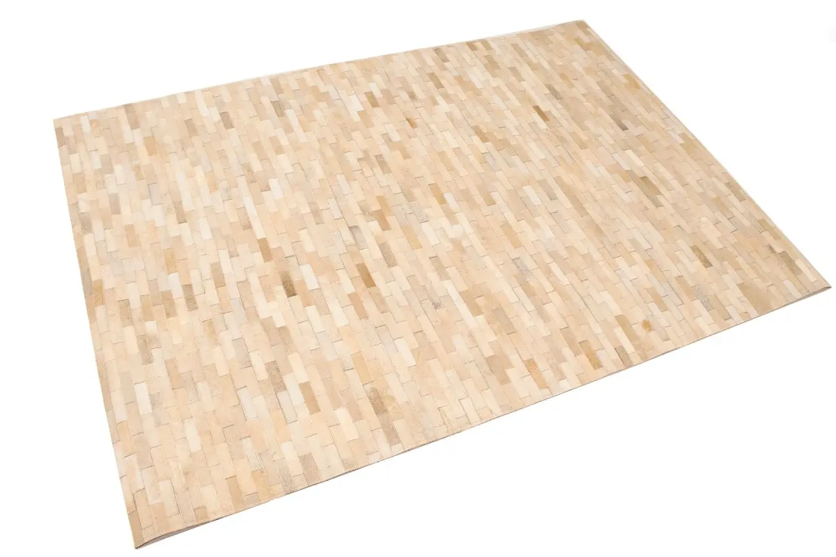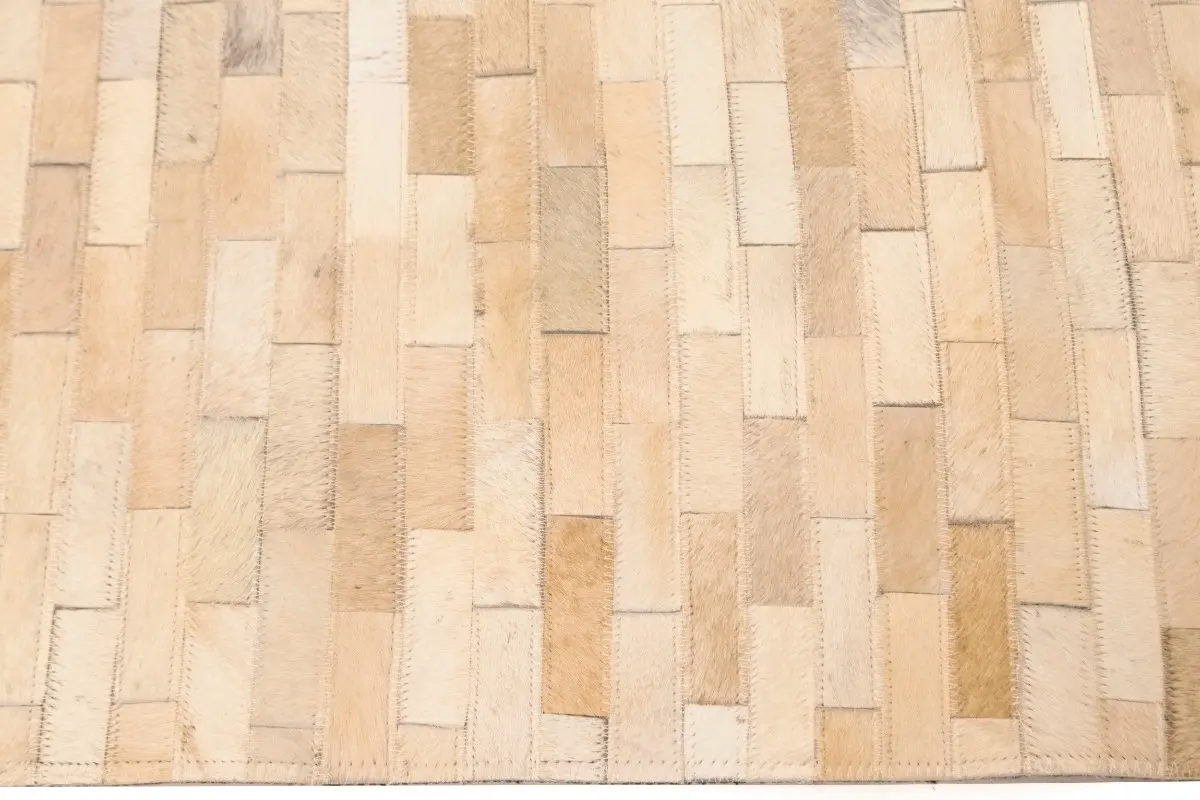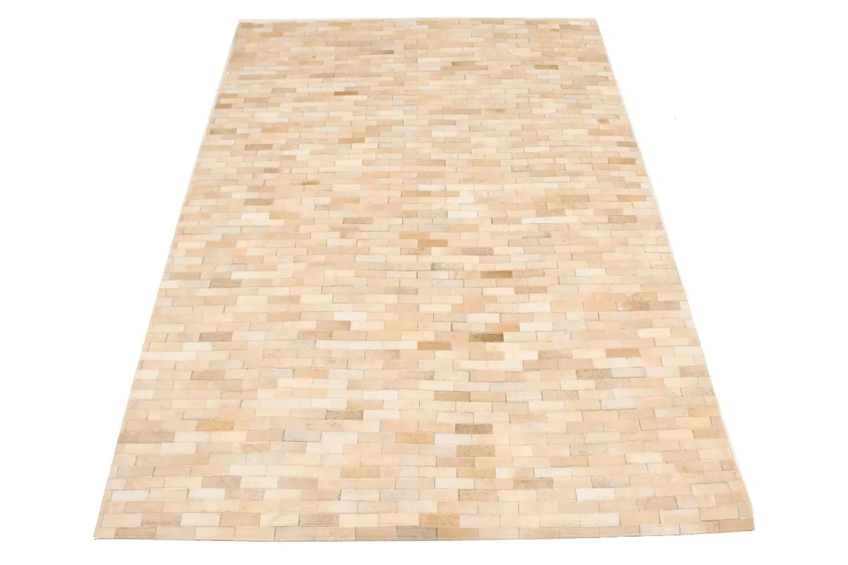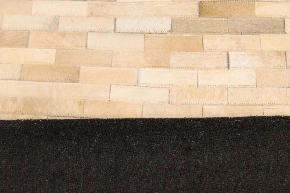 Hand-Crafted Beige Cream Cowhide 4X6 Modern Design Leather Rug Home Decor Carpet
