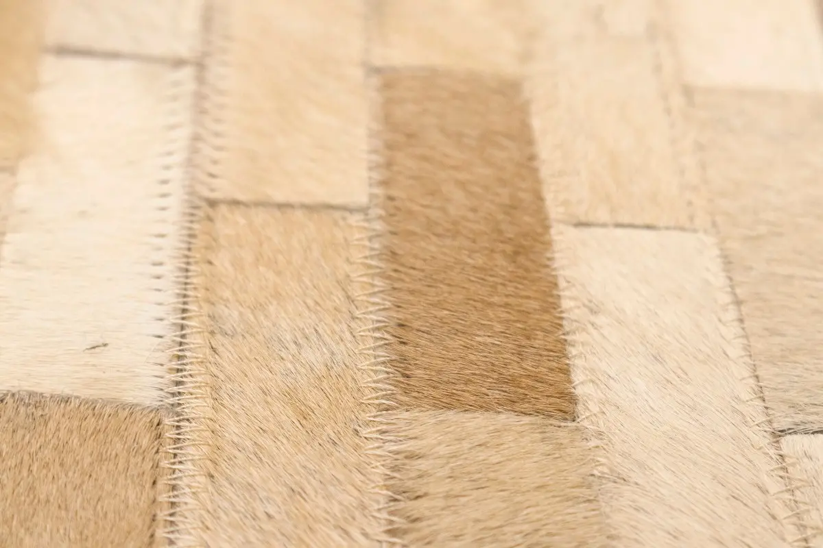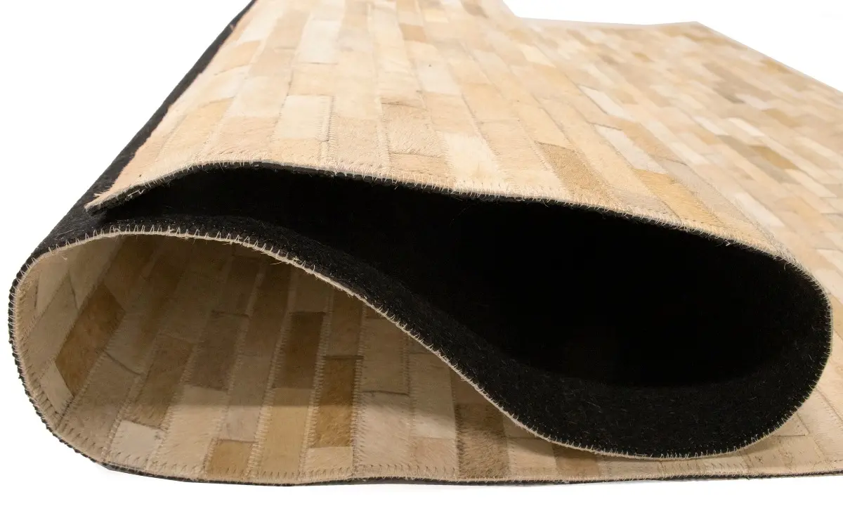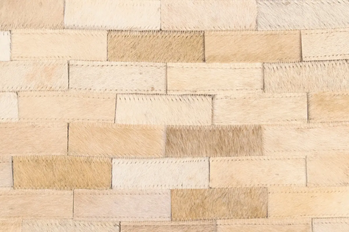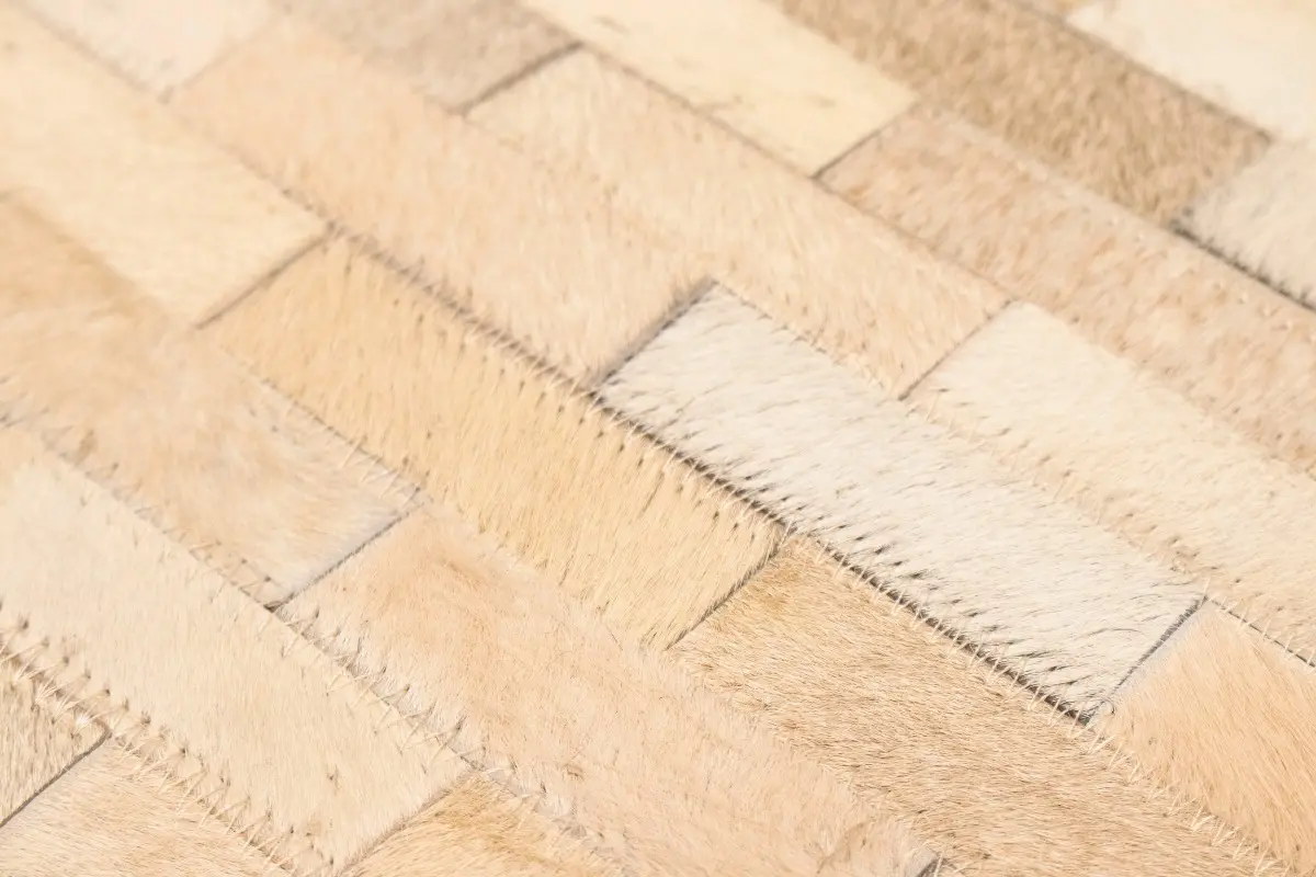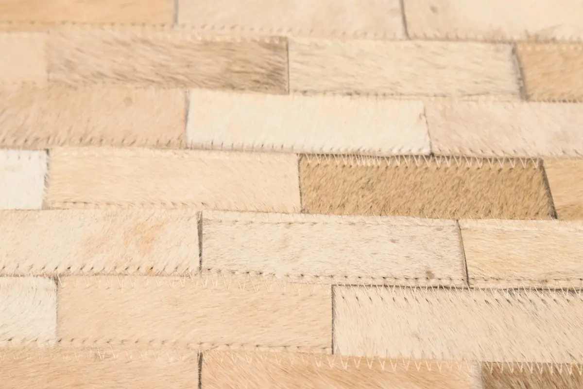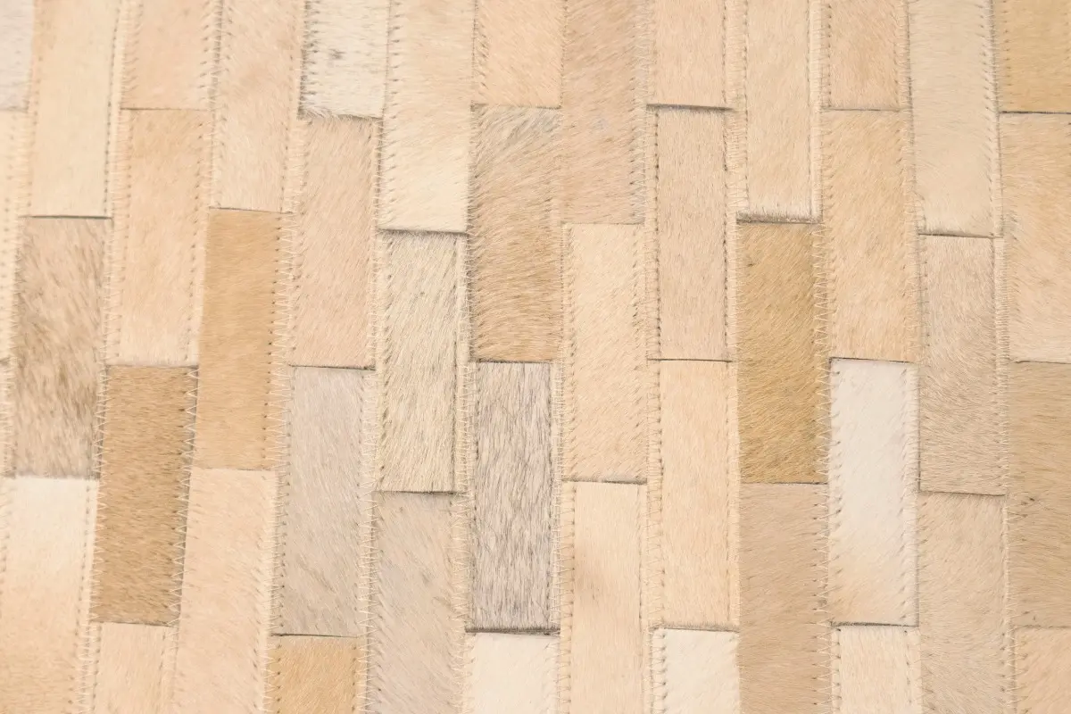 Hand-Crafted Beige Cream Cowhide 4X6 Modern Design Leather Rug Home Decor Carpet