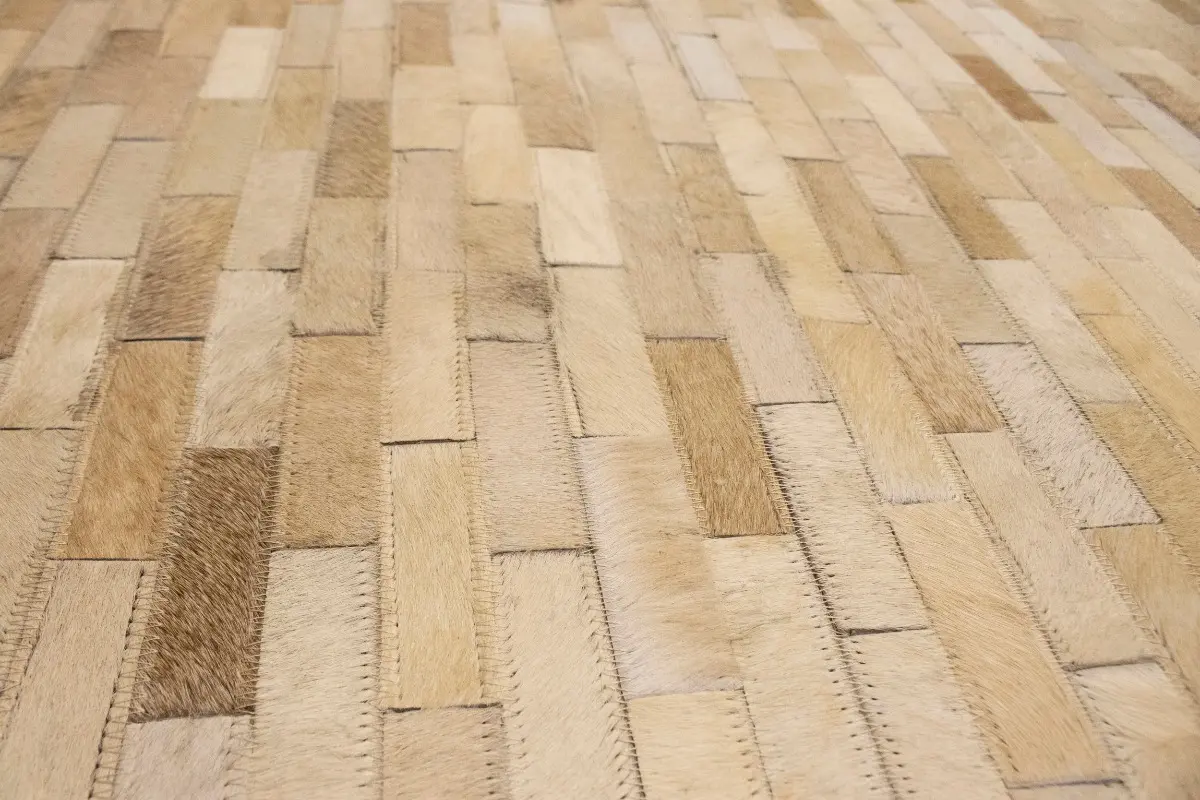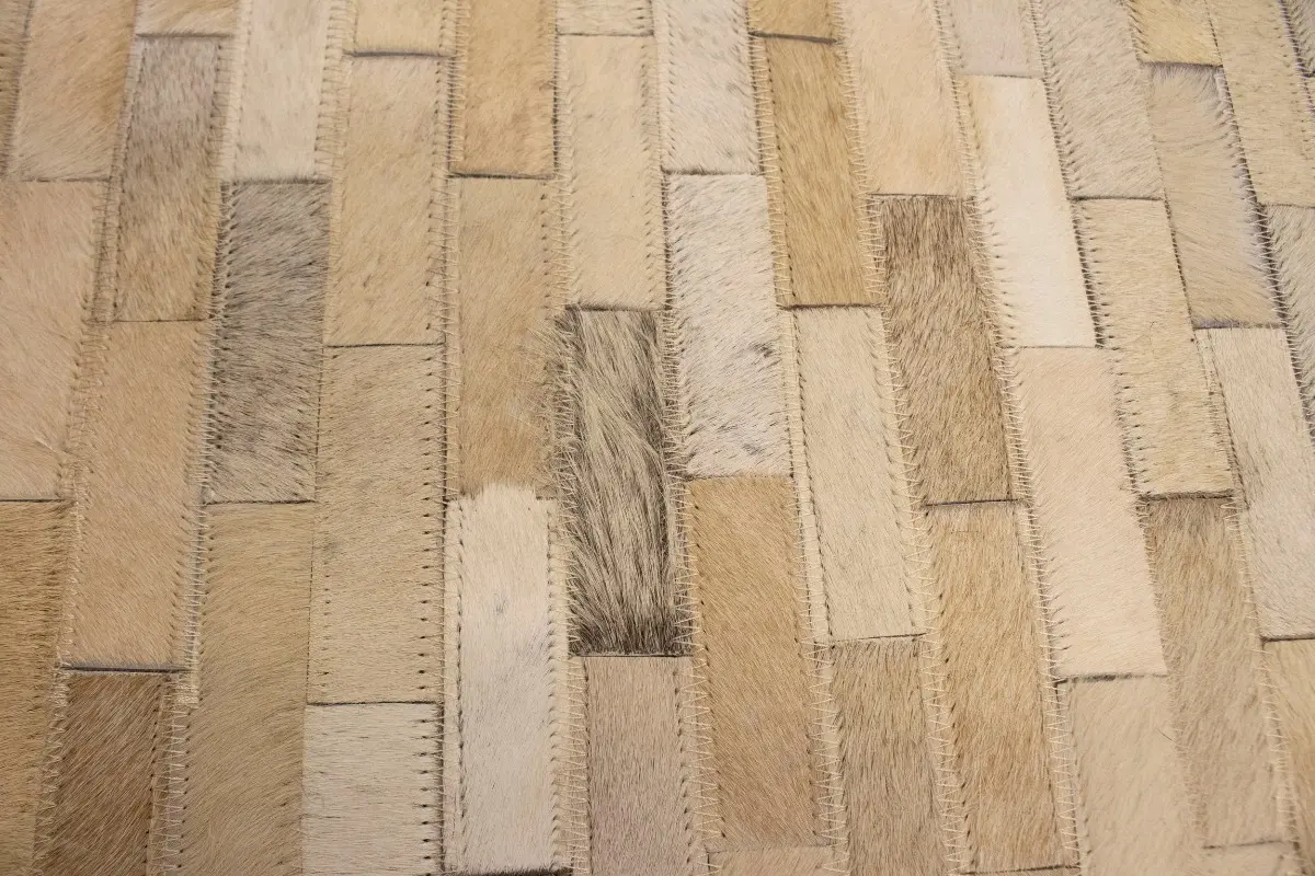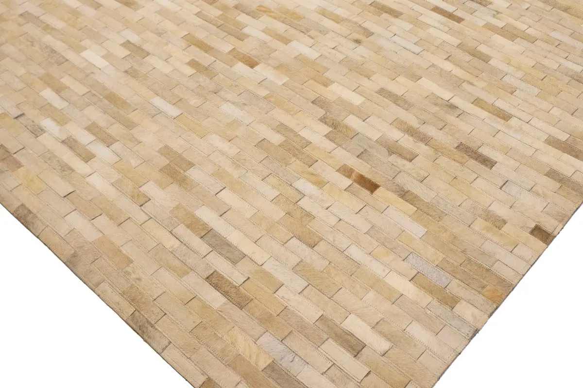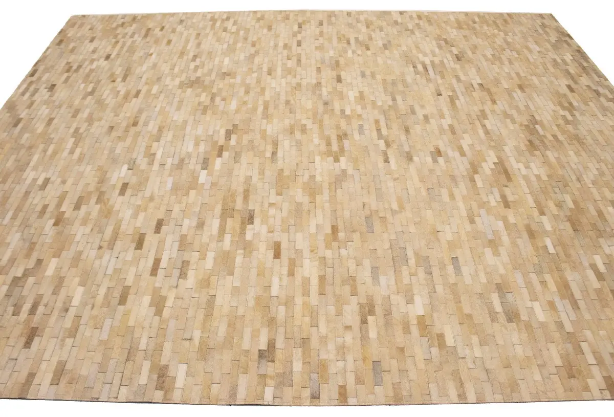 Beige Cream Cowhide 8X10 Modern Leather Rug