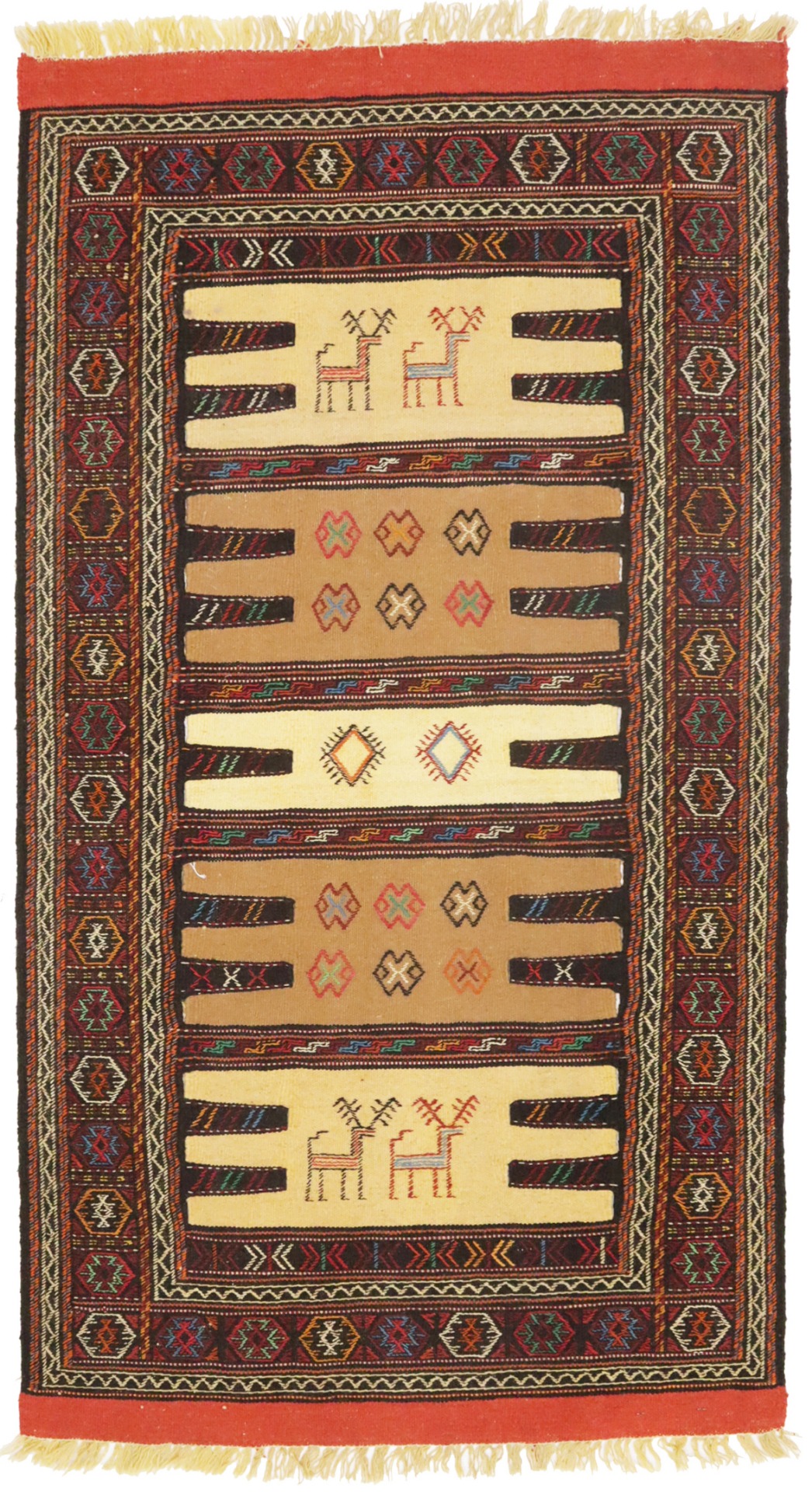 Beige Cream Tribal 3X5'7 Sumak Herati Persian Rug