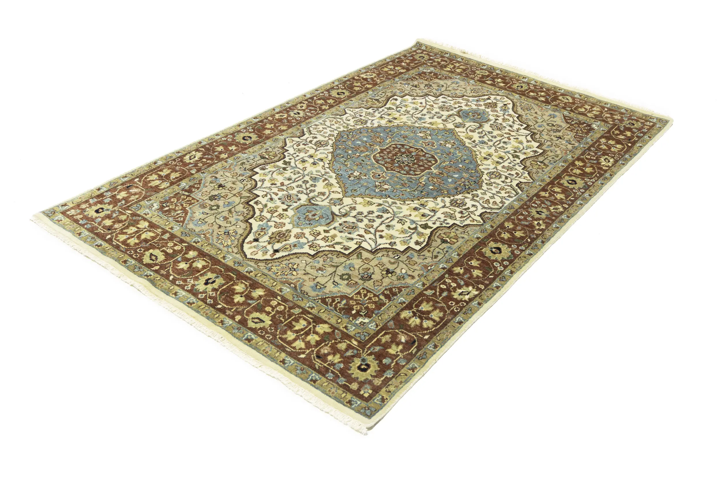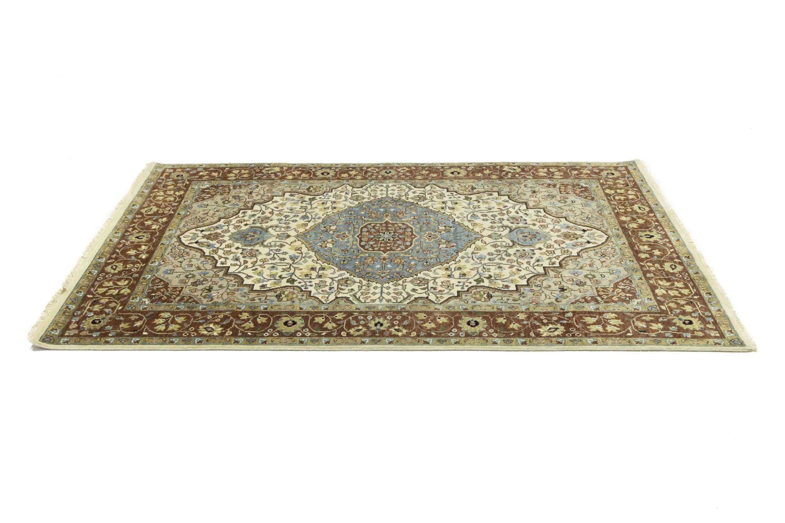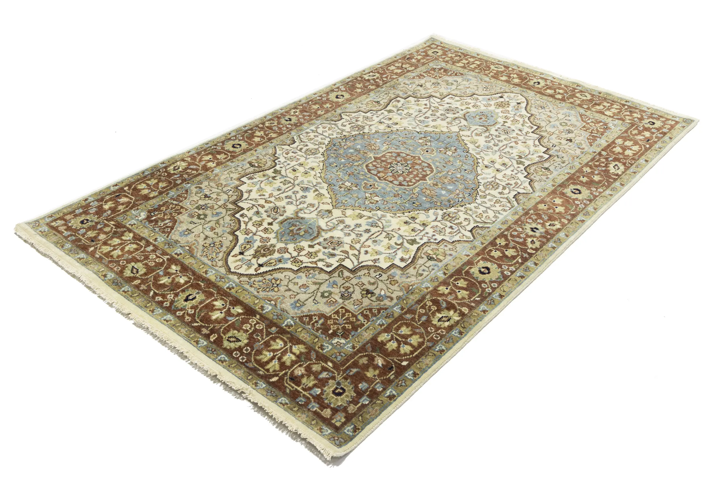 Handmade 5X8 beige oriental rug made with vegetable dyes (fine wool pile and cotton foundation), superior knot count, and appealing ancient designs. This Oriental rug never will go out of style and would be among your most valuable treasures.