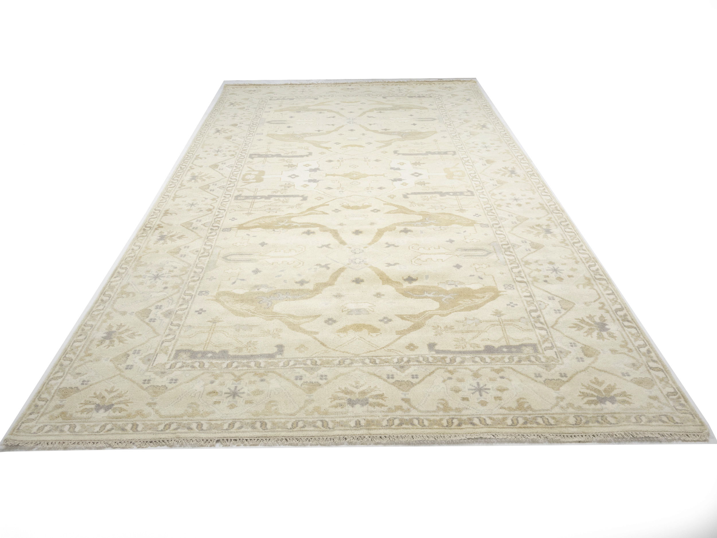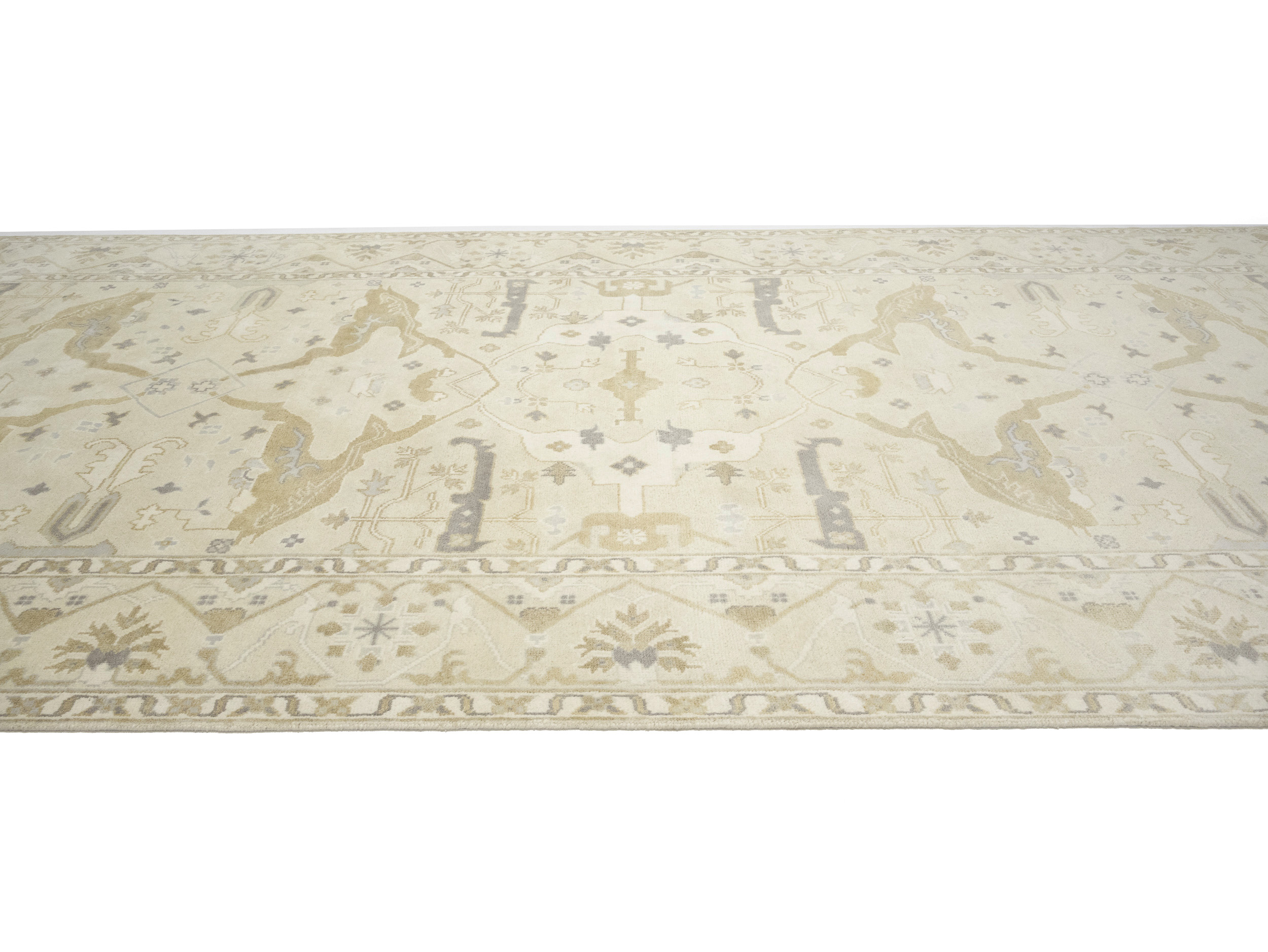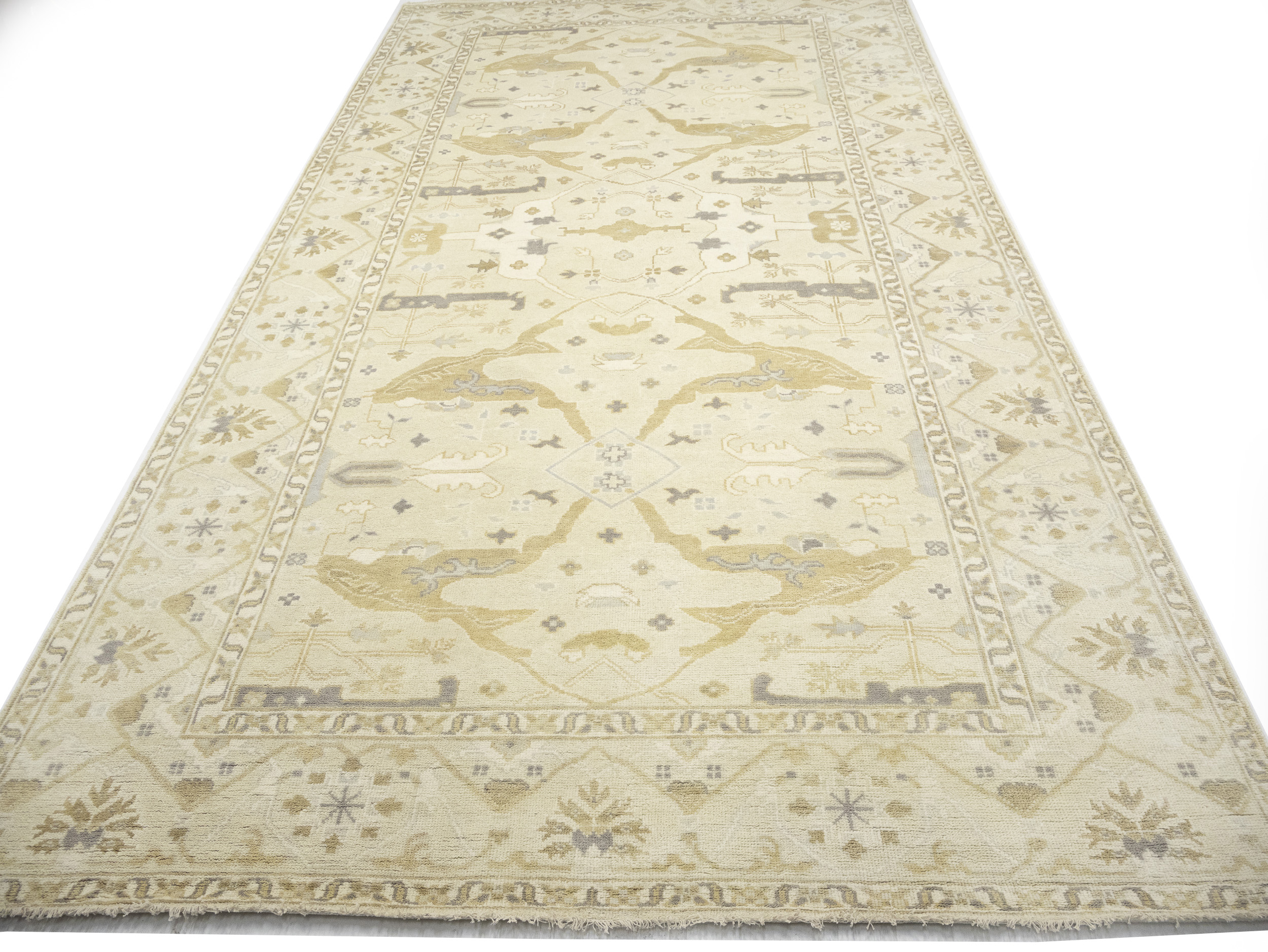 Beige Floral 9X18 Oushak Oriental Rug