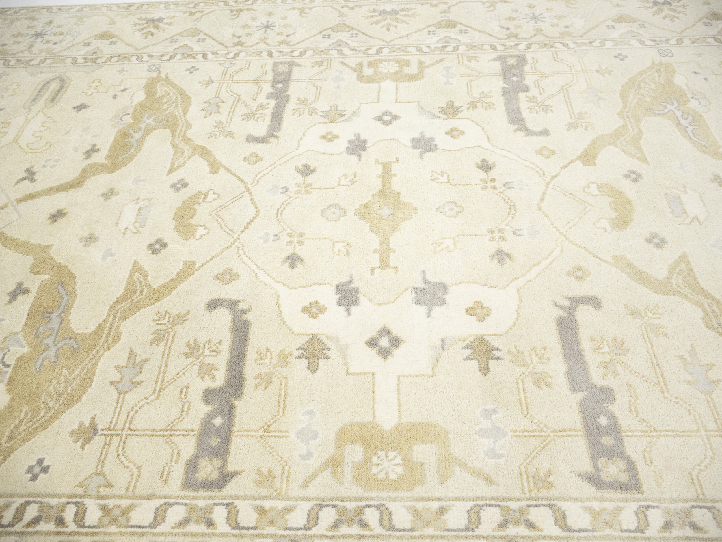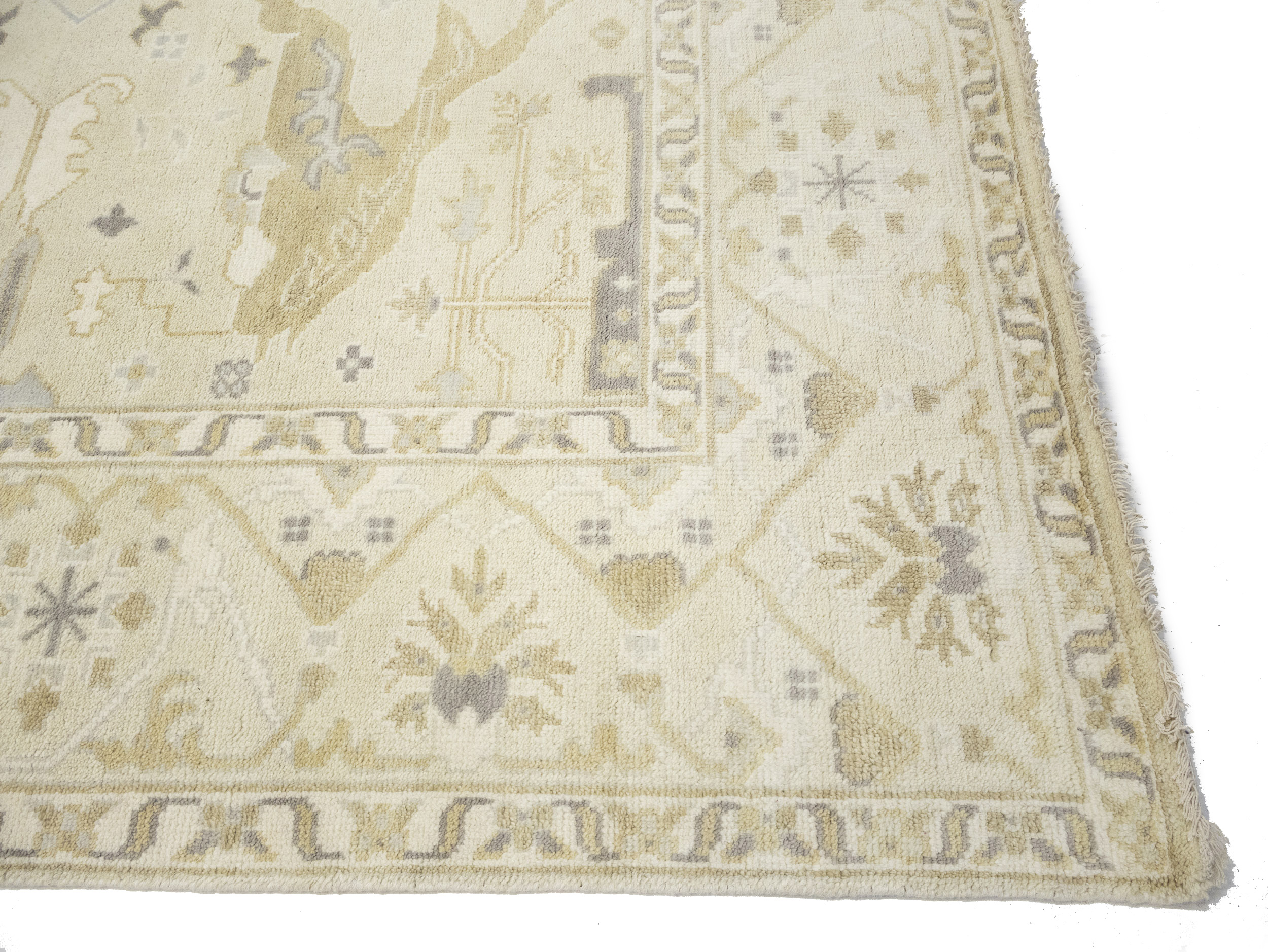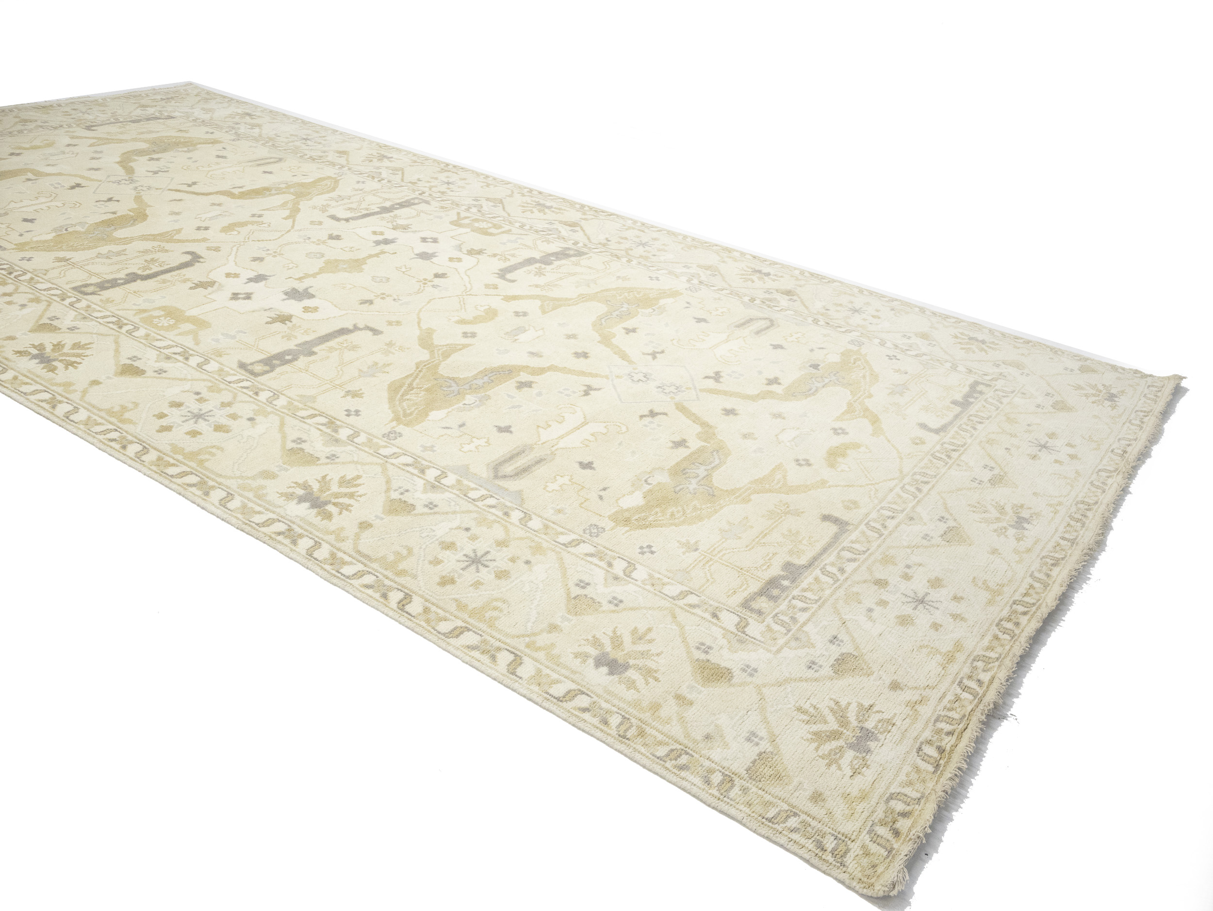 Beige Floral 9X18 Oushak Oriental Rug
