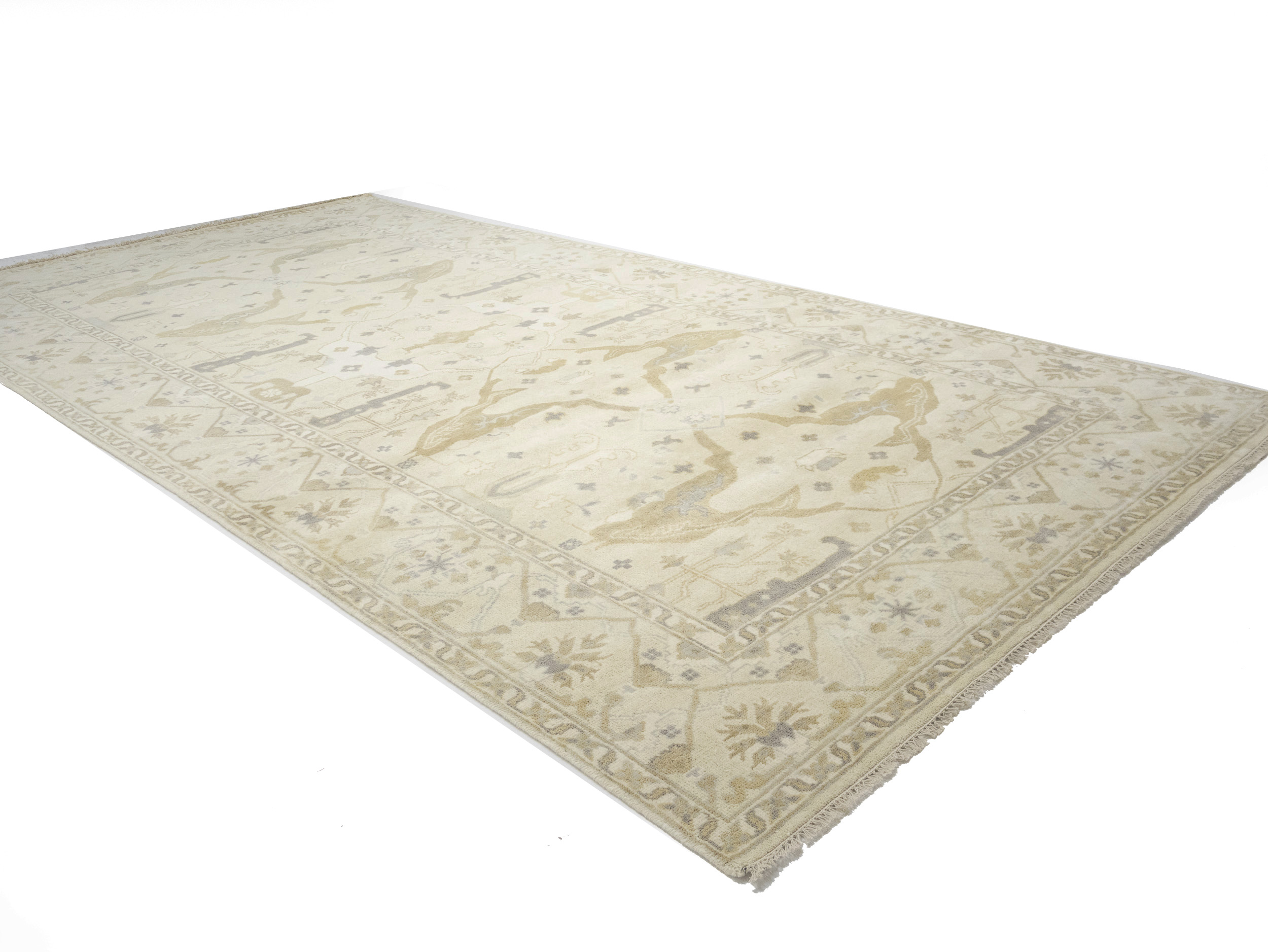 Hand Knotted 9X18 beige oriental rug made with natural dyes (fine wool pile and cotton foundation), superior knot count, and alluring ancient designs. This Oriental rug never will go out of style and would be among your most valuable treasures.