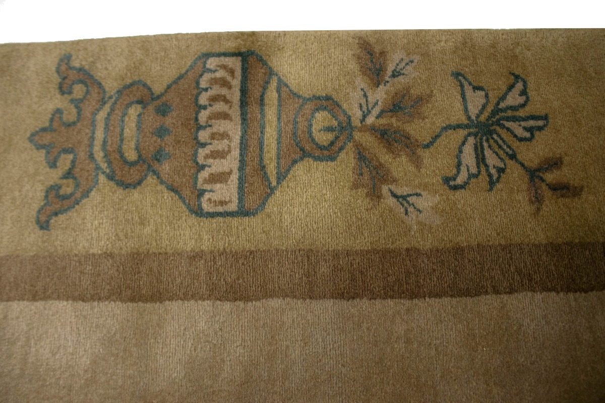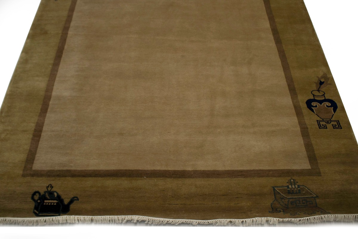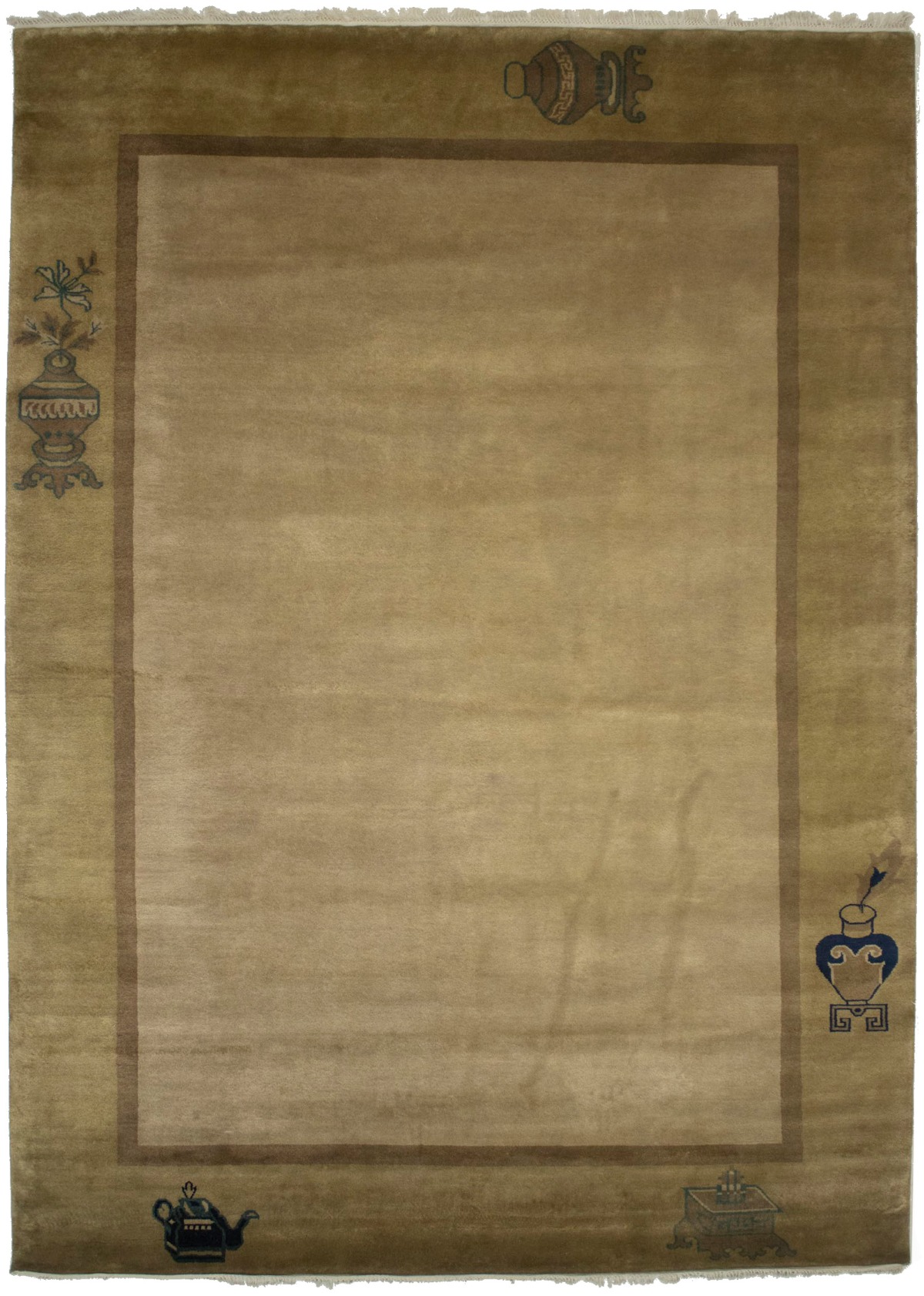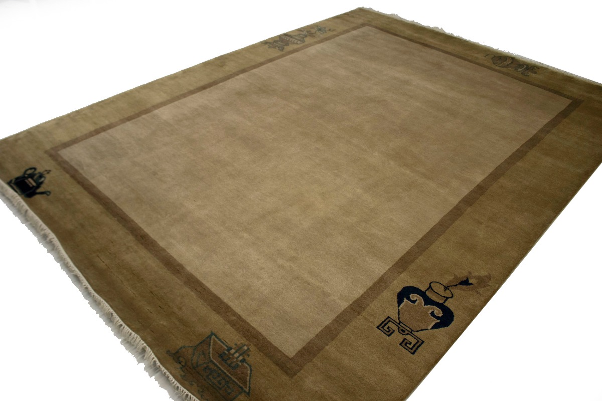 Handmade 8X11 camel oriental rug made with vegetable dyes (fine wool pile and cotton foundation), superior knot count, and appealing ancient designs. This Oriental rug never will go out of style and would be among your most valuable treasures.