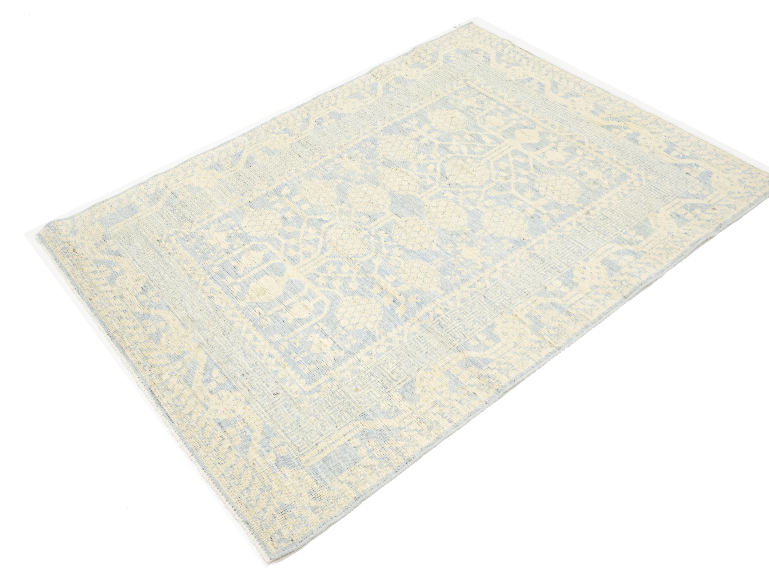 Beige Floral Khotan 4X6 Oushak Oriental Rug