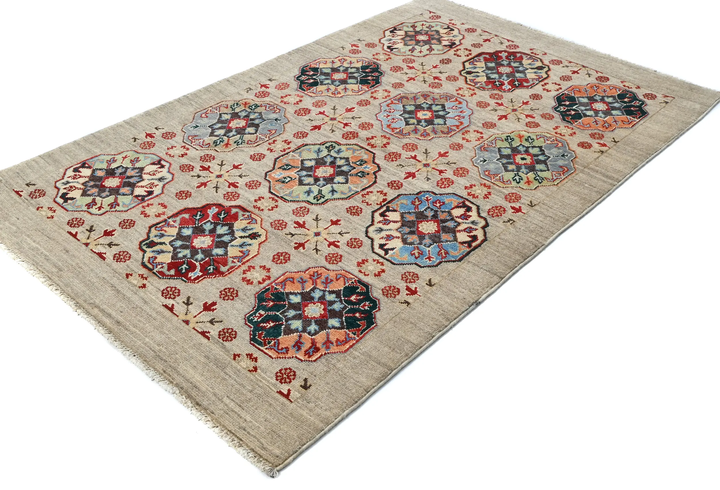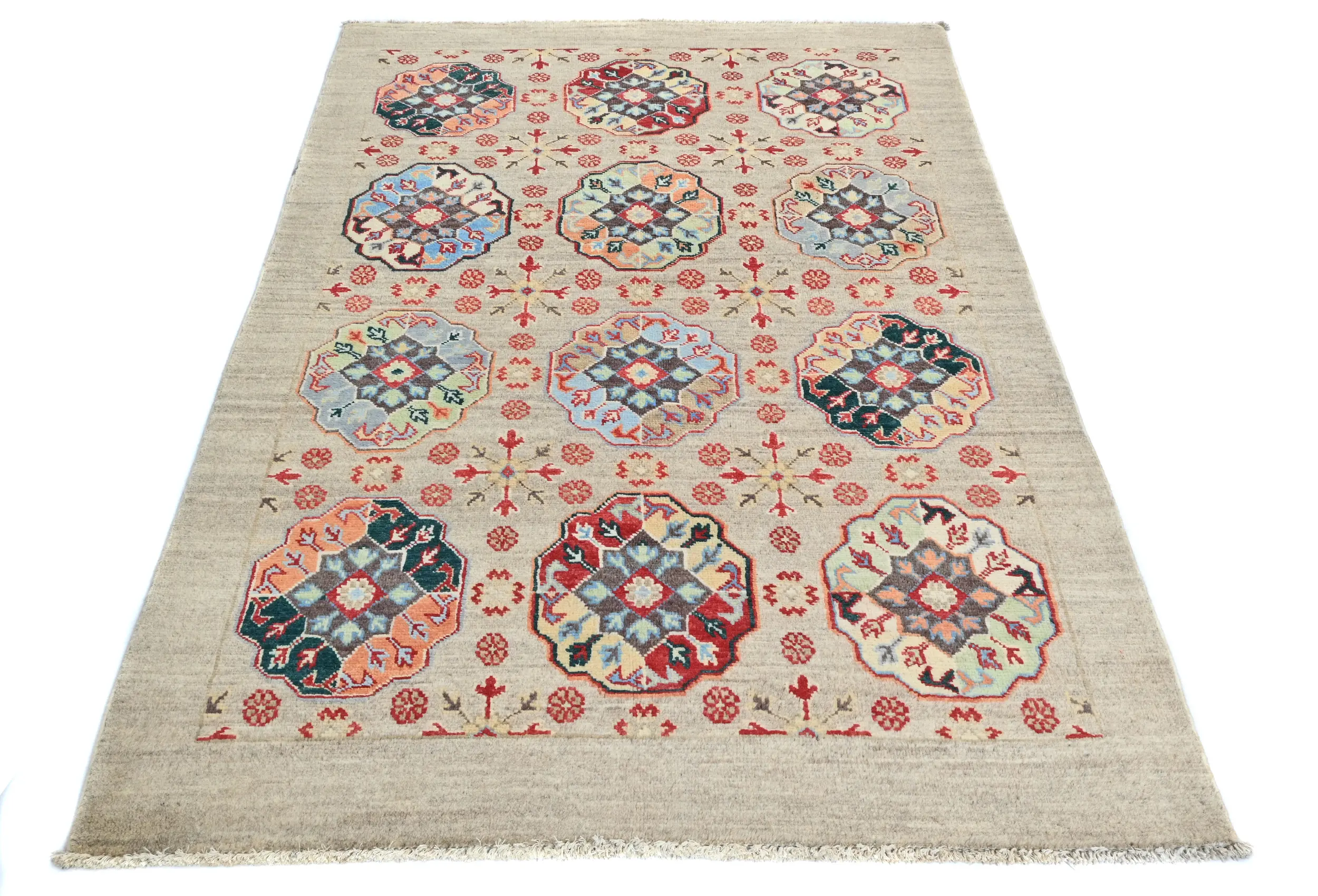 Beige Floral Modern 4X6 Kazak Oushak Pakistan Rug