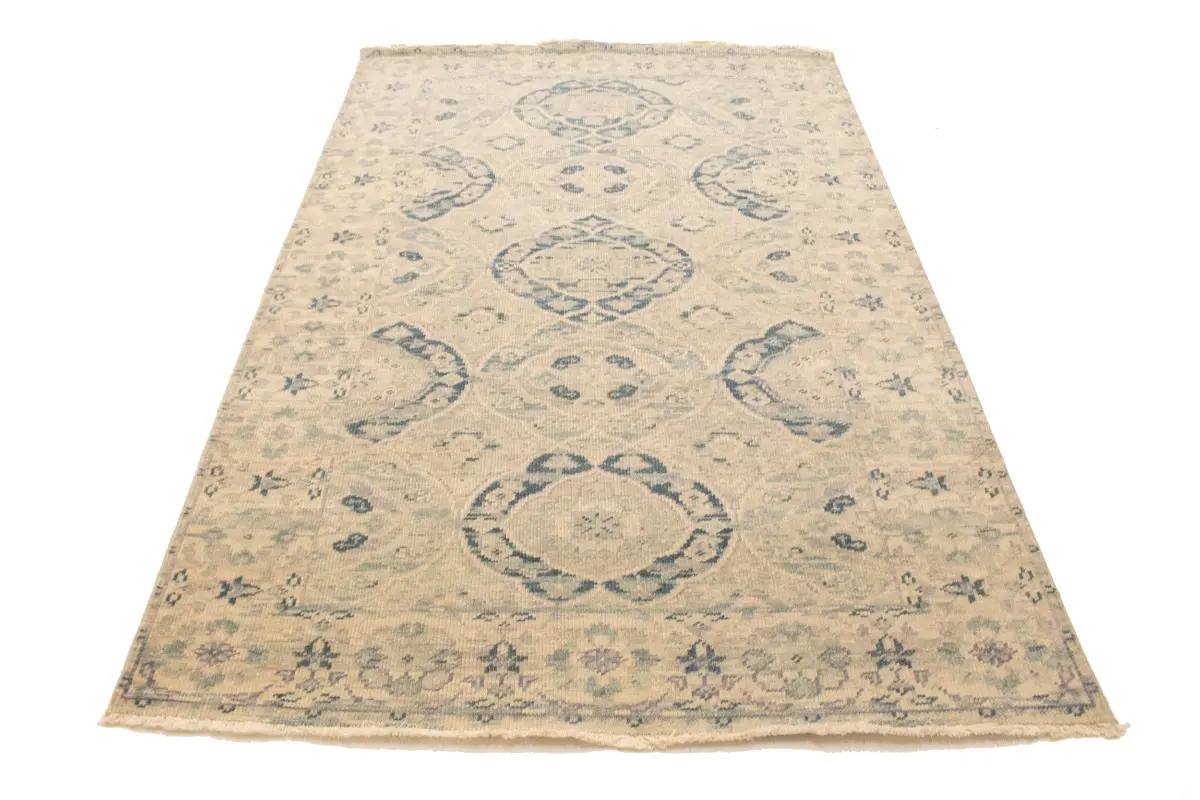Hand Knotted 5X8 beige Oriental rug made with vegetable dyes (fine wool pile and cotton foundation), superior knot count, and appealing ancient designs. This Oriental rug never will go out of style and would be among your most valuable treasures.