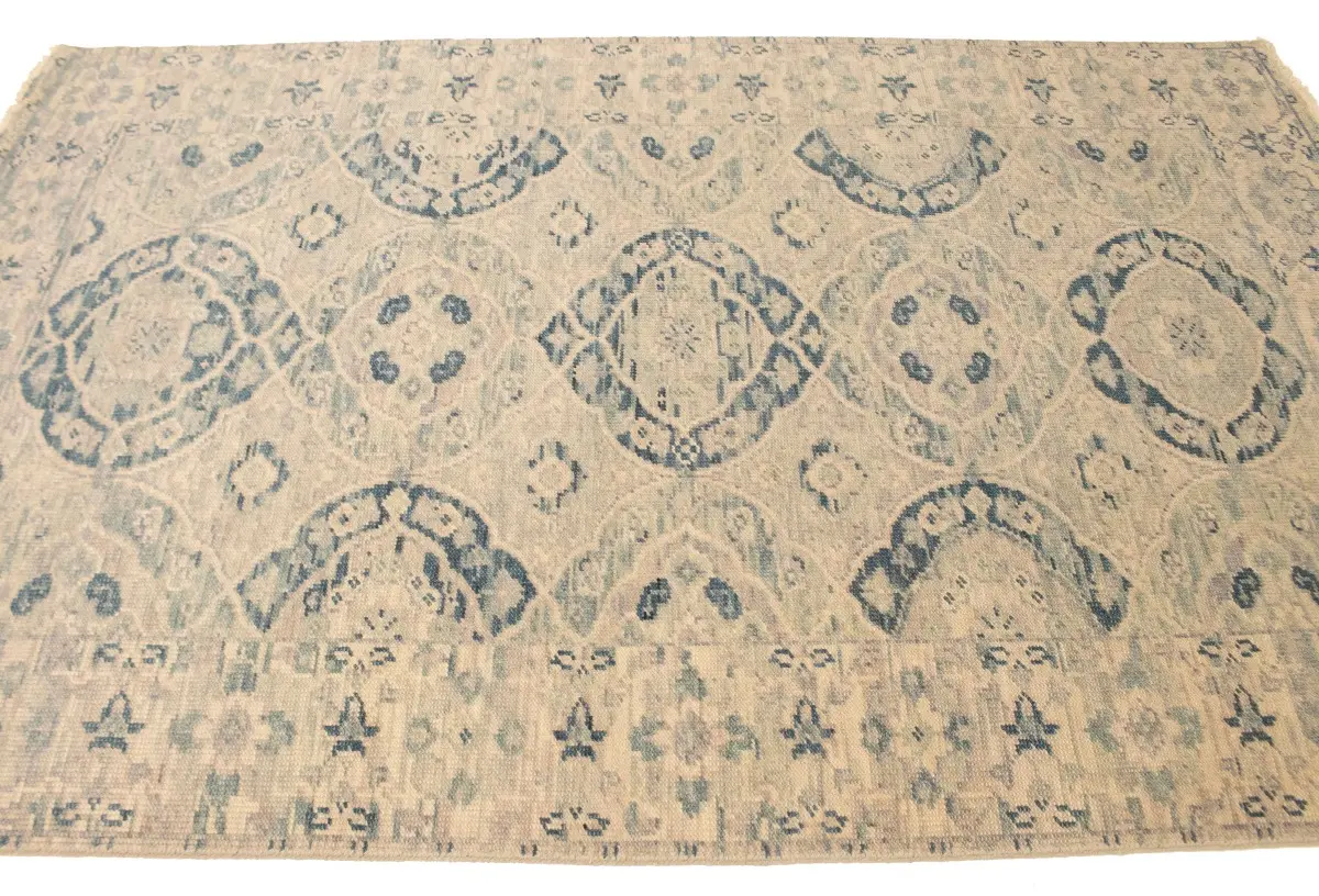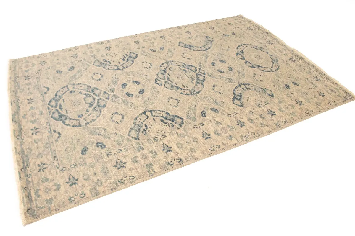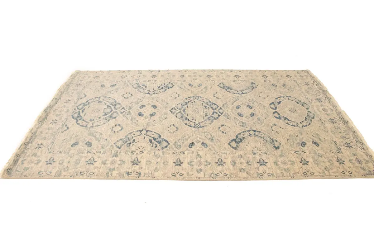 This authentic 5X8 beige new Oriental rug was crafted by the hands of skilled weavers enthused by a variety of lovely artistic designs, to recreate the aged look of the unique piece with a richness of color and beautifully elaborated background field. What set this vintage style Oriental area rug from the others are the material and dye used (wool pile and cotton foundation), knot count, ancient designs, fantastic grades, and its regional historical connection: it has deep roots, from the story of the people who produced it to the meaning of the symbols and colors displayed across its canvas that have been praised for centuries. This Indian home décor carpet will be completely cozy and inviting that never will go out of style! Also, this Oriental rug would be among your most valuable treasures, it is a great investment that increase in value over time, and it will last for generations because was woven with high-quality, all-natural wool. Environmentally friendly, opulent yet affordable; this rug will give you a thorough amount of character to help define your living space with sophistication and warmth that will capture the eyes and attention of your audience (homeowners, designers, decorators, family and friends). OT-6670
