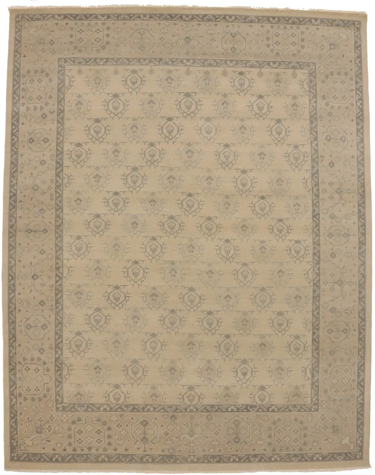 This original 8X10 beige new Oriental rug was finely knotted by the hands of weavers influenced by a variety of amazing artistic designs, to recreate the aged look of the exceptional piece with a richness of color and embellished background field. What set this vintage style Oriental area rug from the others are the material and dye used (wool pile and cotton foundation), knot count, antique designs, fantastic grades, and its regional historical connection: it has deep roots, from the story of the people who produced it to the meaning of the symbols and colors displayed across its canvas that have been praised for centuries. This Indian home décor carpet will be completely cozy and inviting that never will go out of style! Also, this Oriental rug would be among your most valuable treasures, it is a great investment that increase in value over time, and it will last a lifetime because was woven with high-quality, all-natural wool. Eco-friendly, opulent yet affordable; this rug will give you an extra pop of character to help define your home environment with luxury and warmth that will capture the eyes and attention of your audience (homeowners, designers, decorators, family and friends). OT-6733