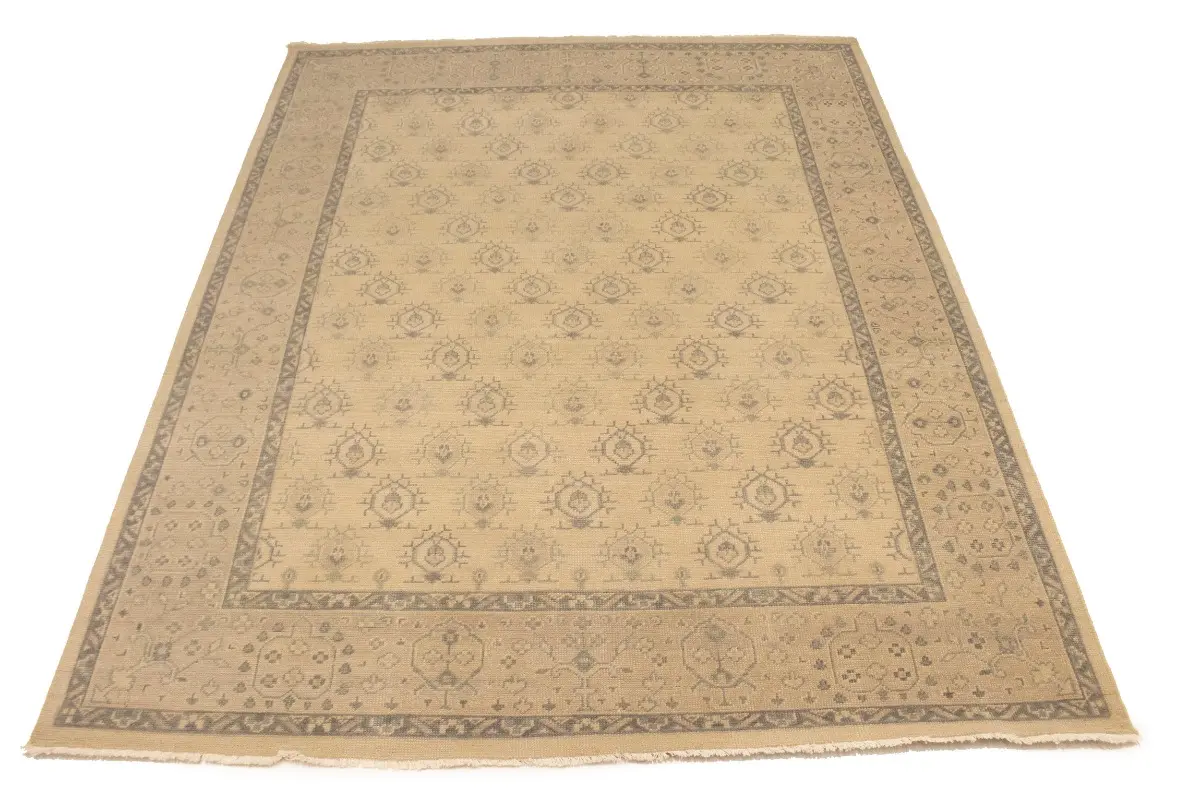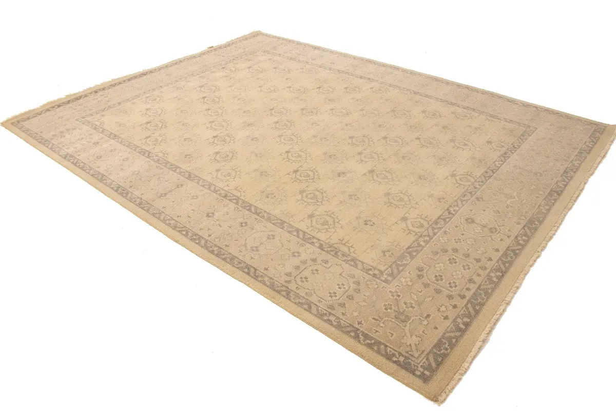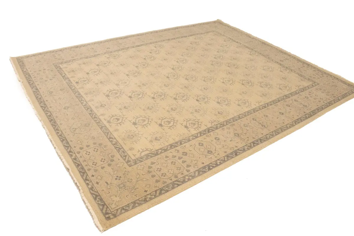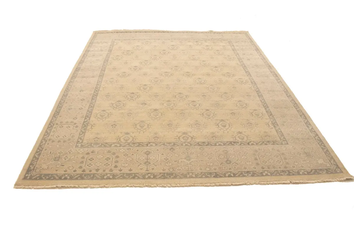 Handmade 8X10 beige Oriental rug made with natural dyes (fine wool pile and cotton foundation), superior knot count, and alluring ancient designs. This Oriental rug never will go out of style and would be among your most valuable treasures.