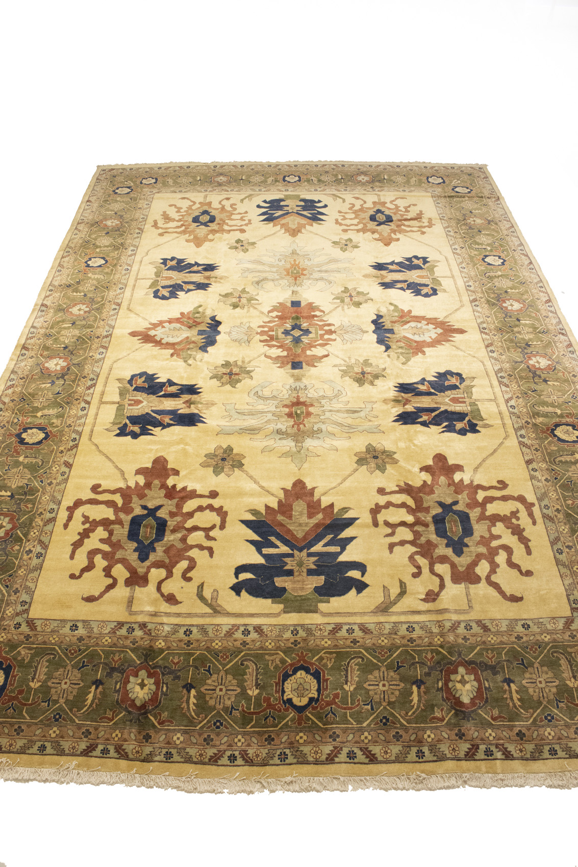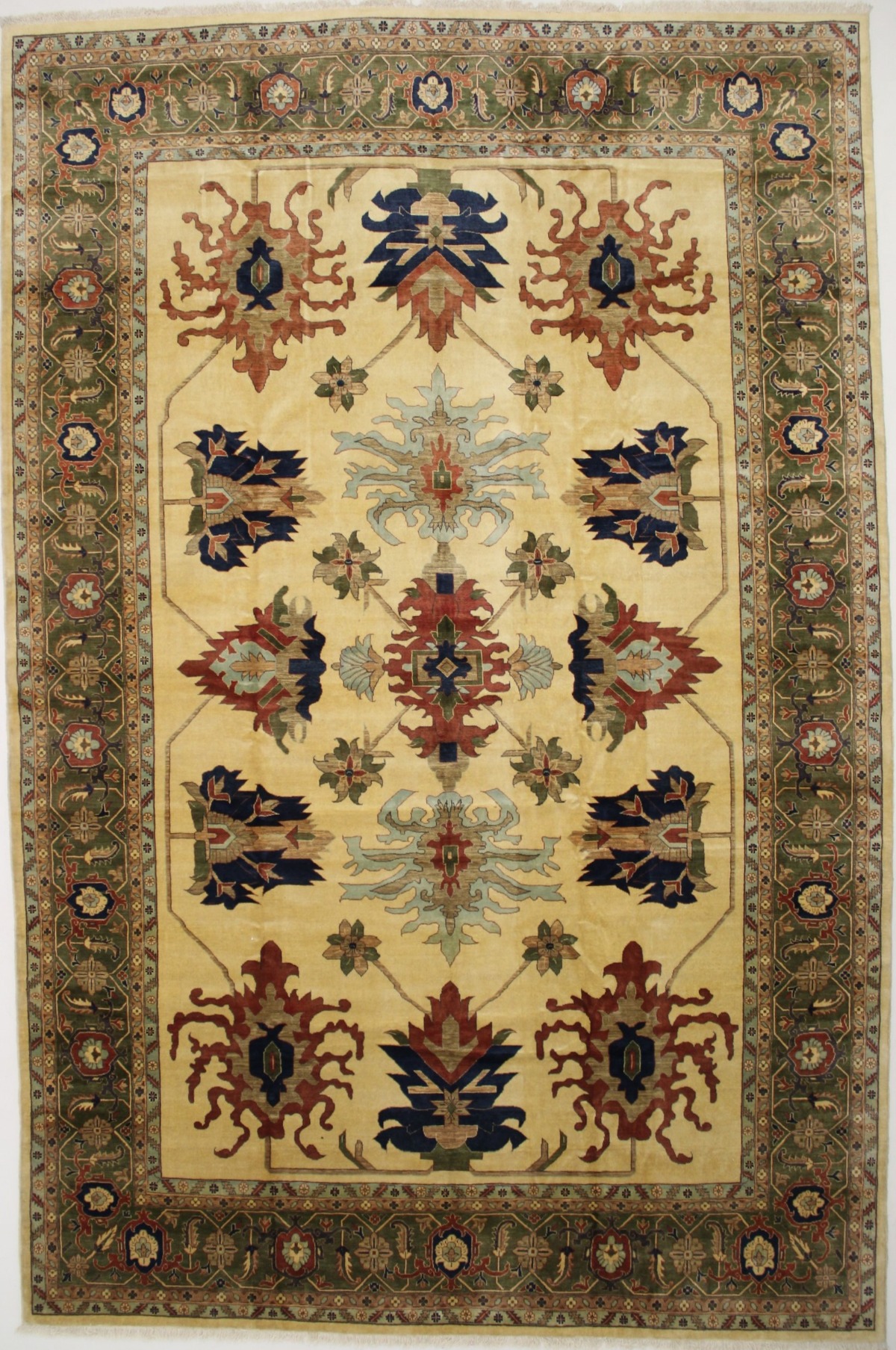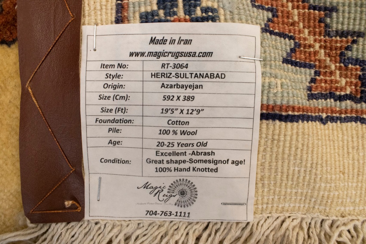 Vintage Beige Floral 13X19 Heriz Sultanabad Persian Rug