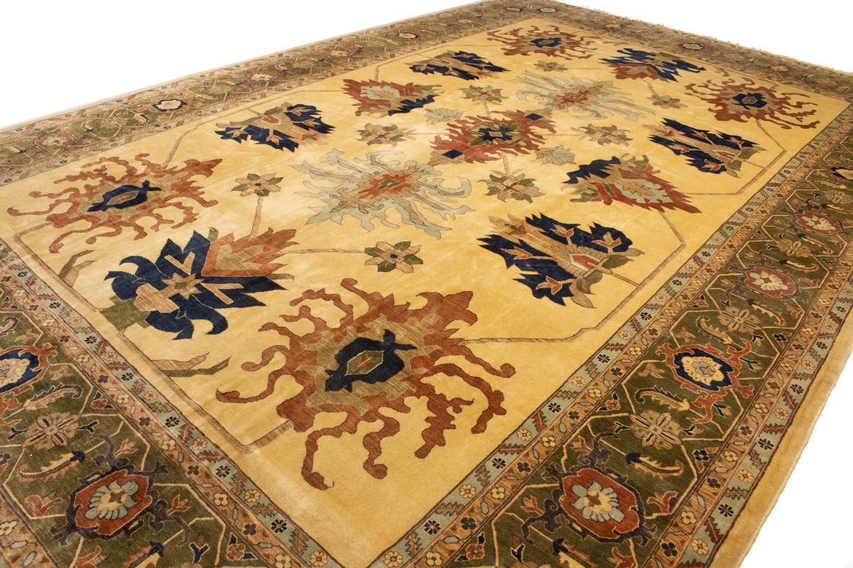 This authentic 13X19 Persian rug was masterly knotted by the hands of weavers inspired by a variety of wonderful artistic designs, to recreate the aged look of the original piece with a richness of color and intricate patterned floral background field. What set this traditional Oriental area rug from the others are the material and dye used (wool pile and cotton foundation), knot count, antique designs, fantastic grades, and its regional historical connection: it has deep roots, from the story of the people who produced it to the meaning of the symbols and colors displayed across its canvas that have been praised for centuries. This classic home décor carpet will be completely cozy and inviting that never will go out of style! Also, this Oriental rug would be among your most valuable treasures, it is a great investment that accrues value over time, and it will last for generations because was woven with high-quality, all-natural wool; it won’t rip, tear, or shed. Environmentally friendly, opulent yet affordable; this Persian rug will give you a thorough amount of character to help define your living space with luxury and warmth that will capture the eyes and attention of your audience (homeowners, designers, decorators, family and friends). RT-3064