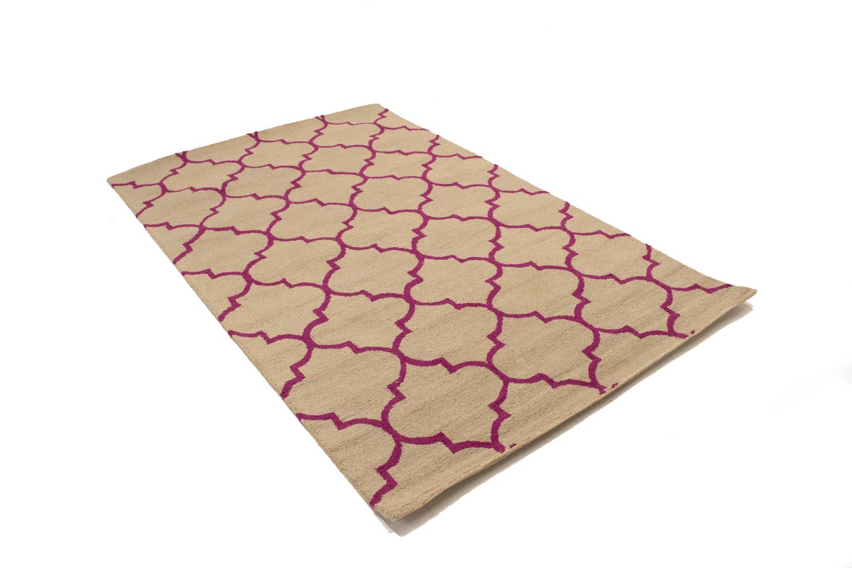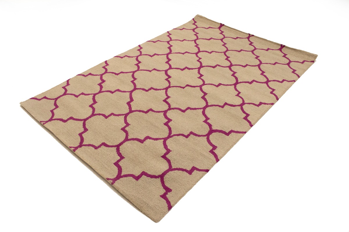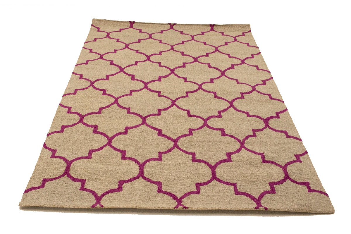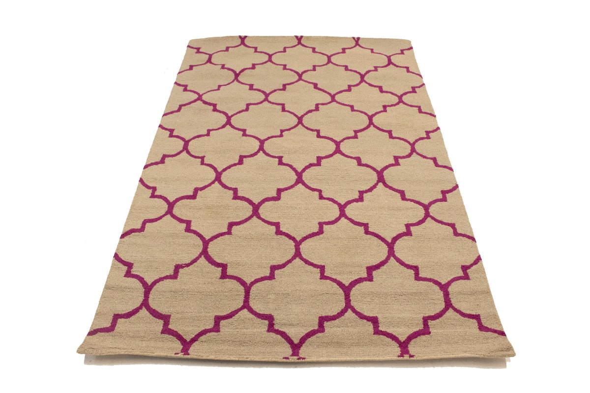 Beige & Fuchsia Trellis 5X8 Hand-Tufted Modern Rug