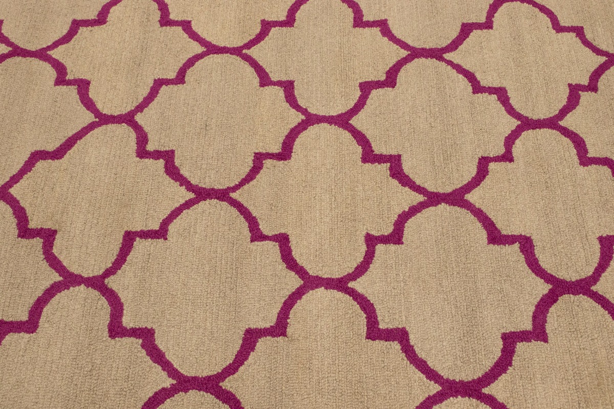 Beige & Fuchsia Trellis Design 5X8 Hand-Tufted Modern Rug Contemporary Carpet