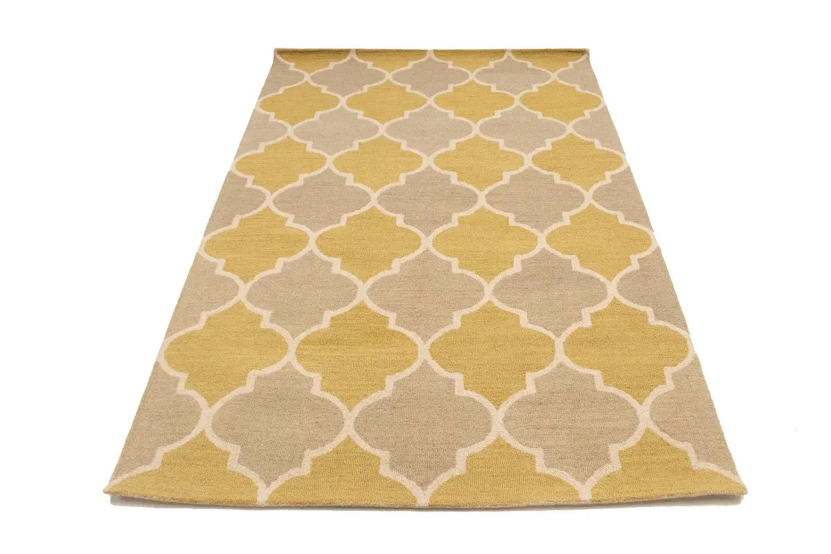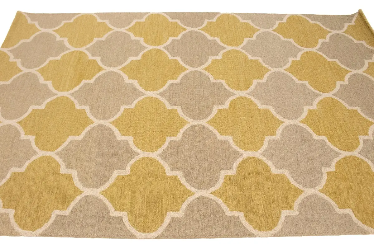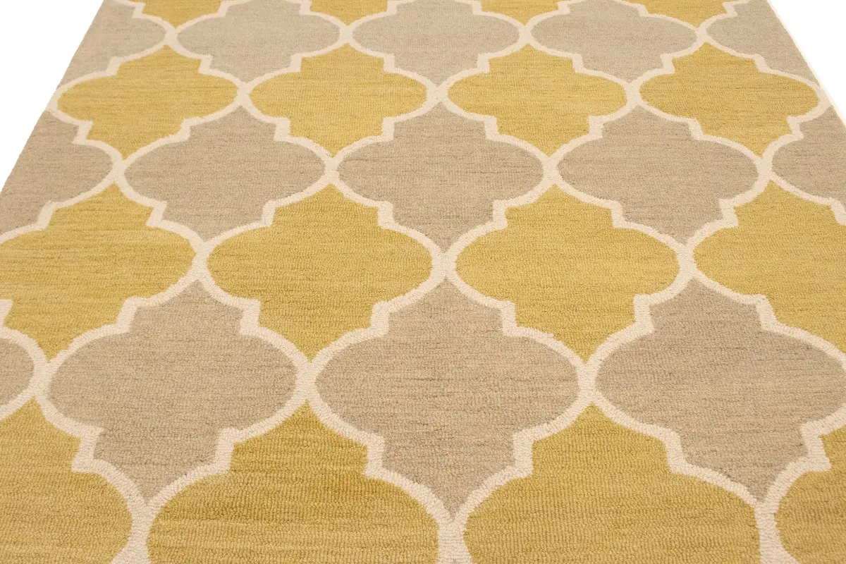 Beige & Gold Trellis 5X8 Hand-Tufted Modern Rug