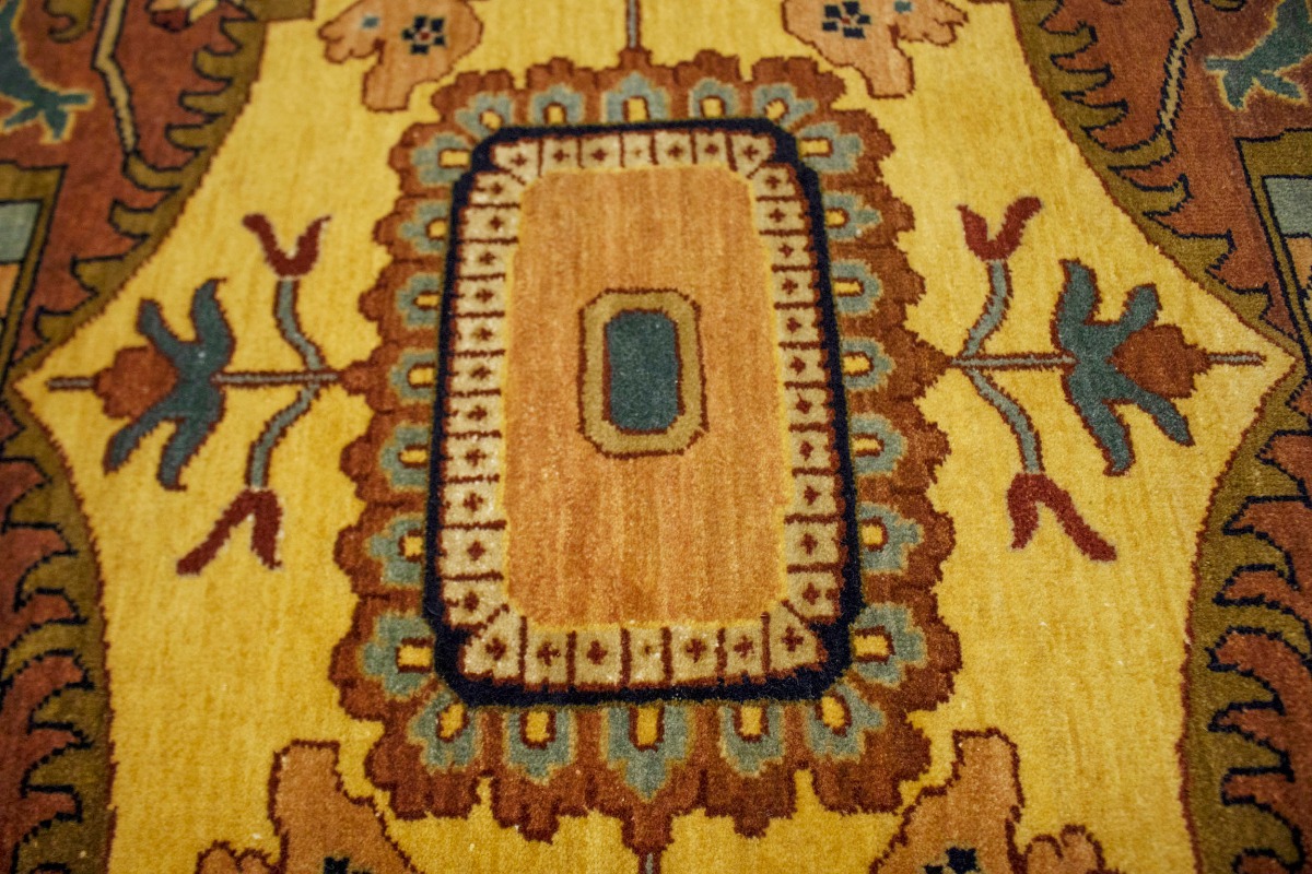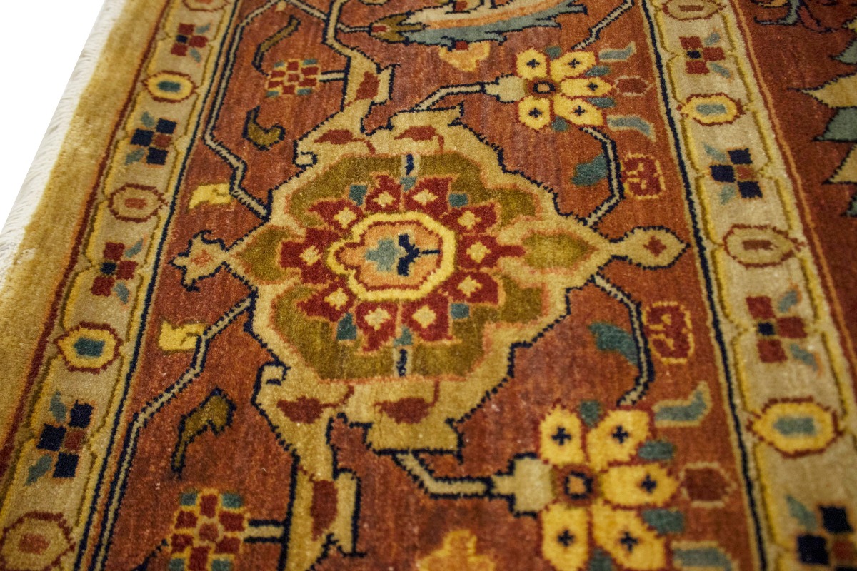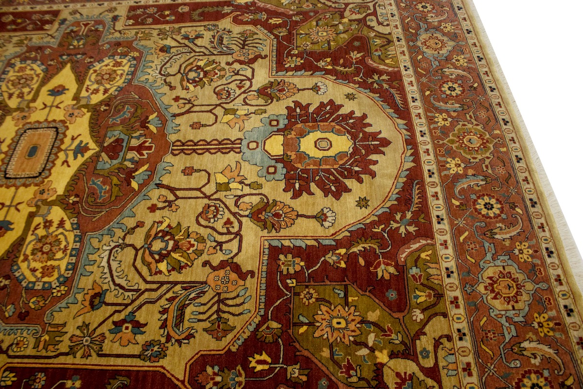 This genuine 9X12 beige new Oriental rug was well-constructed by the hands of master weavers motivated by a variety of stunning artistic designs, to recreate the aged look of the exceptional piece with a richness of color and developed decorative background field. What set this vintage style Oriental area rug from the others are the material and dye used (wool pile and cotton foundation), knot count, ancient designs, fantastic grades, and its regional historical connection: it has deep roots, from the story of the people who produced it to the meaning of the symbols and colors displayed across its canvas that have been praised for centuries. This Indian home décor carpet will be completely cozy and inviting that never will go out of style! Also, this Oriental rug would be among your most valuable treasures, it is a great investment that increase in value over time, and it will last a lifetime because was woven with high-quality, all-natural wool. Eco-friendly, opulent yet affordable; this rug give you an extra pop of character to help define your home environment with elegance and warmth that will capture the eyes and attention of your audience (homeowners, designers, decorators, family and friends).