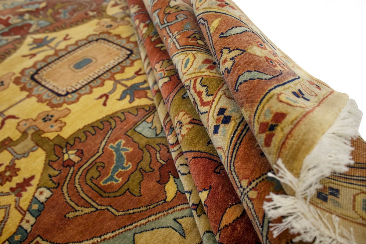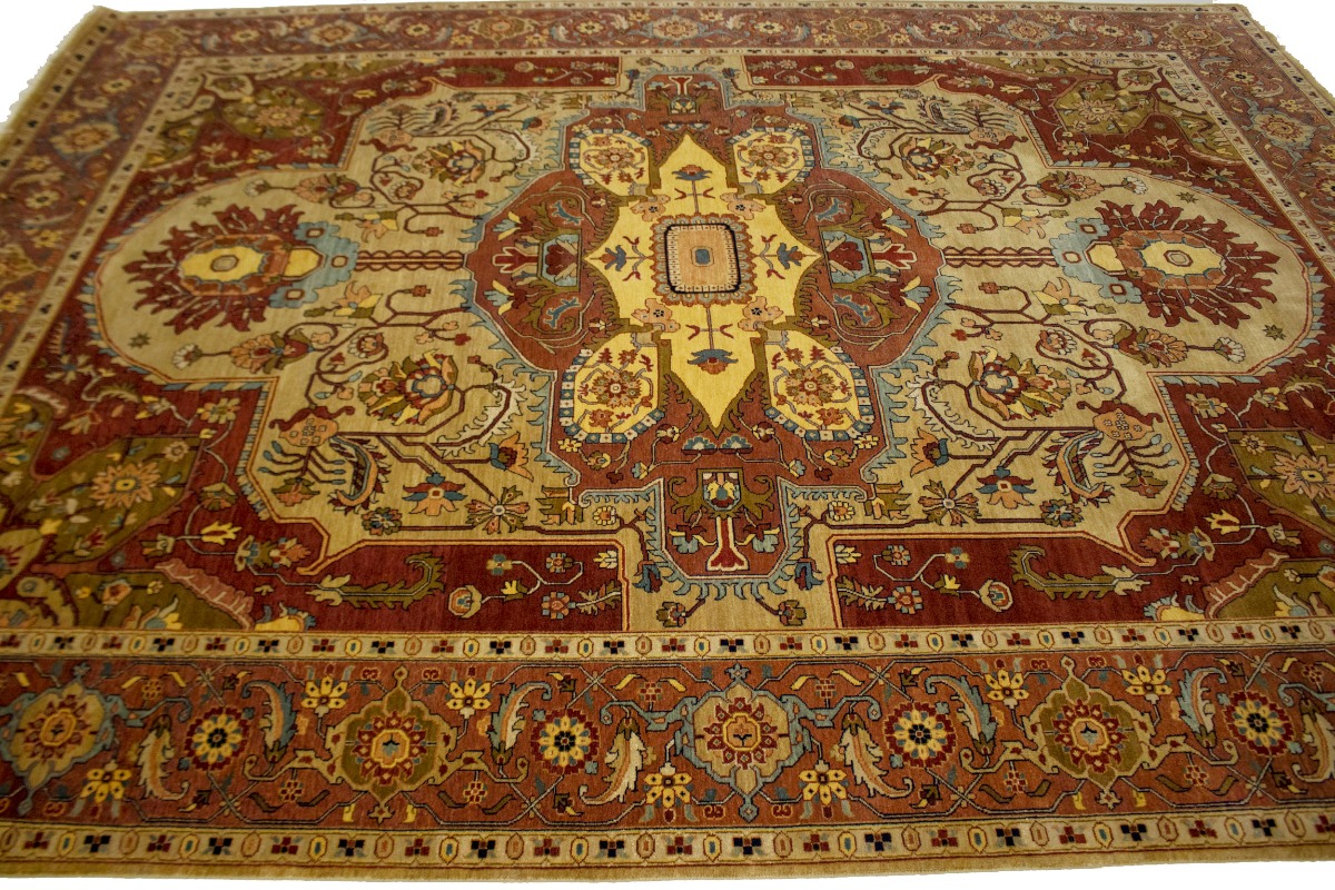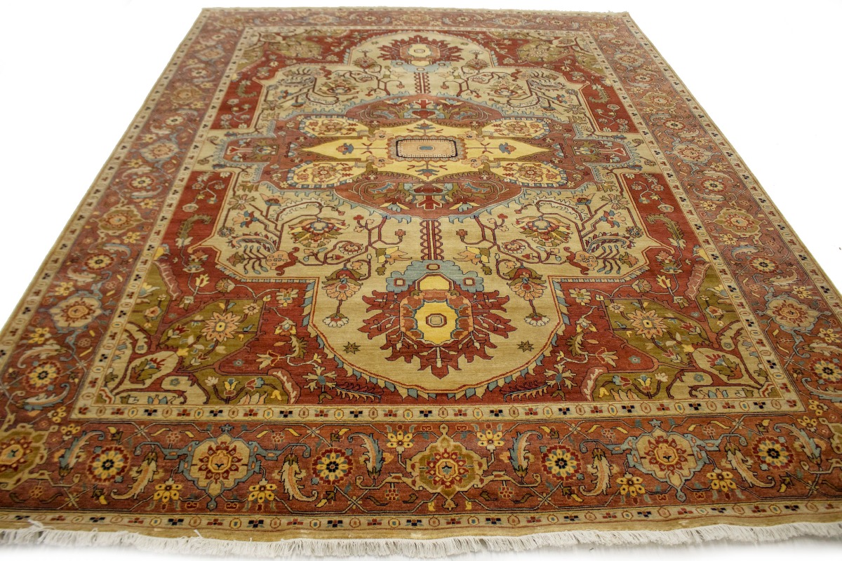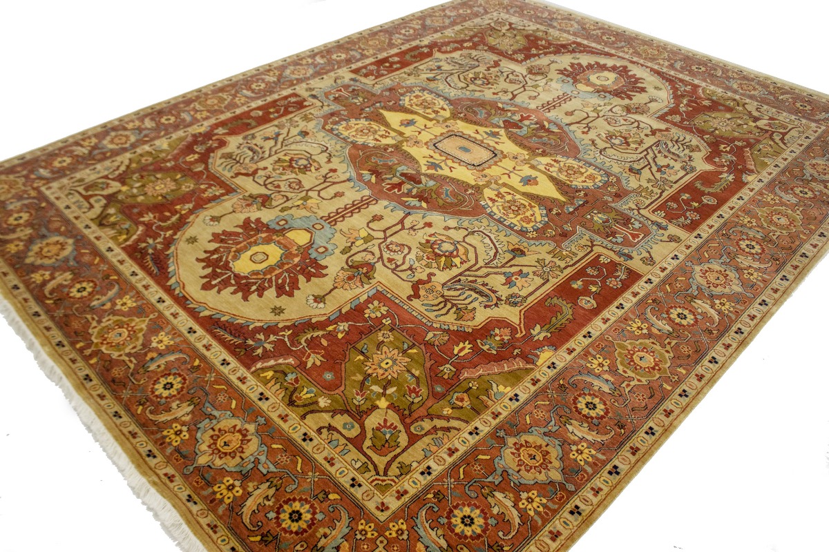 Beige & Rust Floral 9X12 Heriz Serapi Oriental Rug