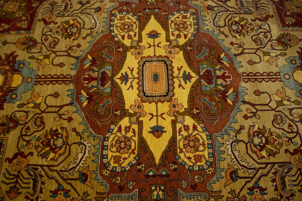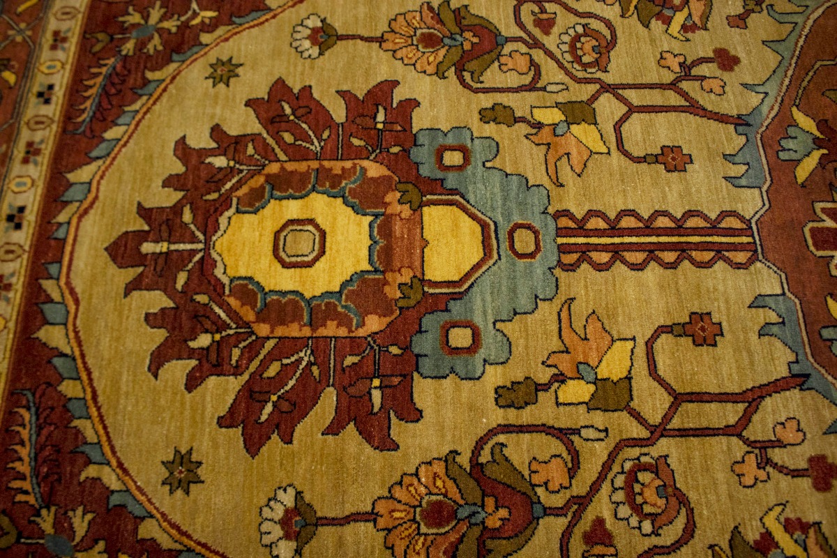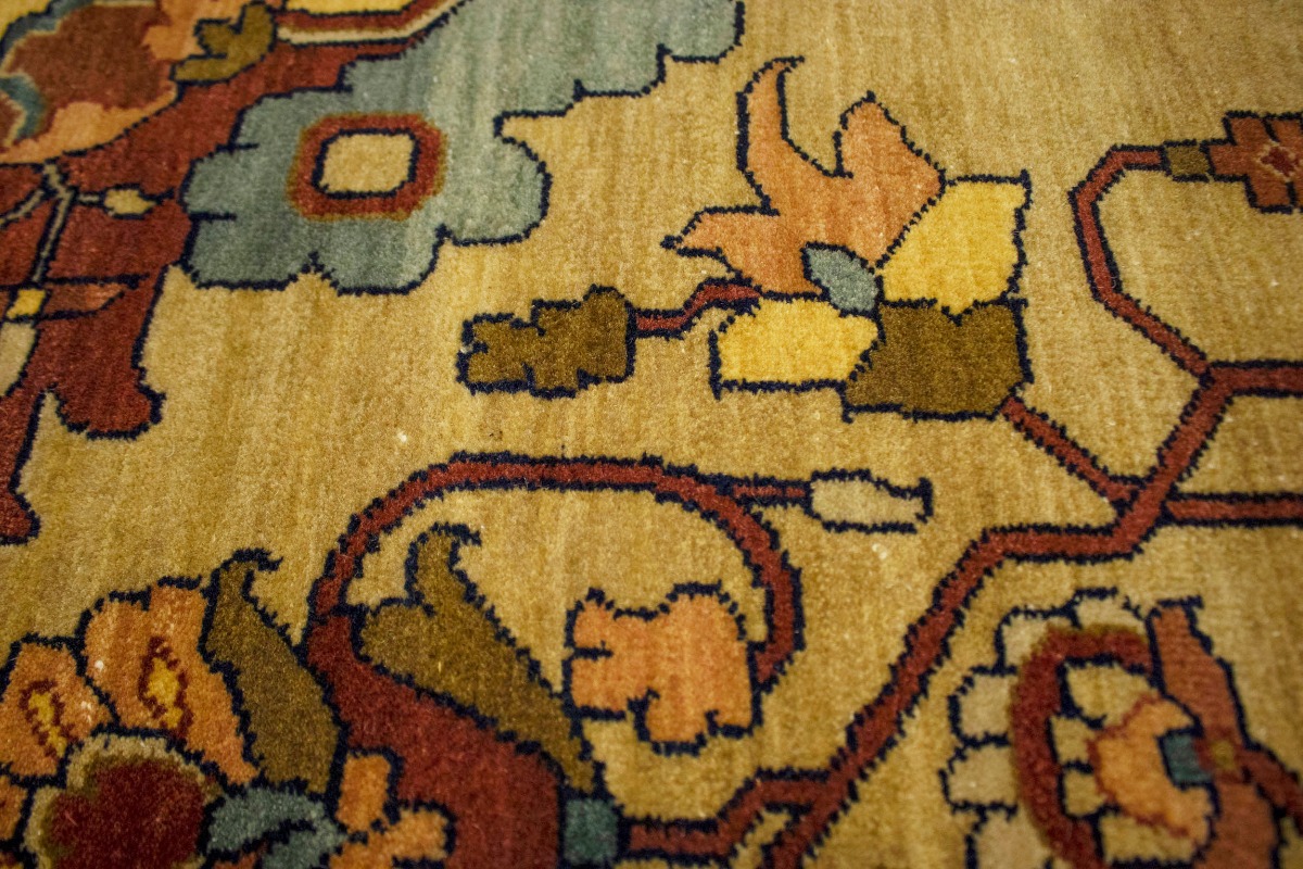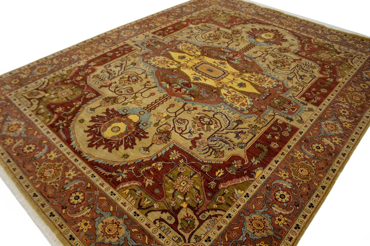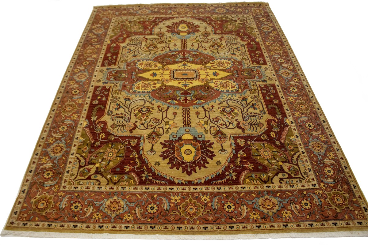 Handmade 9X12 beige oriental rug made with vegetable dyes (fine wool pile and cotton foundation), exceptional knot count, and appealing ancient designs. This Oriental rug never will go out of style and would be among your most valuable treasures.