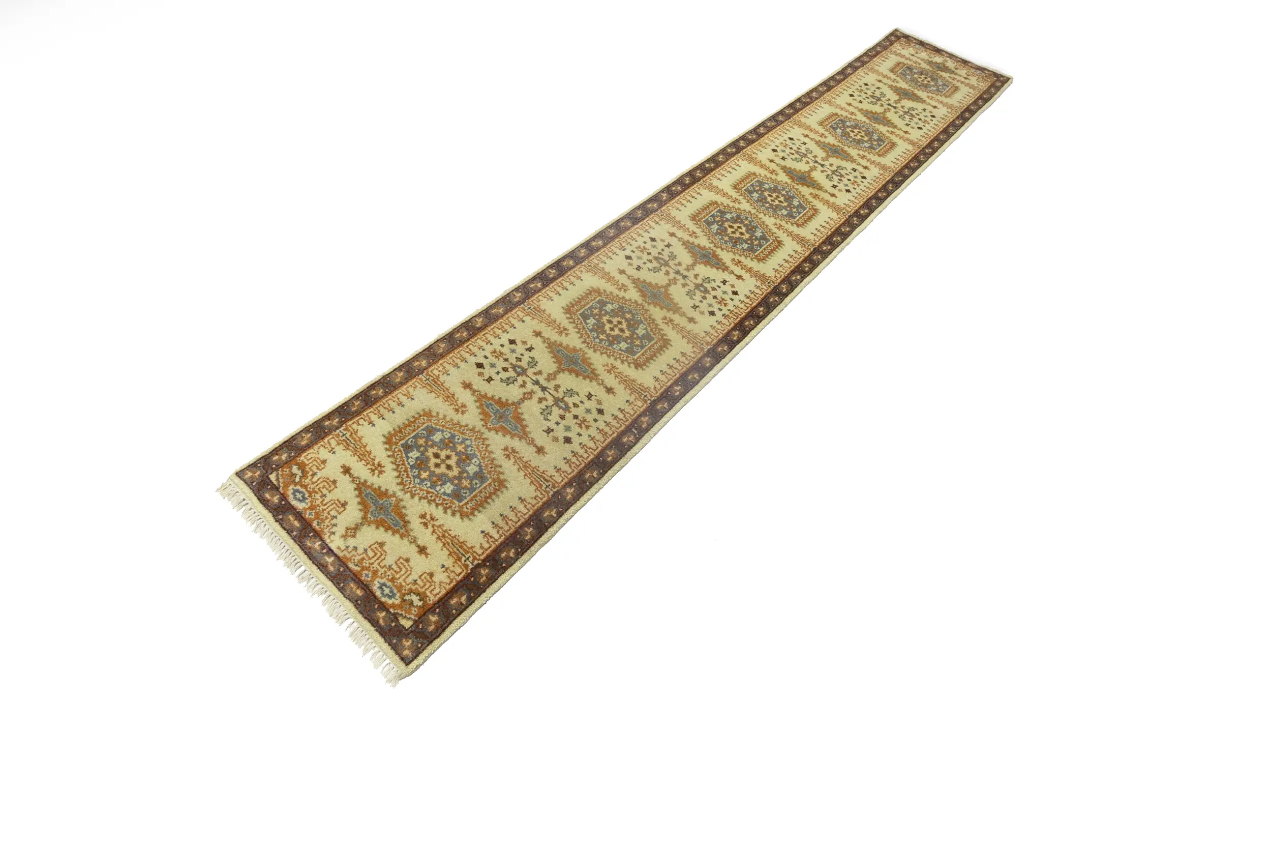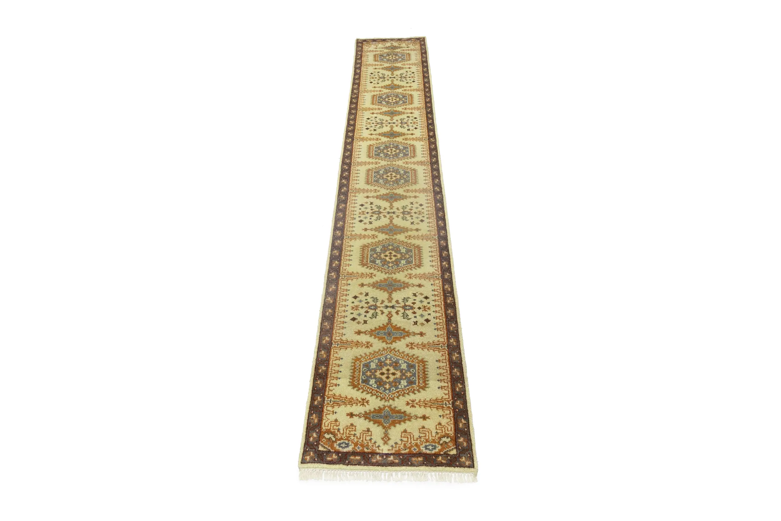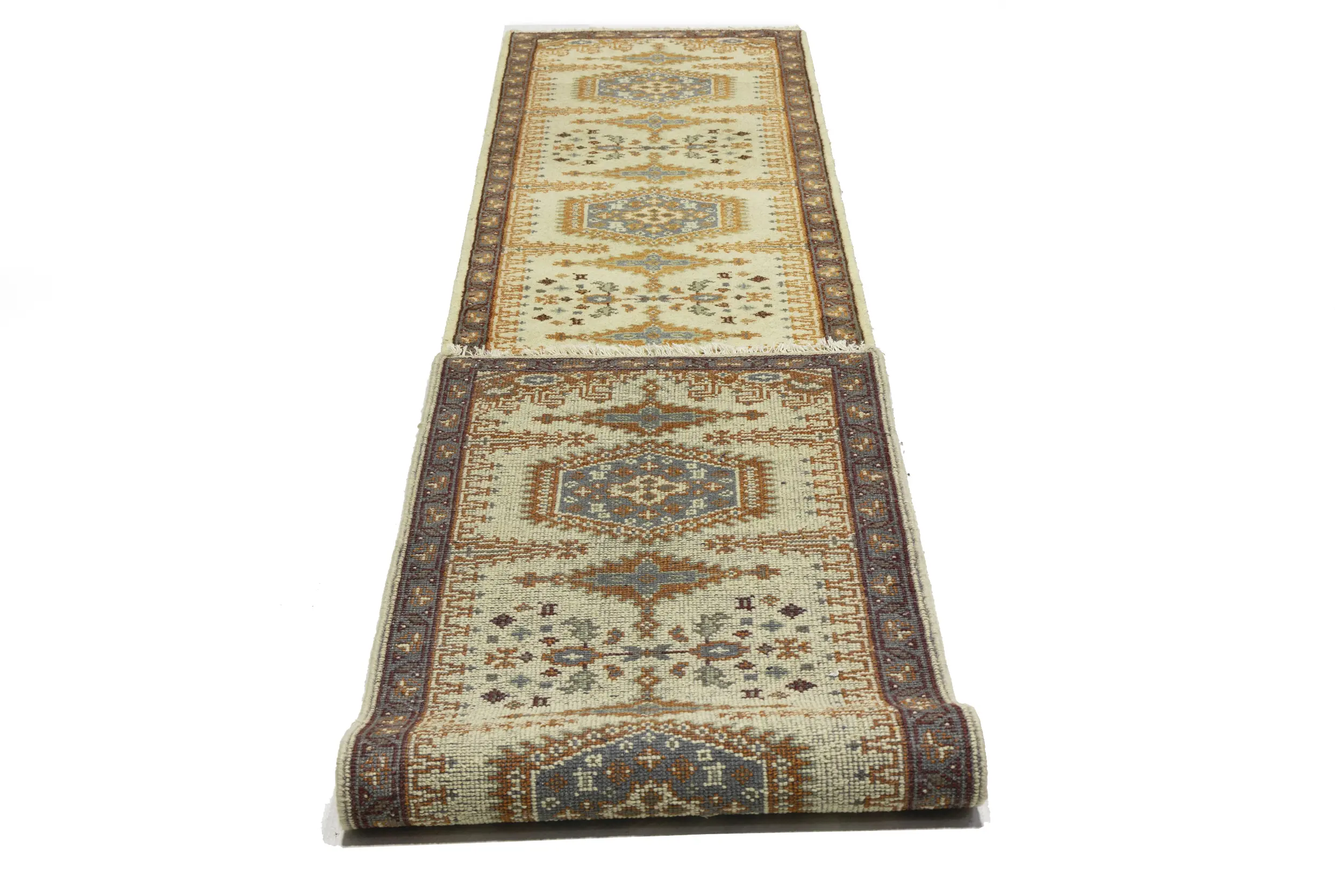 Handmade 3X14 beige Oriental runner made with vegetable dyes (fine wool pile and cotton foundation), superior knot count, and appealing ancient designs. This Oriental runner never will go out of style and would be among your most valuable treasures.