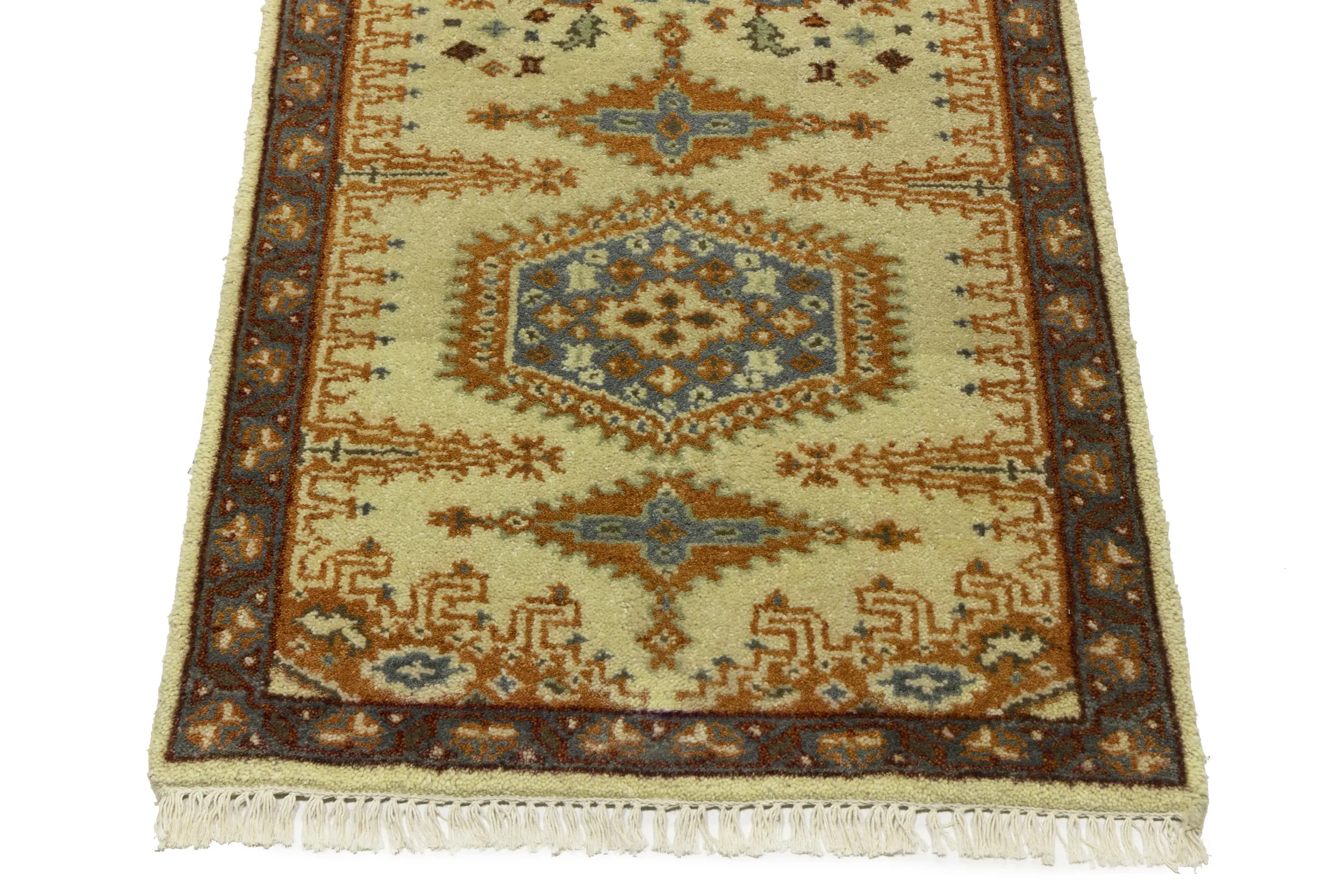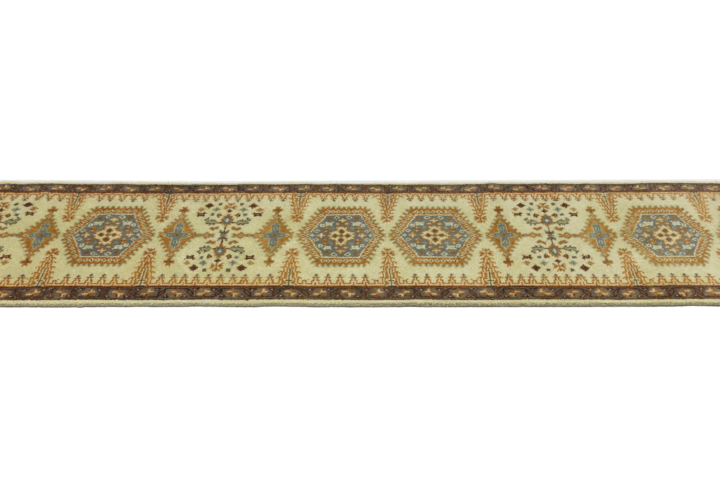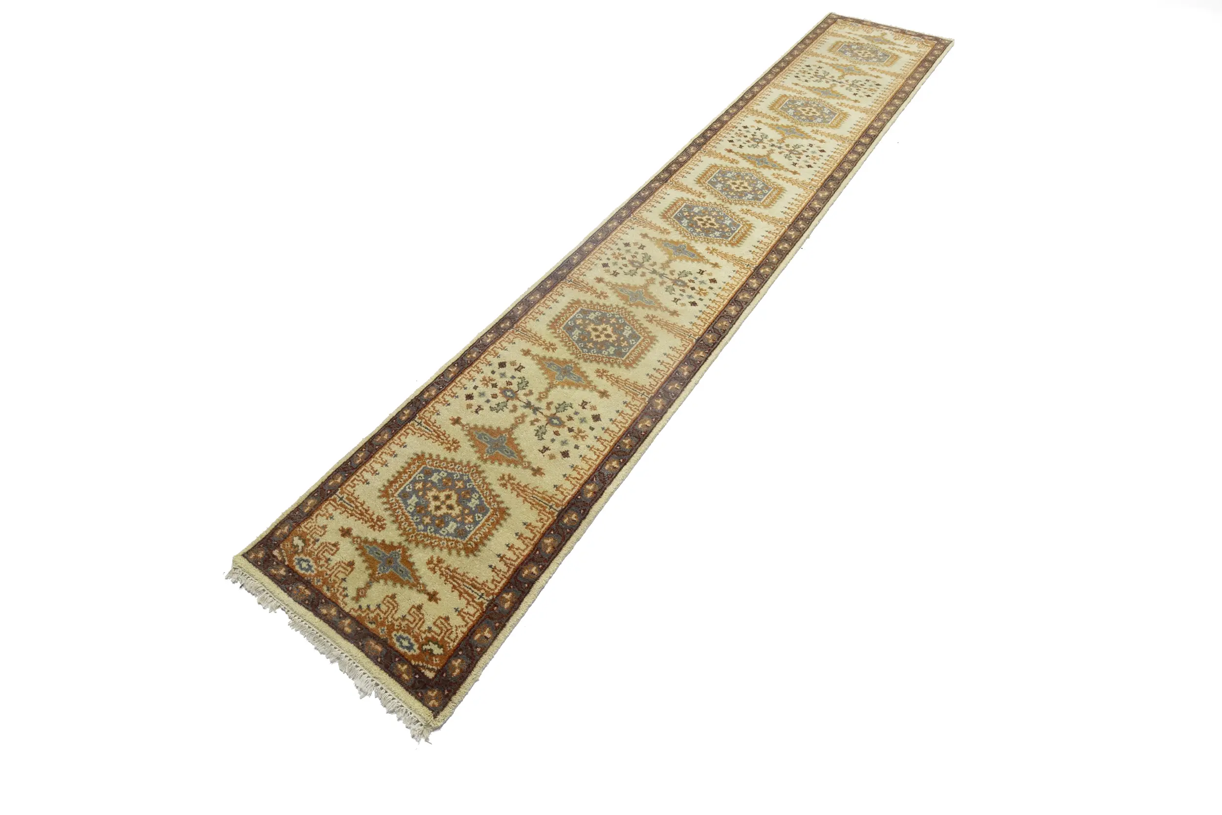 Handmade 3X14 beige Oriental runner made with vegetable dyes (fine wool pile and cotton foundation), superior knot count, and appealing ancient designs. This Oriental runner never will go out of style and would be among your most valuable treasures.