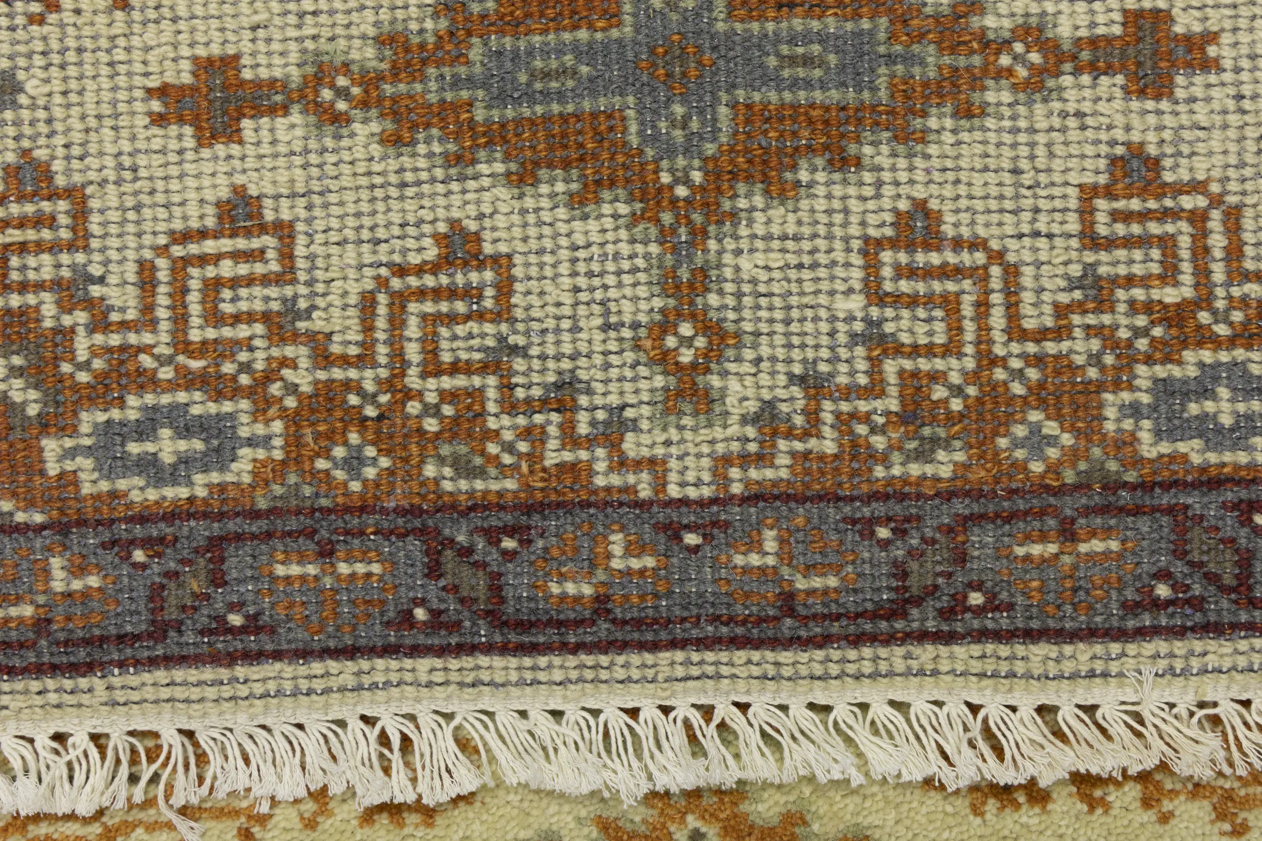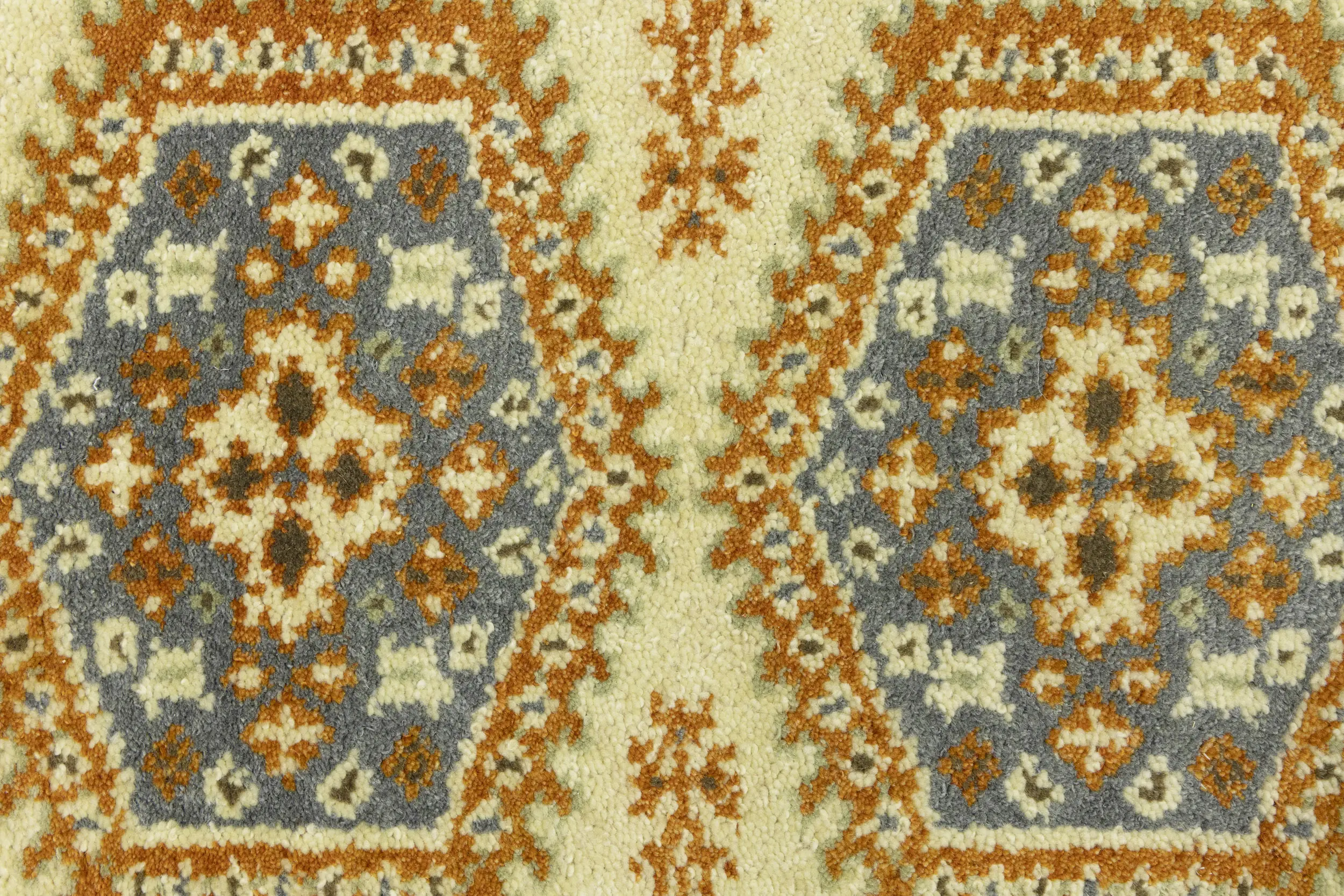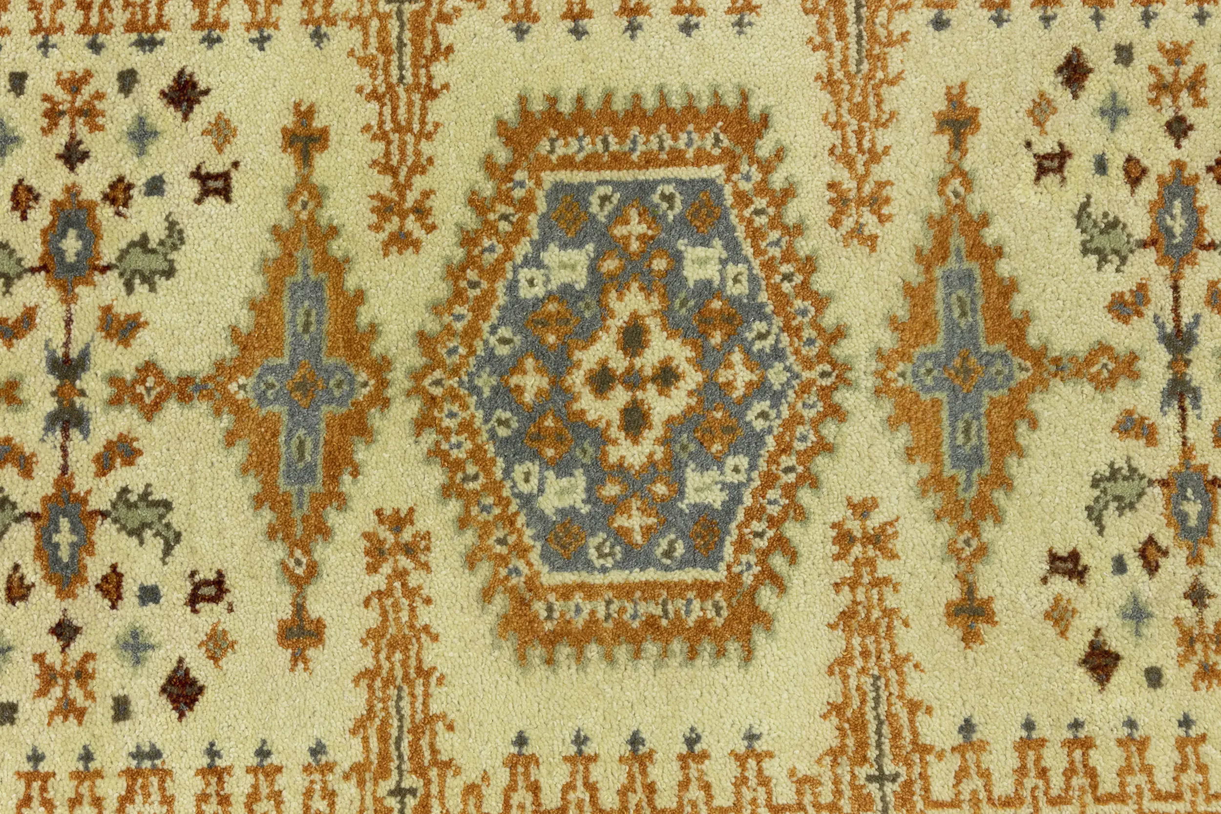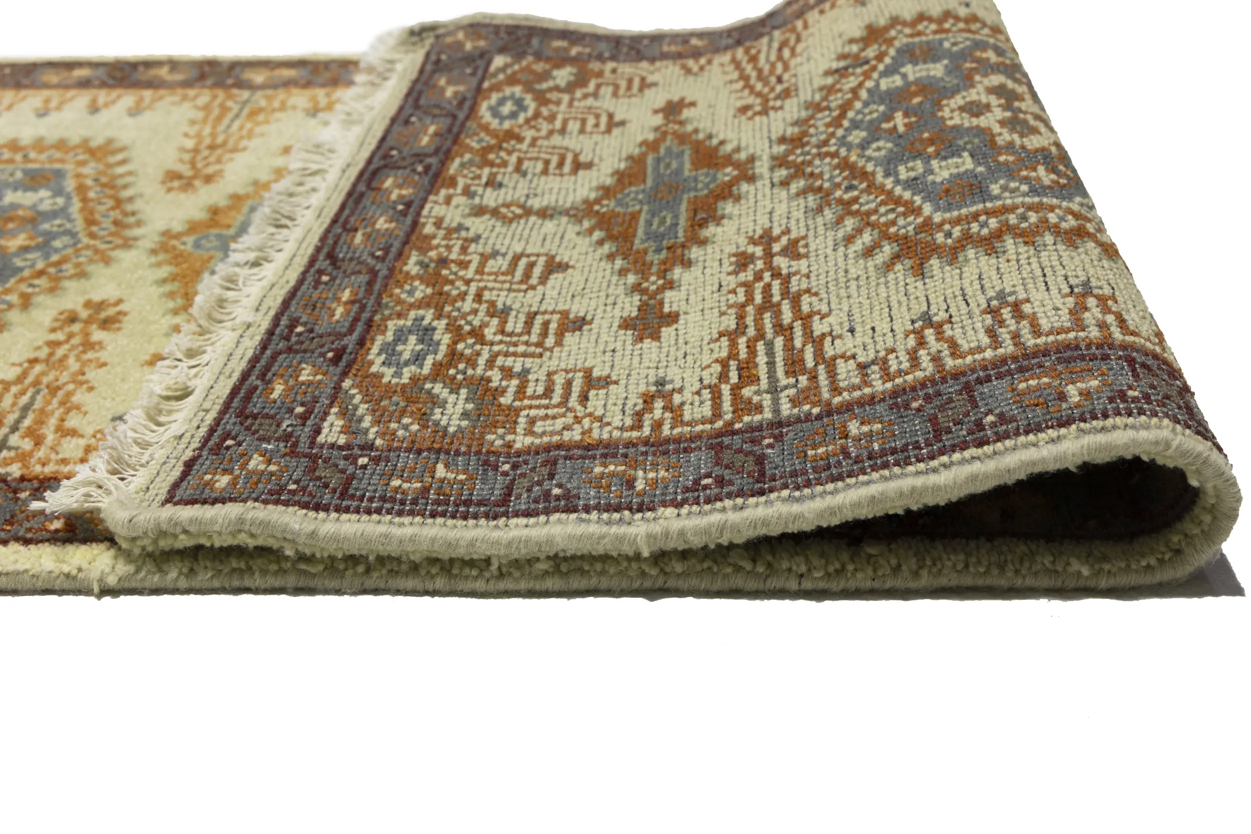 This original 3X14 beige new Oriental runner was finely knotted by the hands of weavers influenced by a variety of amazing artistic designs, to recreate the aged look of the exceptional piece with a richness of color and embellished background field. What set this vintage style Oriental area runner from the others are the material and dye used (wool pile and cotton foundation), knot count, antique designs, fantastic grades, and its regional historical connection: it has deep roots, from the story of the people who produced it to the meaning of the symbols and colors displayed across its canvas that have been praised for centuries. This Indian home décor carpet will be completely cozy and inviting that never will go out of style!