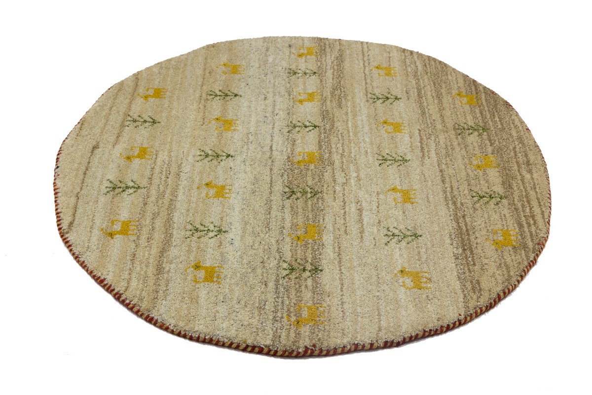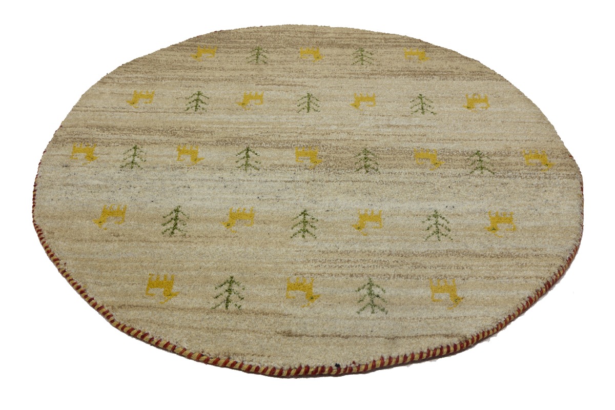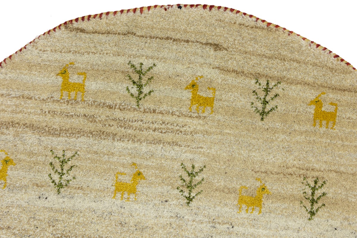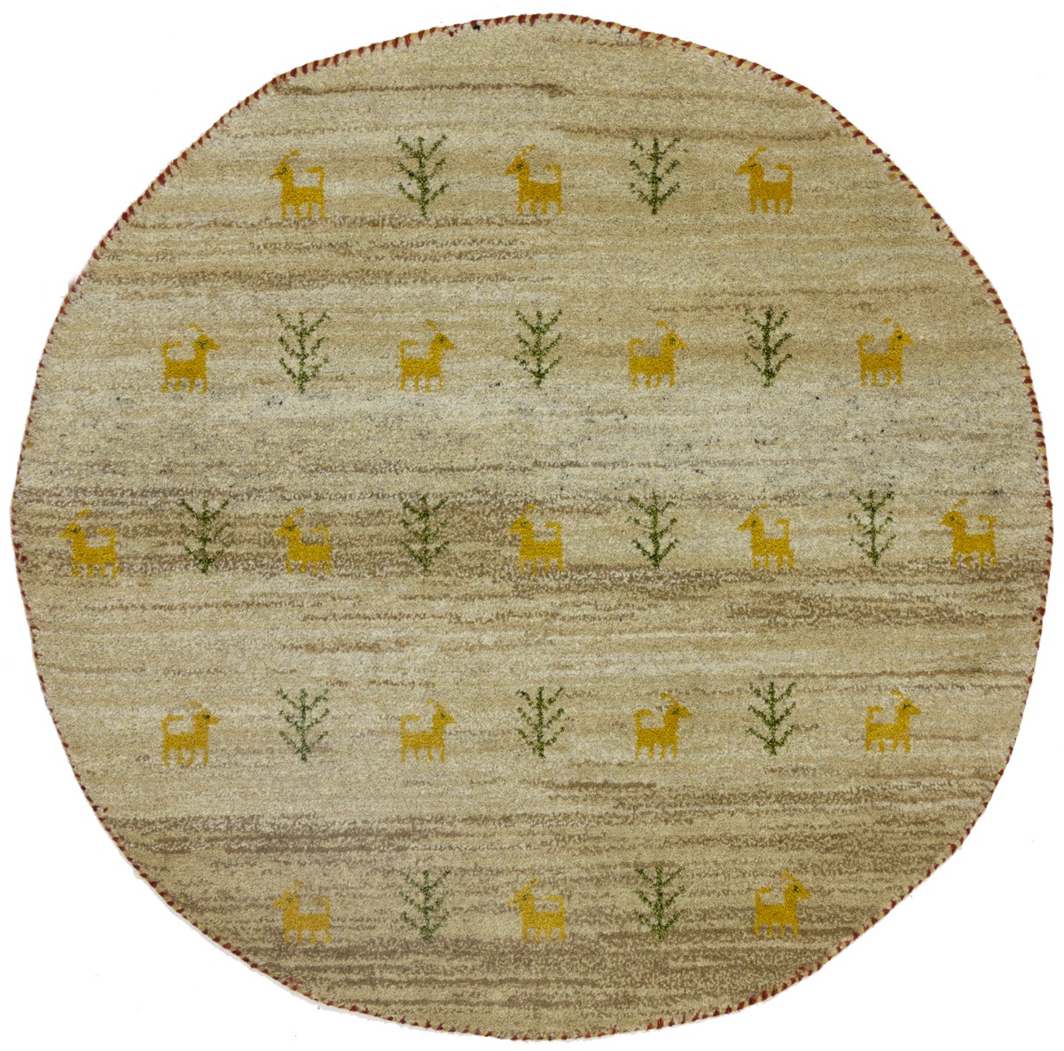 Beige Tribal 4X4 Indo-Gabbeh Oriental Round Rug