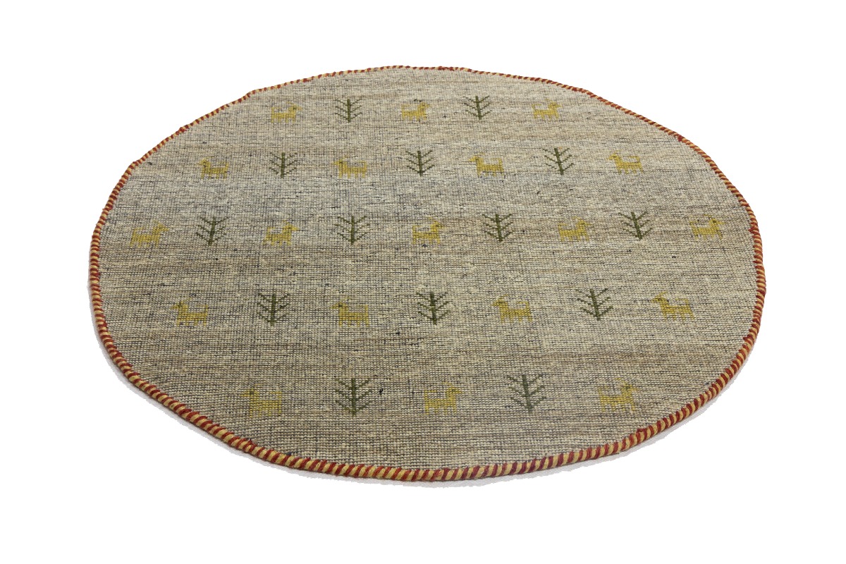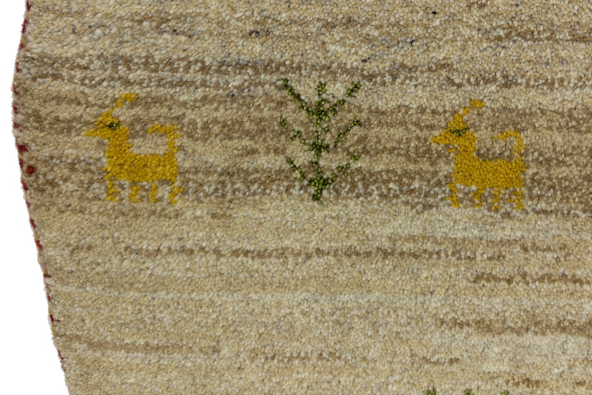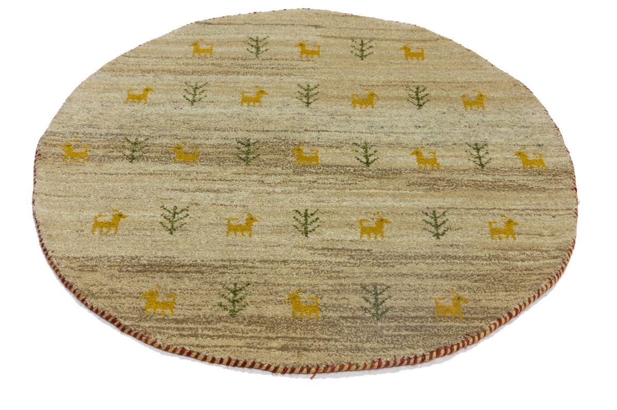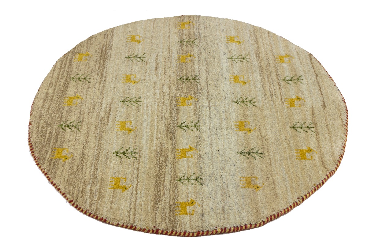 Beige Tribal 4X4 Indo-Gabbeh Oriental Round Rug