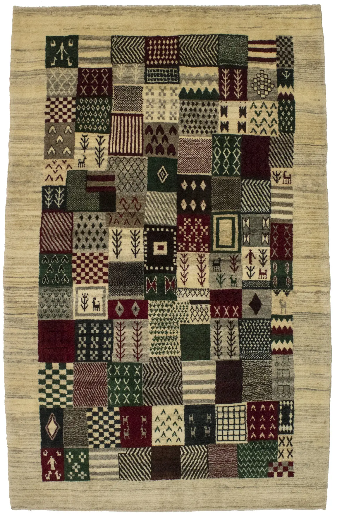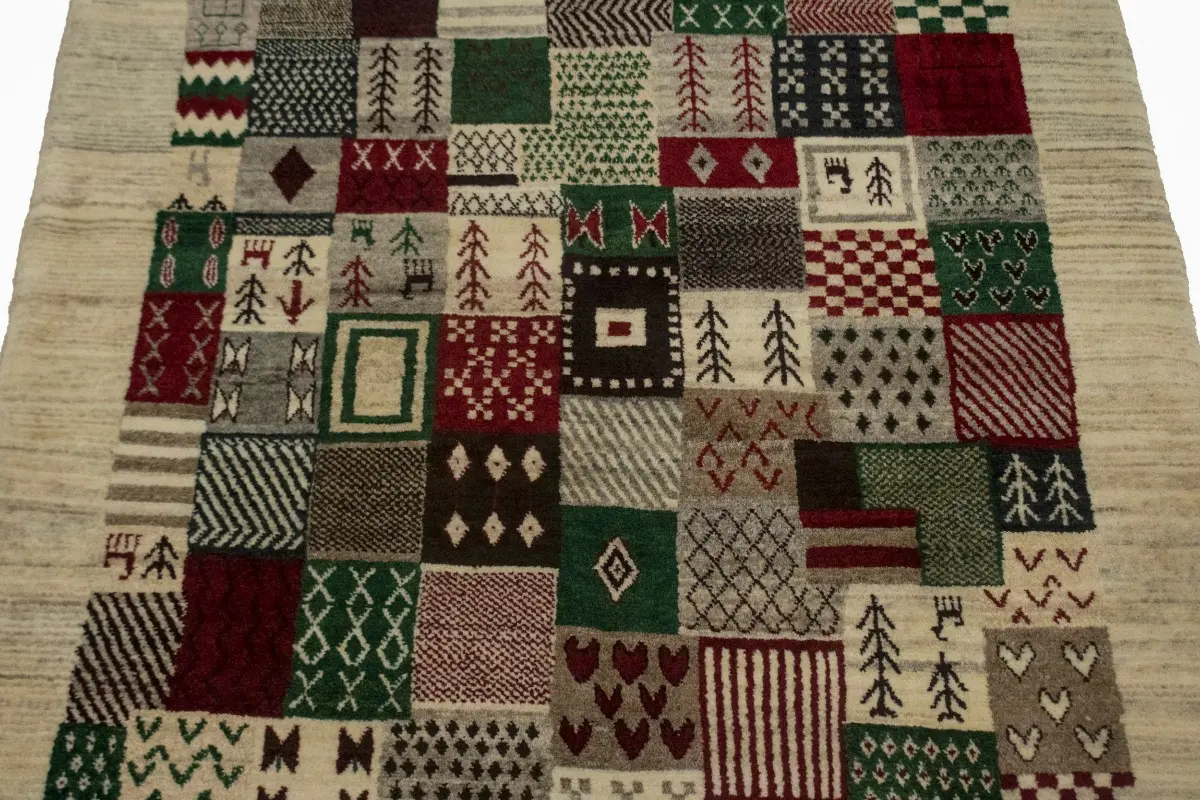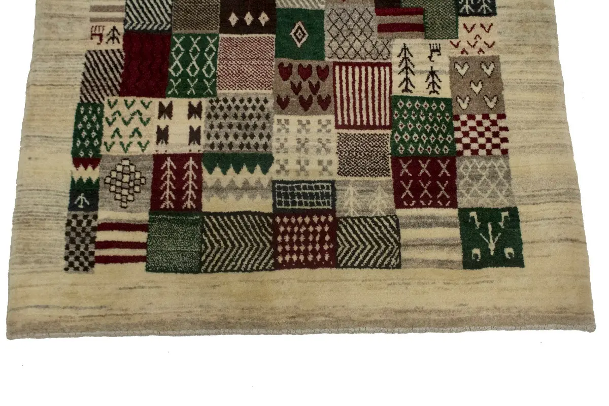 Our Gabbeh collection is inspired by timeless, tribal designs. Each of these magnificent rugs is crafted using a hand-knotted construction with a softest wool pile by talented artisans of Persia and will show beautifully for years. This Oriental 4X6 ivory Gabbeh rug never will go out of style.