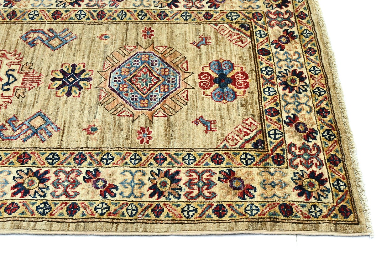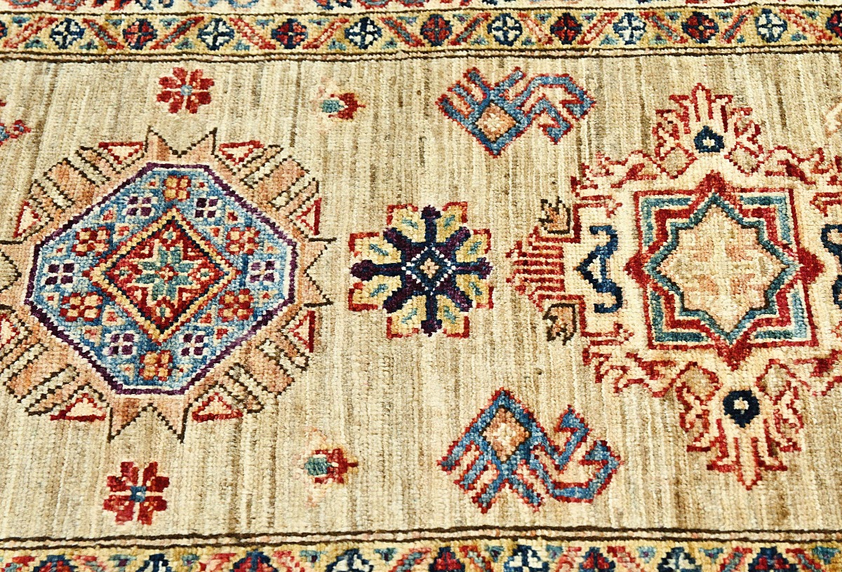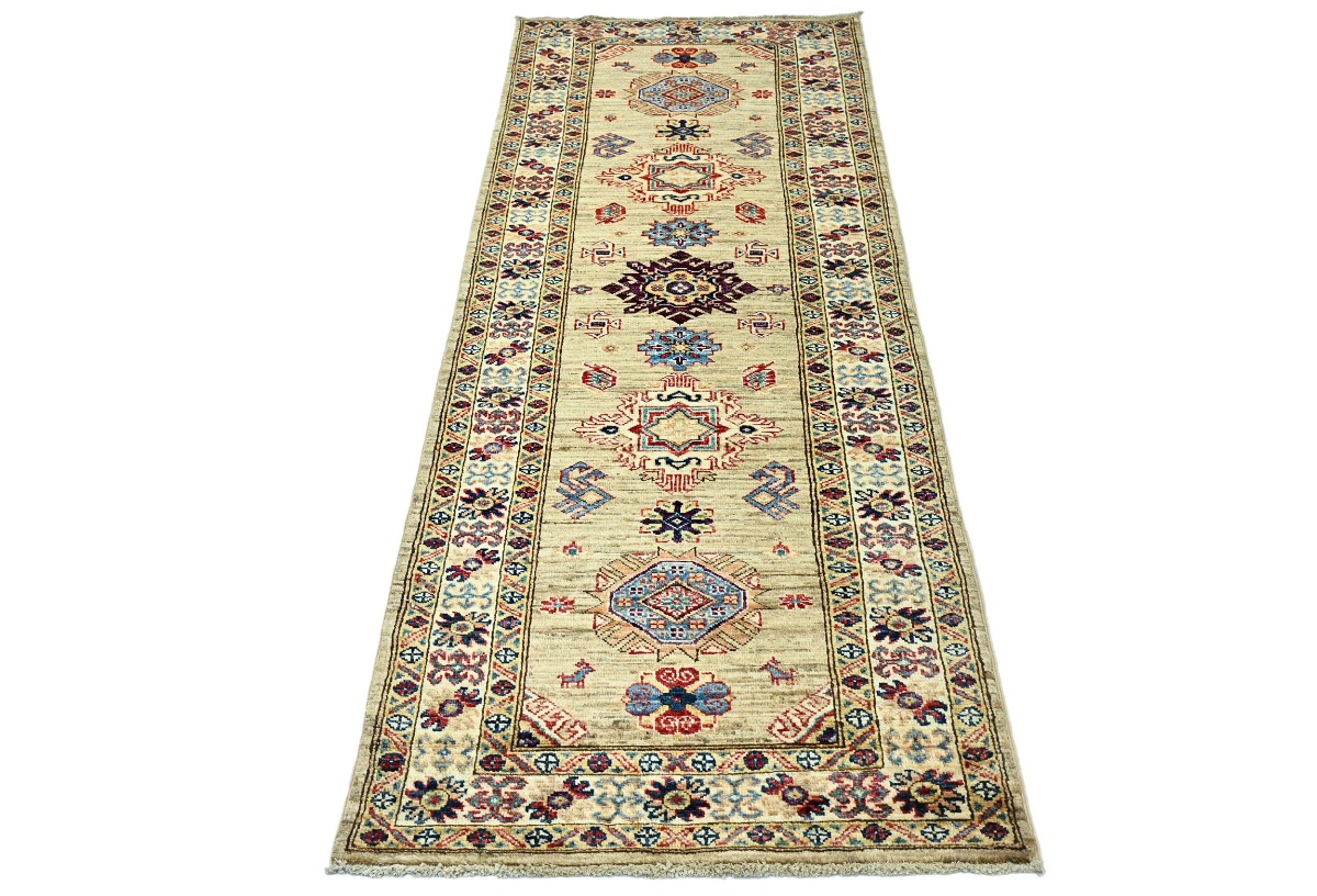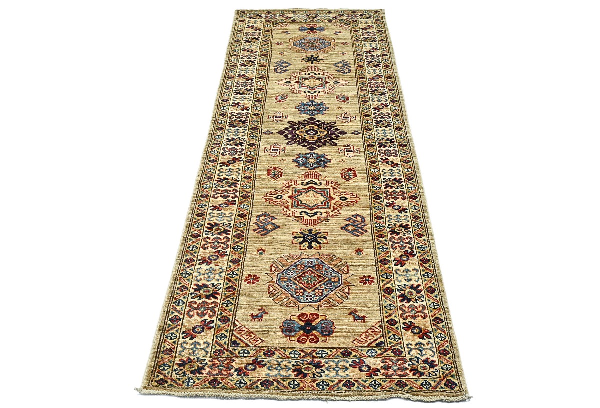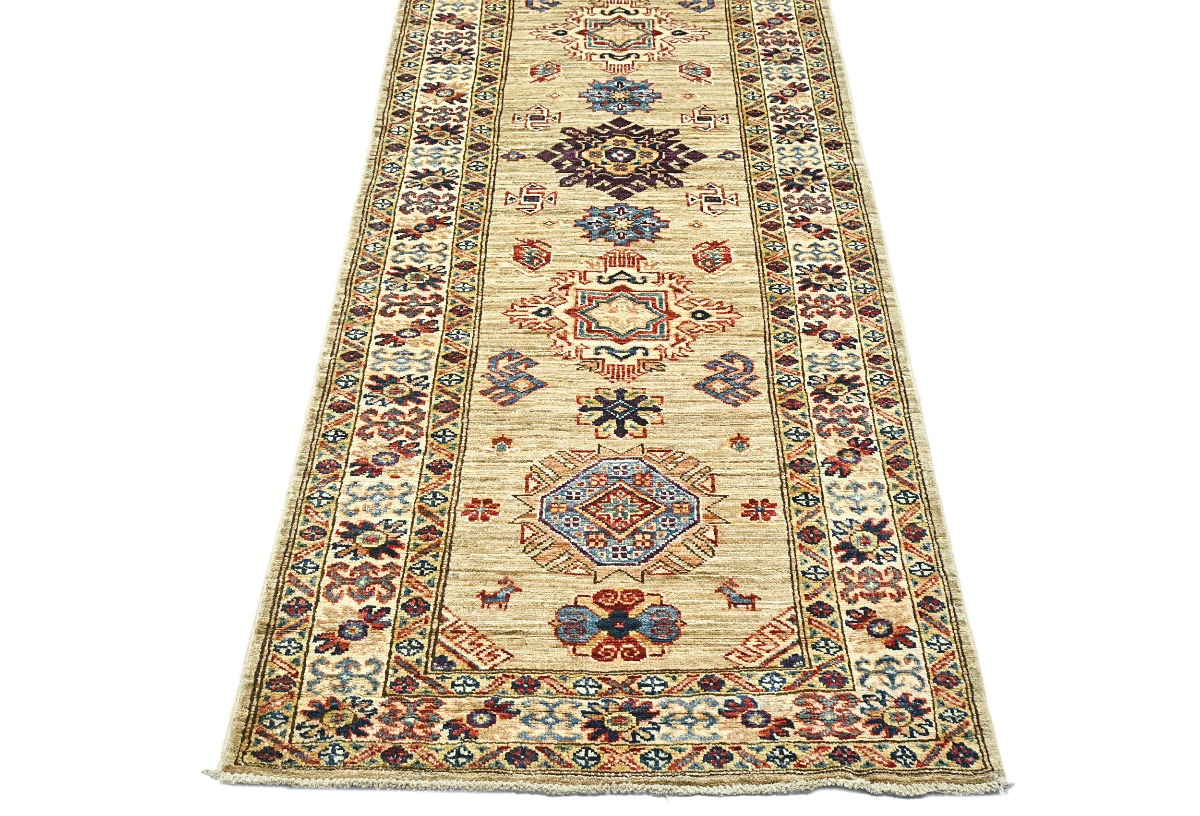 Beige Tribal Geometric 2'4X6'7 Kazak Pakistan Oriental Runner Rug