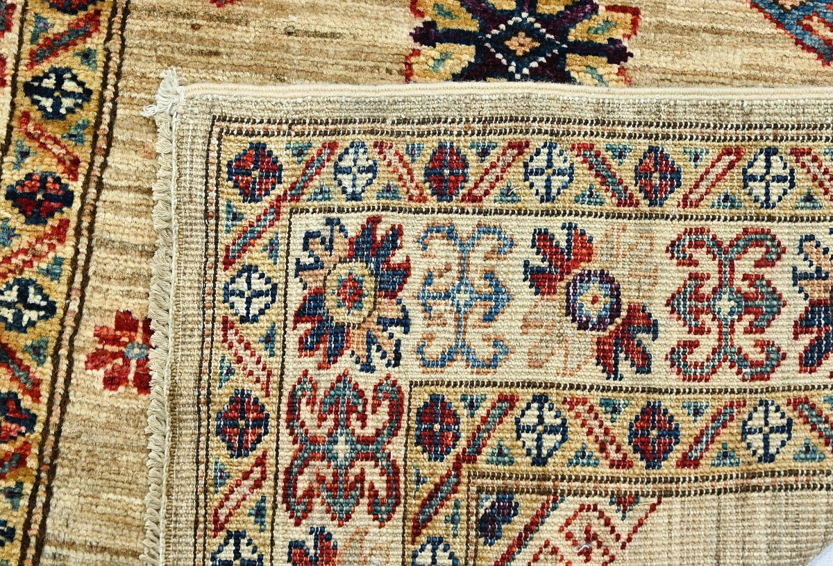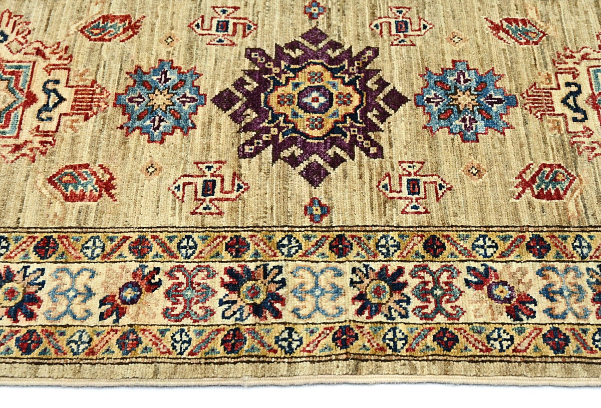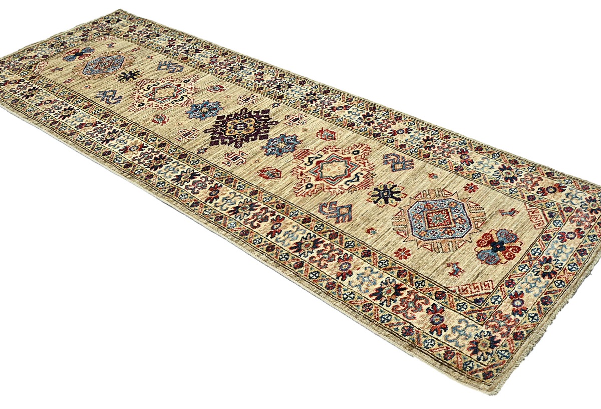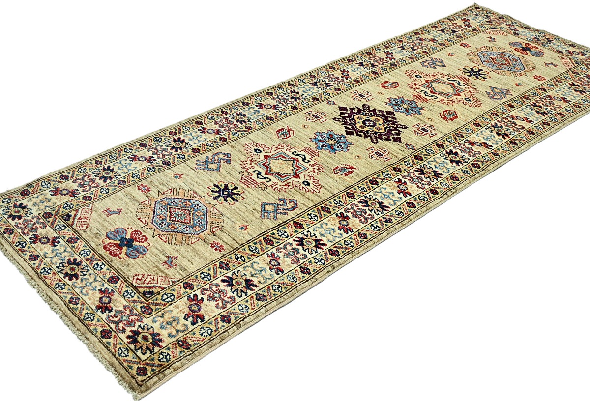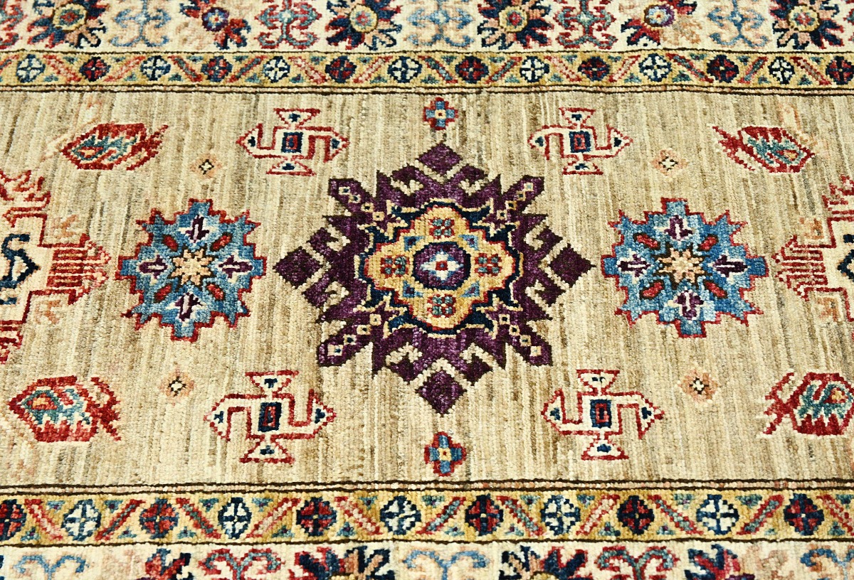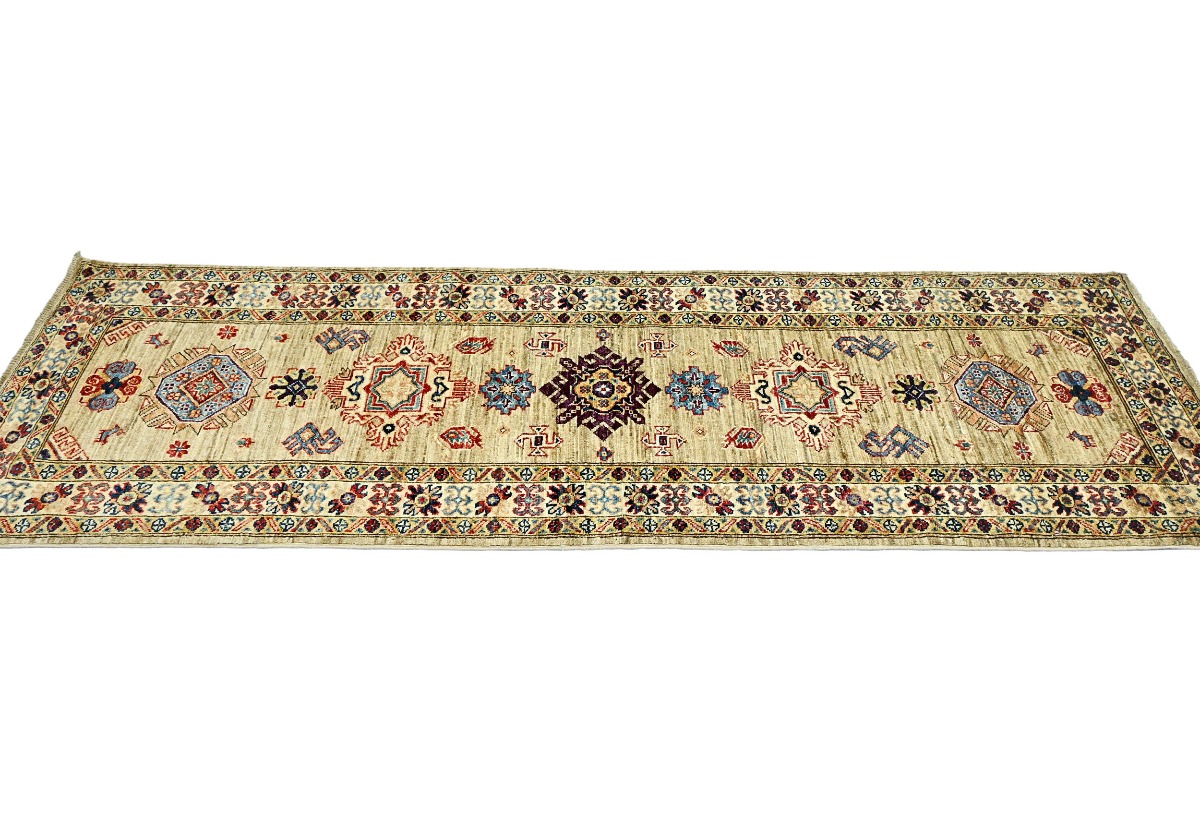 Beige Tribal Geometric 2'4X6'7 Kazak Pakistan Oriental Runner Rug