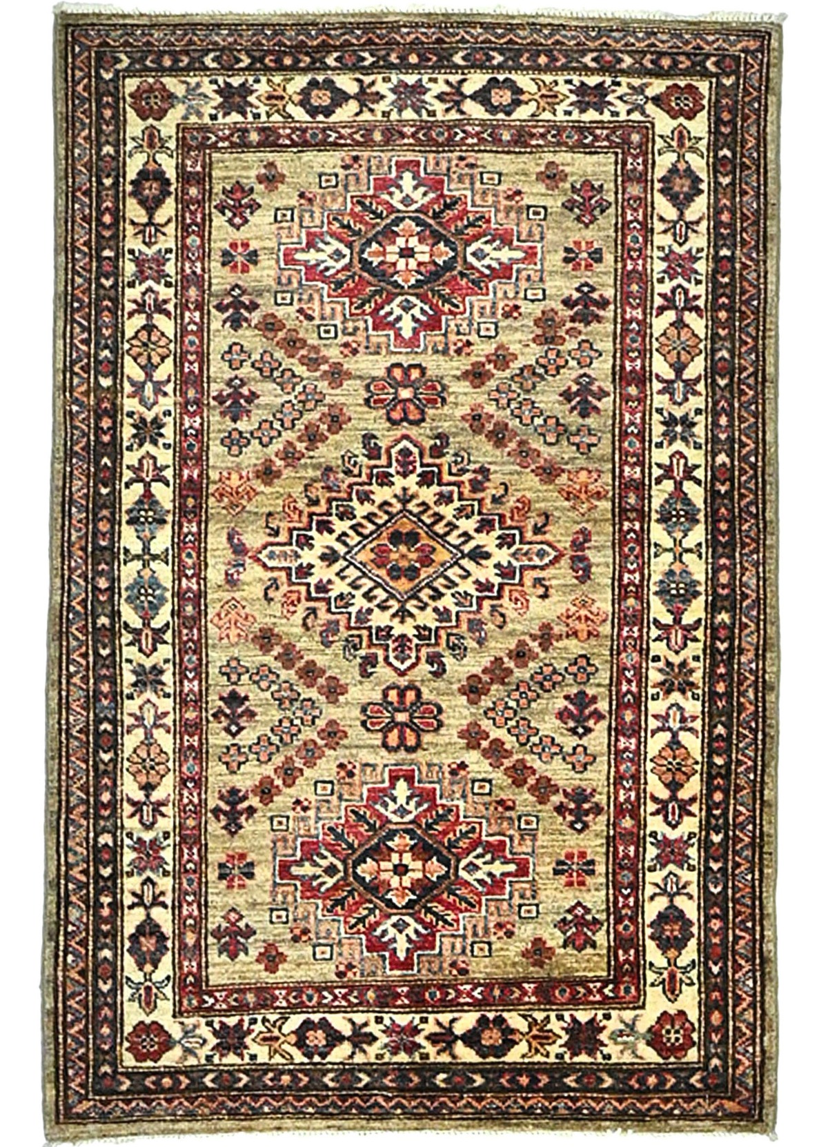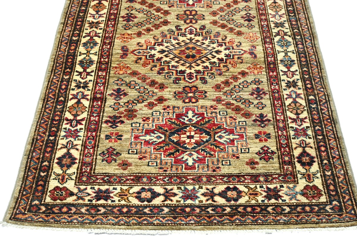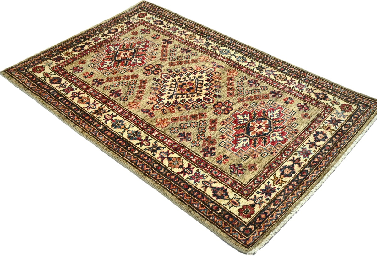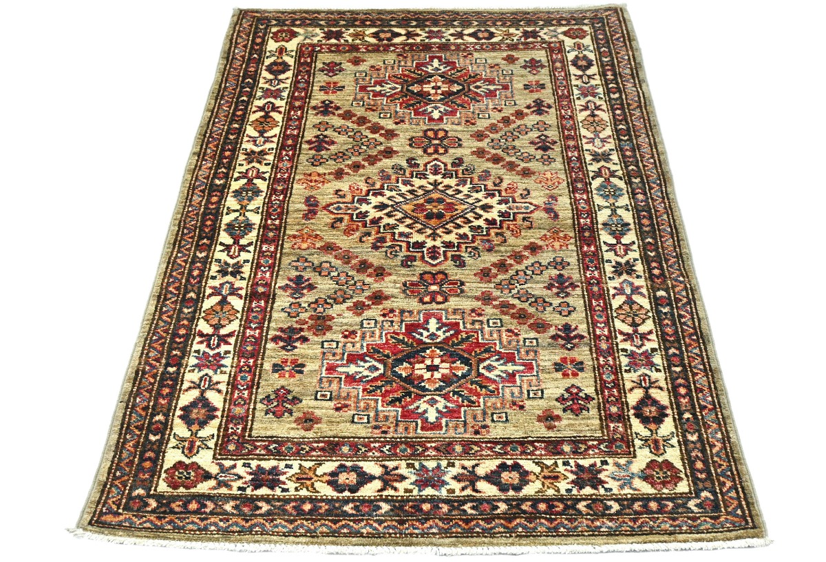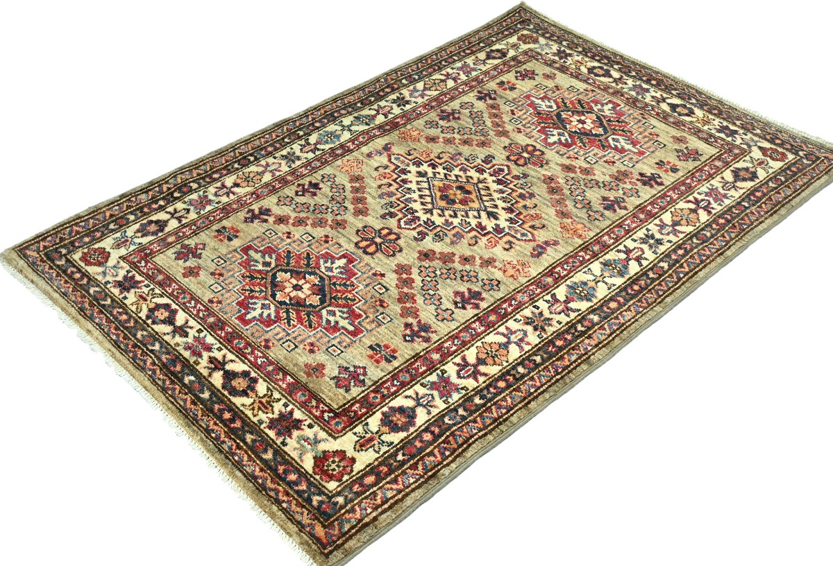 Beige Tribal Geometric 3X4 Kazak Pakistan Oriental Rug