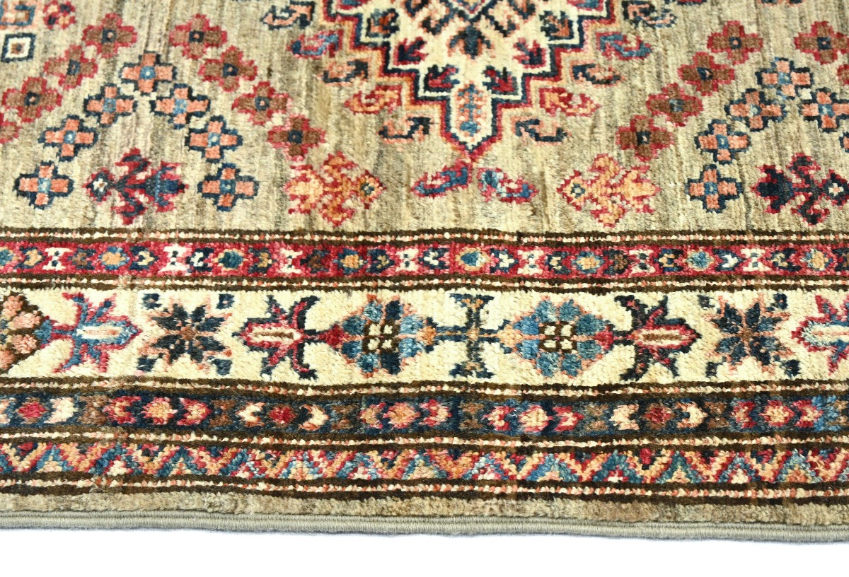 Handmade 3X4 beige oriental rug made with vegetable dyes (fine wool pile and cotton foundation), superior knot count, and alluring ancient designs. This Oriental rug never will go out of style and would be among your most valuable treasures.