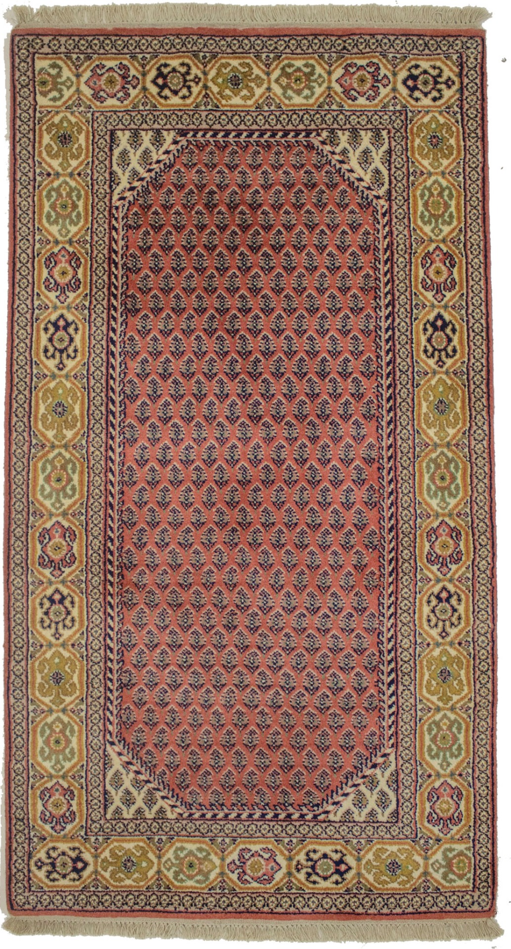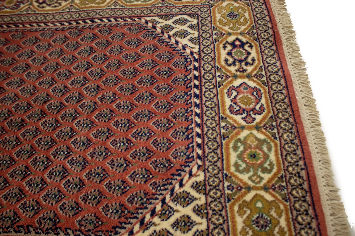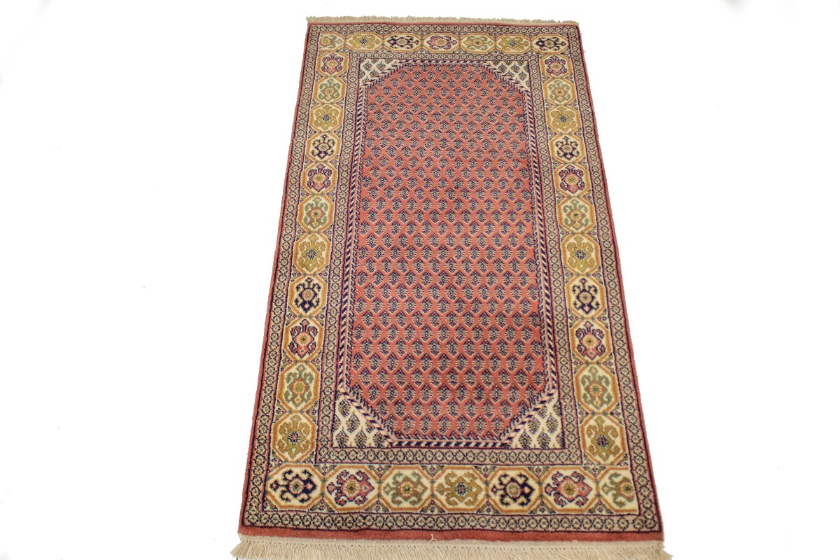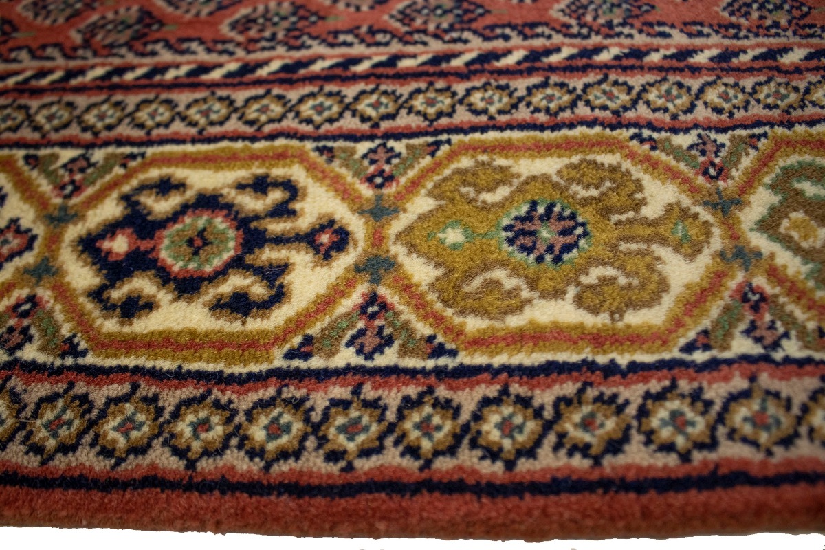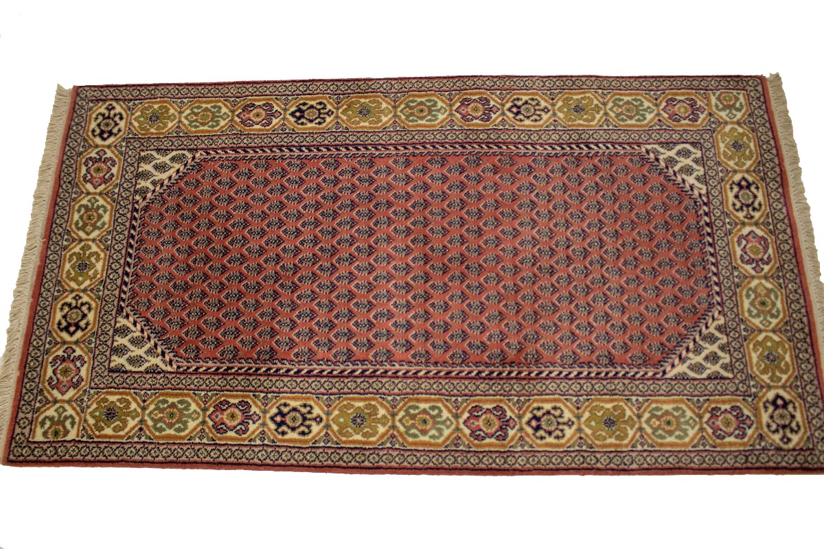 This original 2'5X4'5 red new Oriental rug was made by the hands of talented weavers influenced by a variety of gorgeous symmetrical artistic designs, to recreate the aged look of the unique piece with a richness of color and very balanced background field. What set this vintage style Oriental area rug from the others are the material and dye used (wool pile and cotton foundation), knot count, antique designs, fantastic grades, and its regional historical connection: it has deep roots, from the story of the people who produced it to the meaning of the symbols and colors displayed across its canvas that have been praised for centuries. This Indian home décor carpet will be completely cozy and inviting that never will go out of style! Also, this Oriental rug would be among your most valuable treasures, it is a great investment that accrues value over time, and it will last a lifetime because was woven with high-quality, all-natural wool. Eco-friendly, opulent yet affordable; this rug will give you an extra pop of character to help define your home environment with sophistication and warmth that will capture the eyes and attention of your audience (homeowners, designers, decorators, family and friends). OT-3301