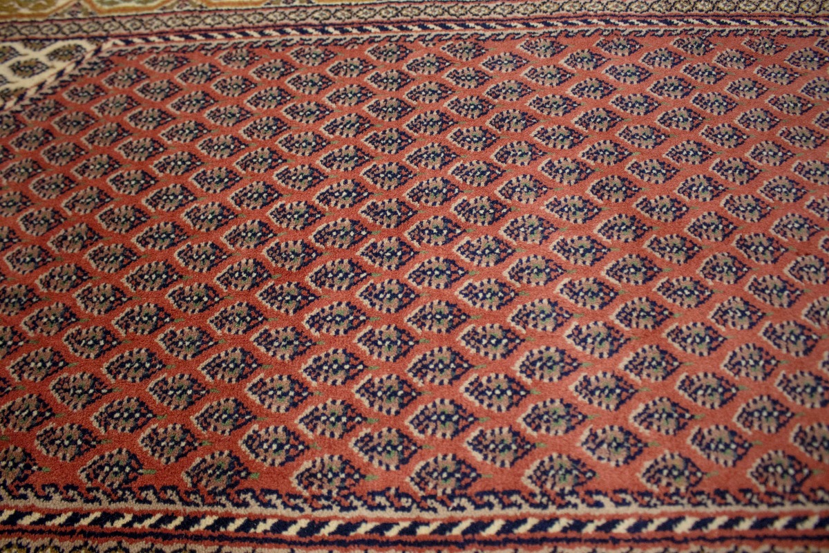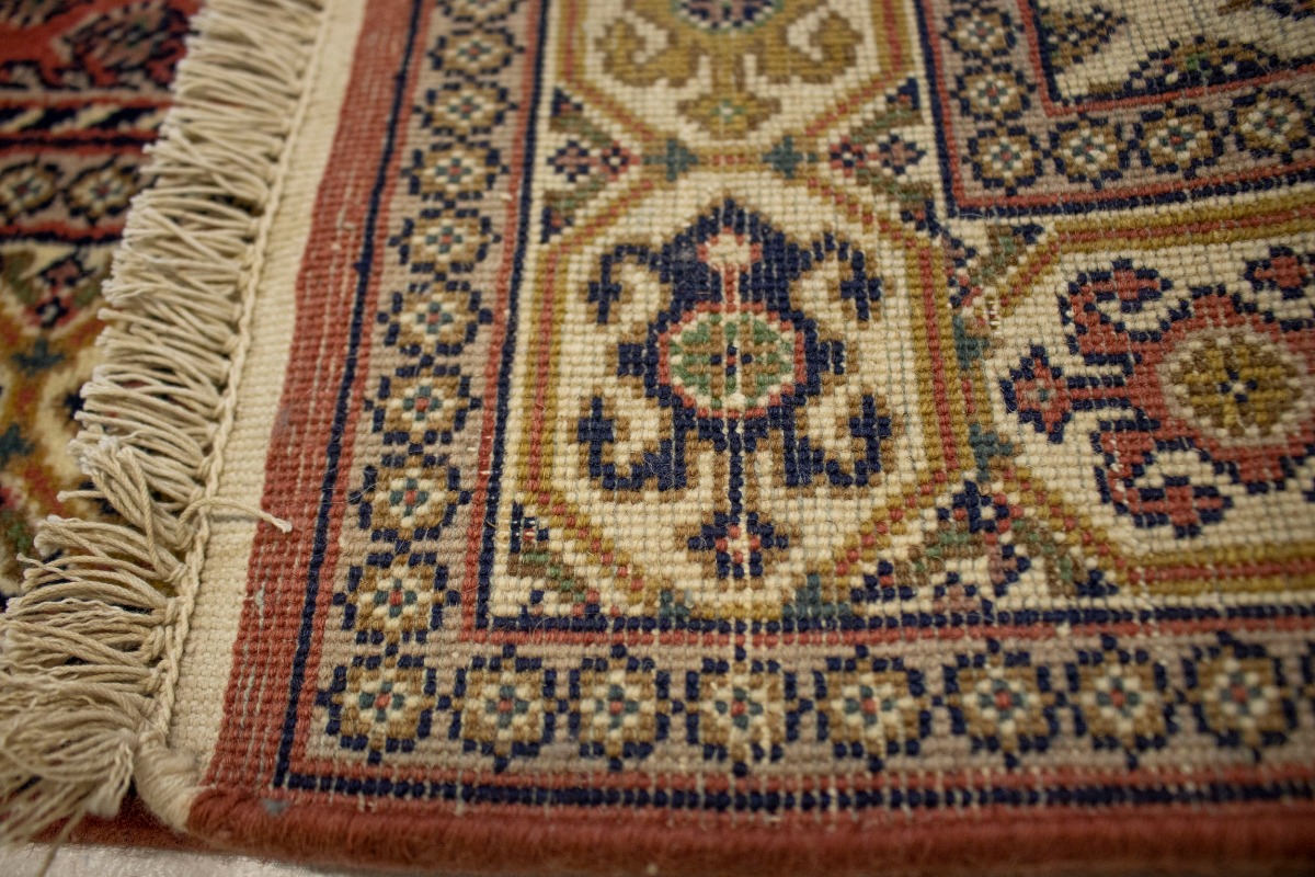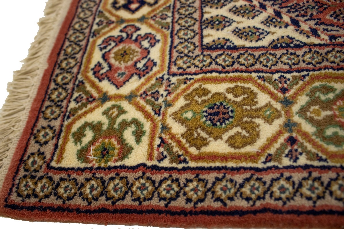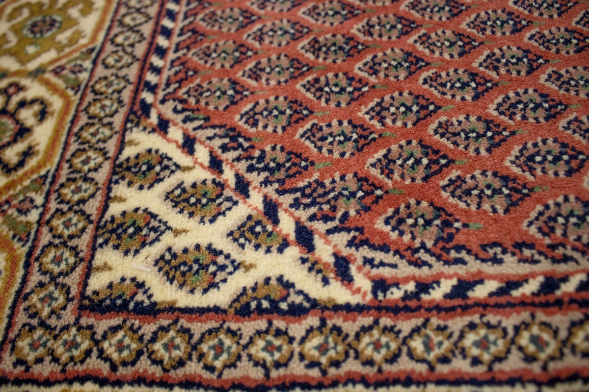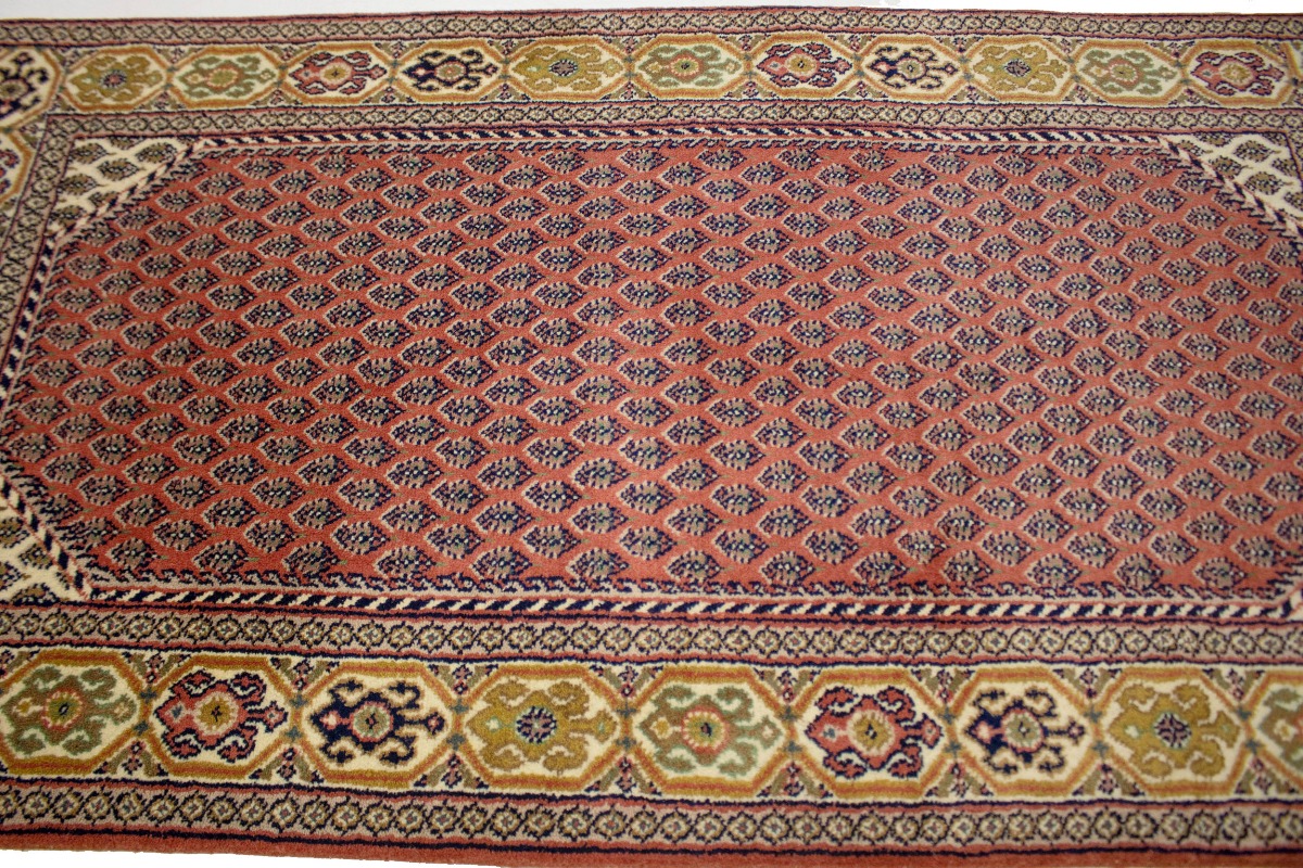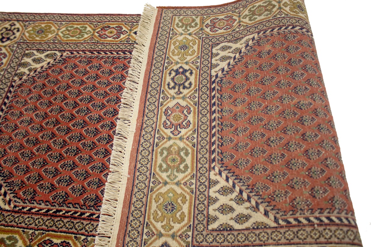 This original 2'5X4'5 red new Oriental rug was made by the hands of talented weavers influenced by a variety of gorgeous symmetrical artistic designs, to recreate the aged look of the unique piece with a richness of color and very balanced background field. What set this vintage style Oriental area rug from the others are the material and dye used (wool pile and cotton foundation), knot count, antique designs, fantastic grades, and its regional historical connection: it has deep roots, from the story of the people who produced it to the meaning of the symbols and colors displayed across its canvas that have been praised for centuries. This Indian home décor carpet will be completely cozy and inviting that never will go out of style! Also, this Oriental rug would be among your most valuable treasures, it is a great investment that accrues value over time, and it will last a lifetime because was woven with high-quality, all-natural wool. Eco-friendly, opulent yet affordable; this rug will give you an extra pop of character to help define your home environment with sophistication and warmth that will capture the eyes and attention of your audience (homeowners, designers, decorators, family and friends). OT-3301