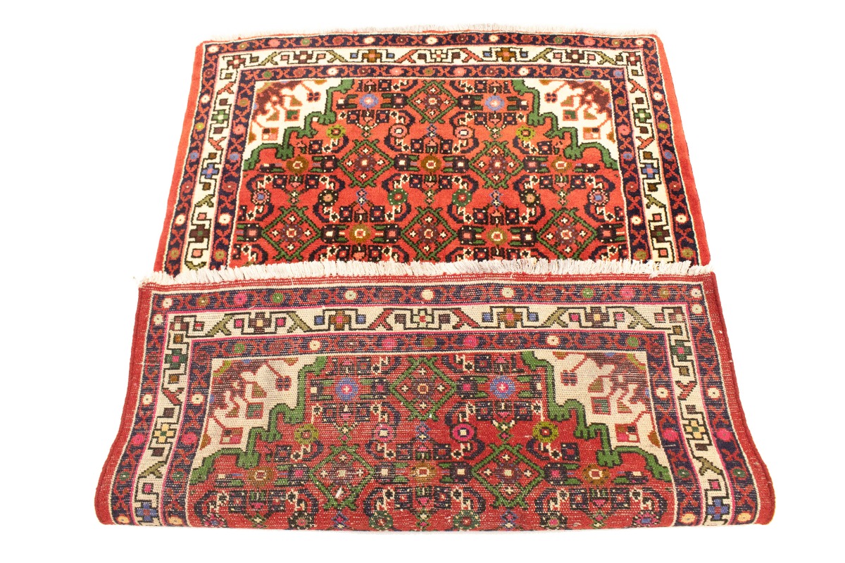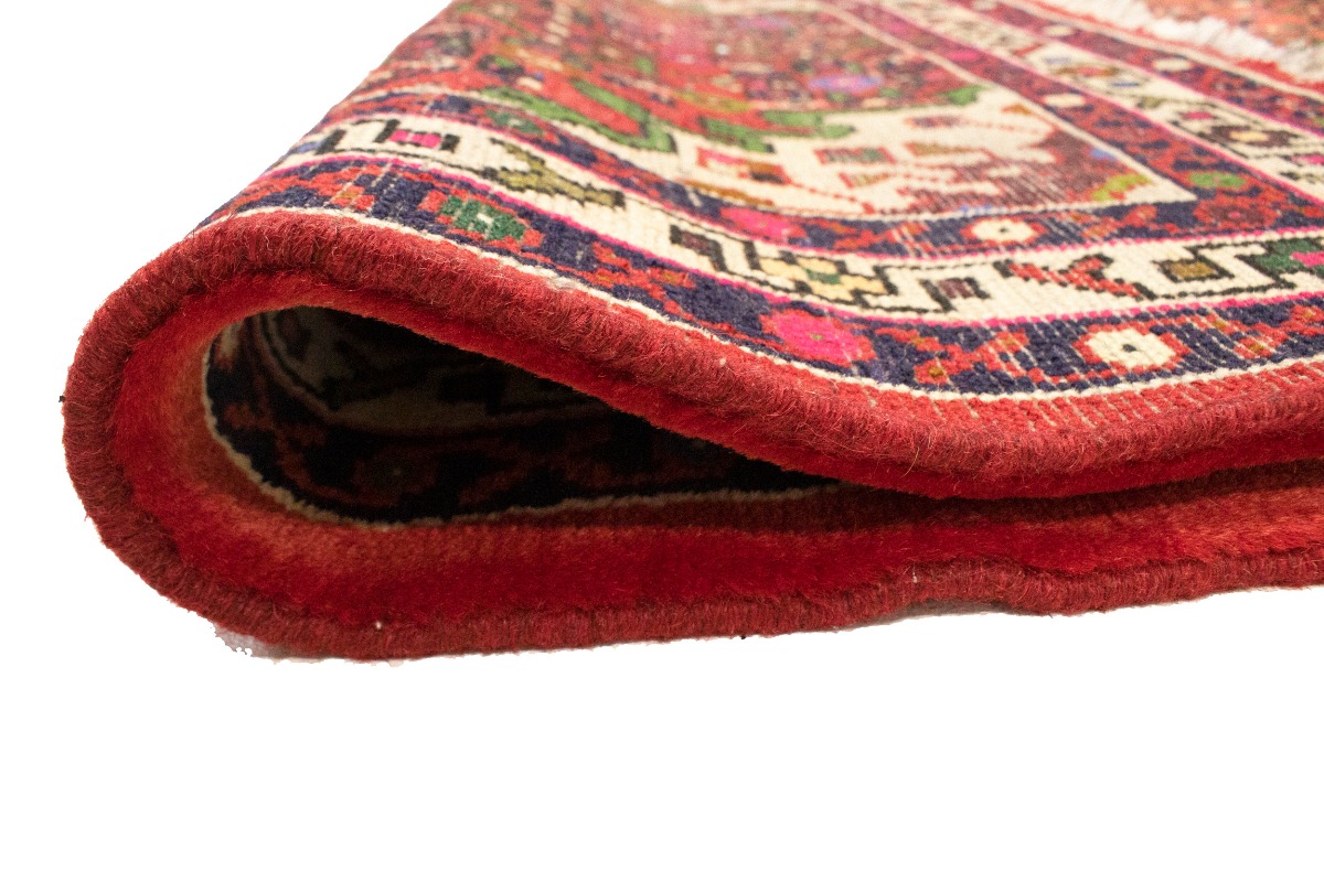 This original 3X5 red vintage Persian rug was crafted by the hands of skilled weavers enthused by a variety of lovely artistic designs, to recreate the aged look of the unique piece with a richness of color and beautifully elaborated background field. What set this tribal Oriental area rug from the others are the material and dye used (wool pile and cotton foundation), knot count, ancient designs, fantastic grades, and its regional historical connection: it has deep roots, from the story of the people who produced it to the meaning of the symbols and colors displayed across its canvas that have been praised for centuries. This home décor carpet will be completely cozy and inviting that never will go out of style! Also, this Oriental rug would be among your most valuable treasures, it is a great investment that increase in value over time, and it will last for generations because was woven with high-quality, all-natural wool; it won’t rip, tear, or shed. Environmentally friendly, opulent yet affordable; this Persian rug will give you a thorough amount of character to help define your living space with sophistication and warmth that will capture the eyes and attention of your audience (homeowners, designers, decorators, family and friends). RT-2120