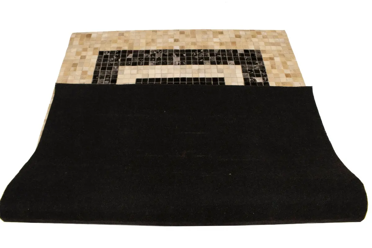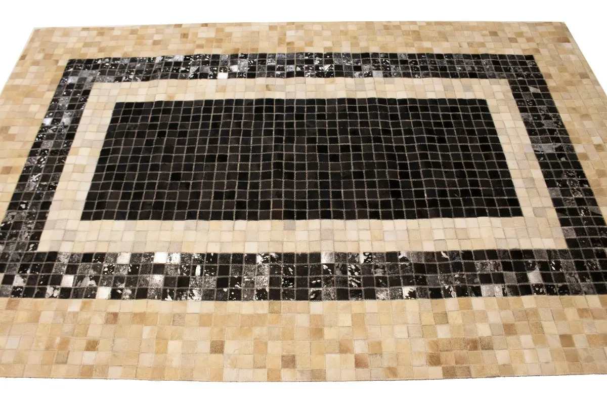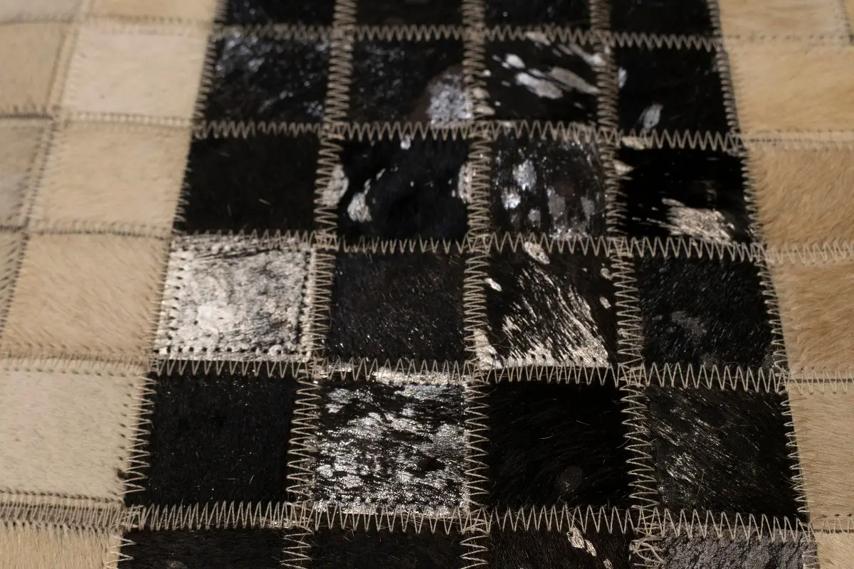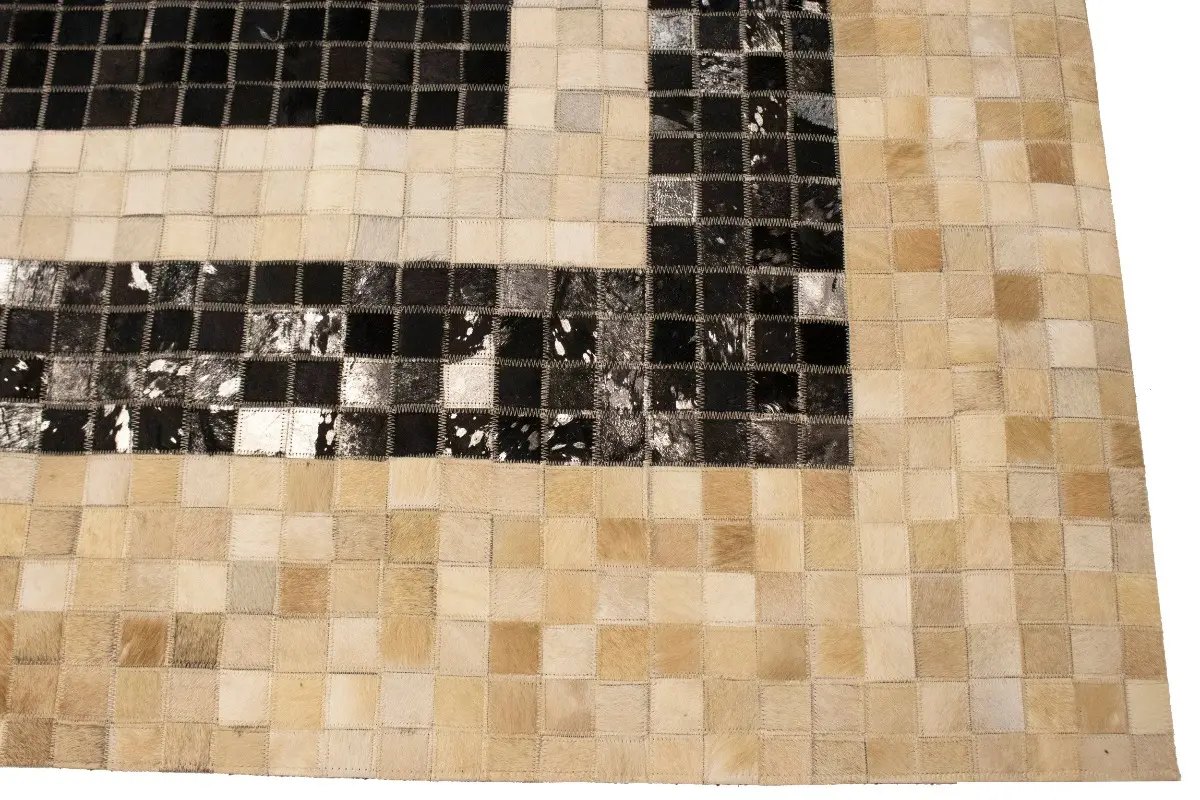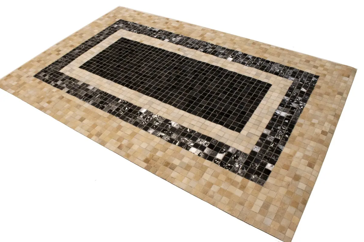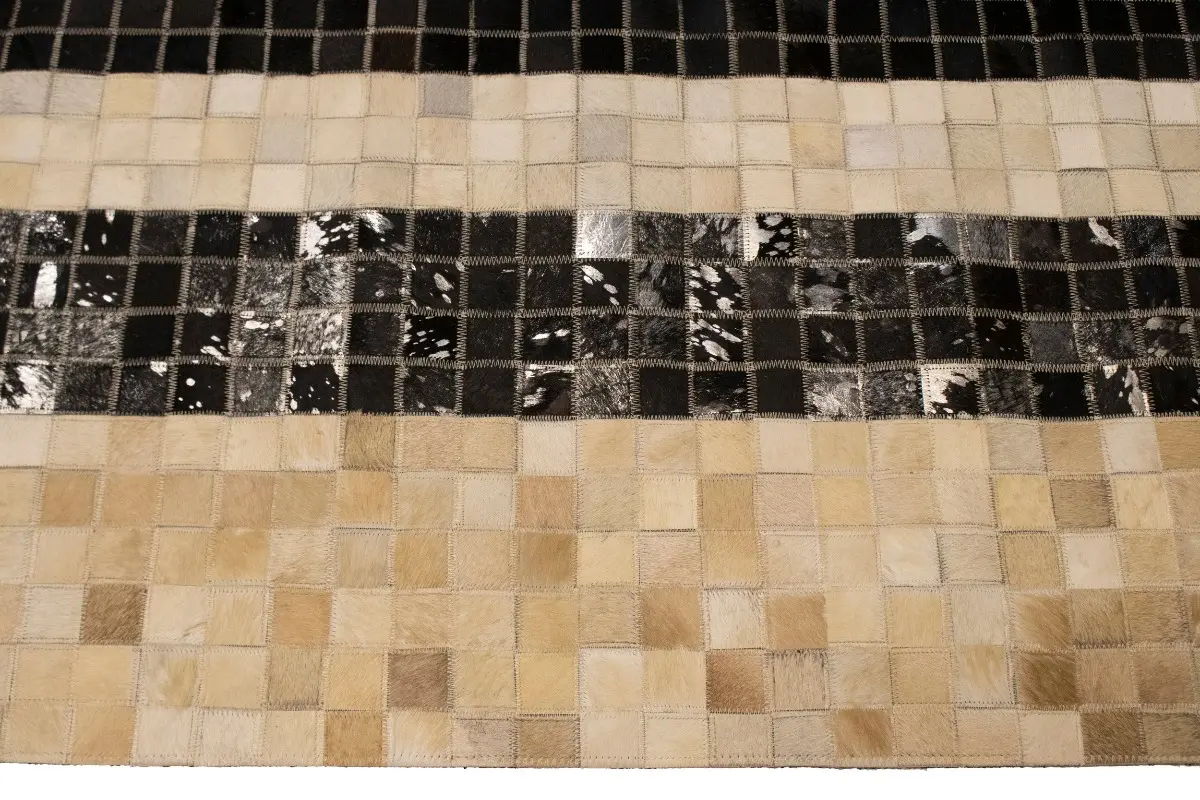 Black Beige Cowhide 5X8 Modern Leather Rug