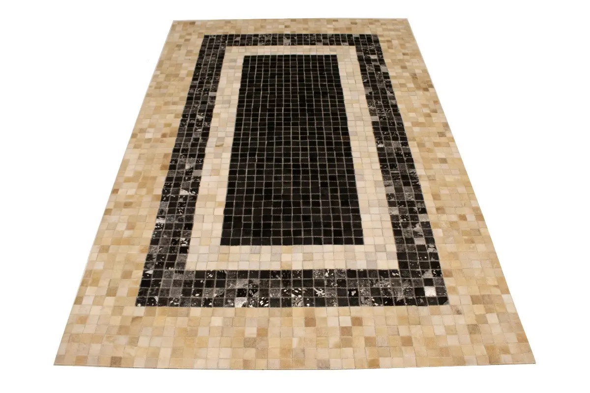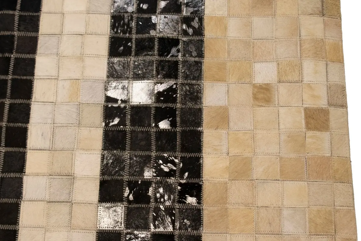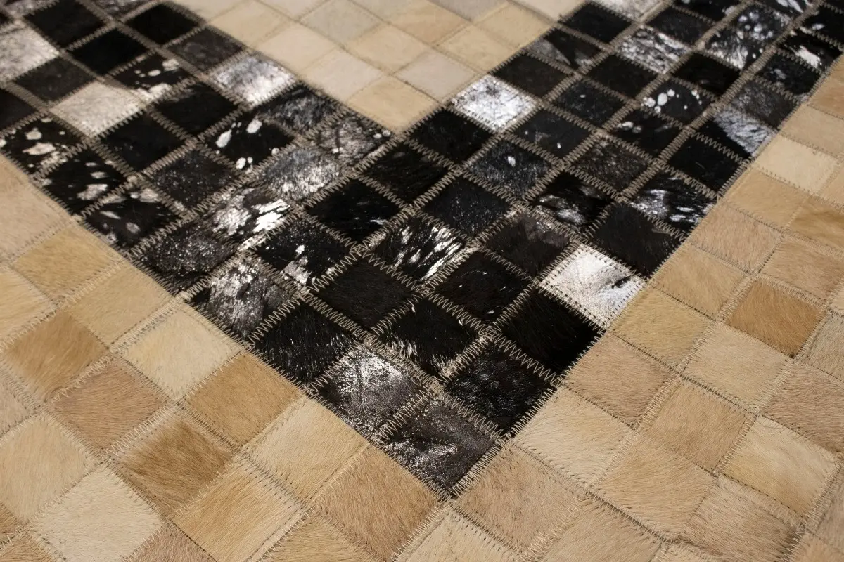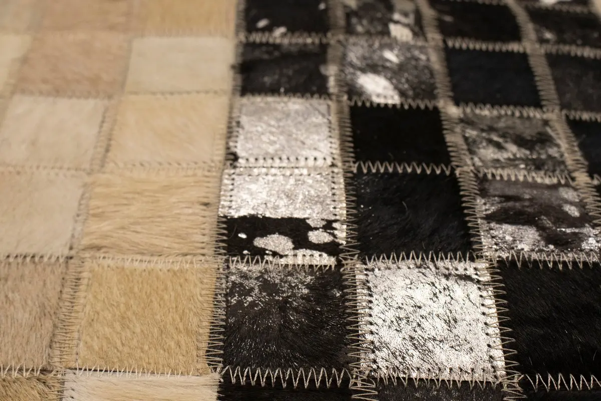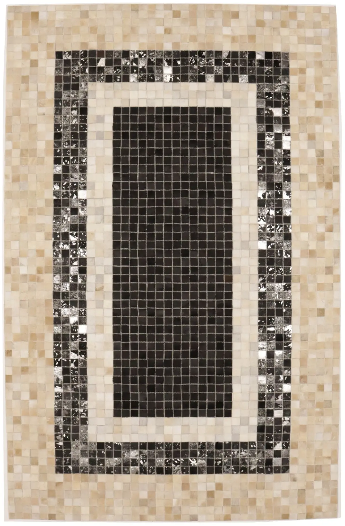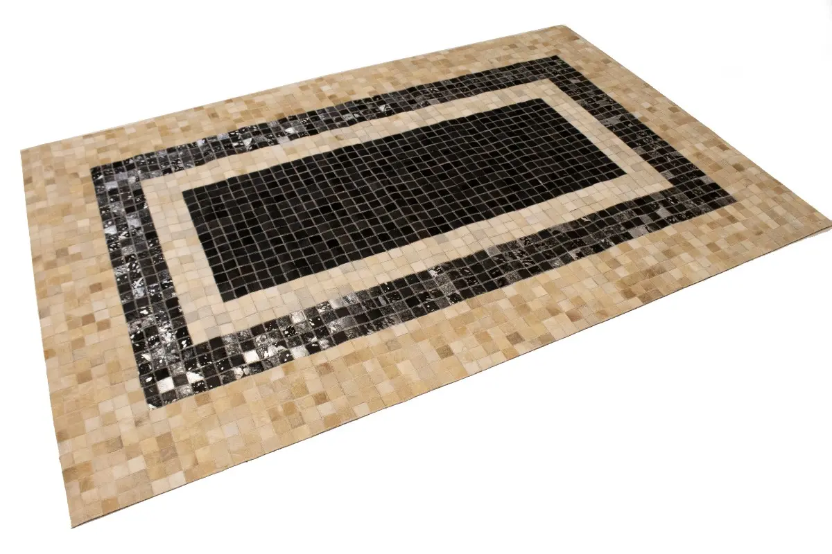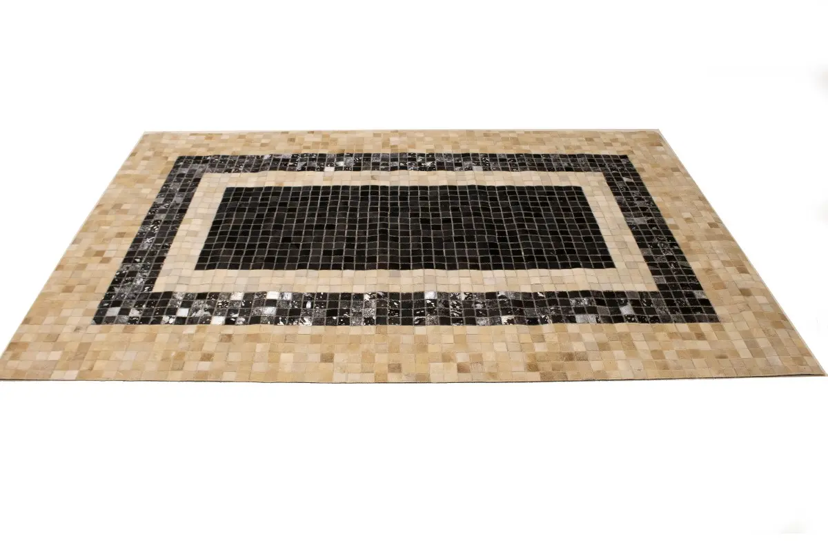 Black Beige Cowhide 5X8 Modern Leather Rug