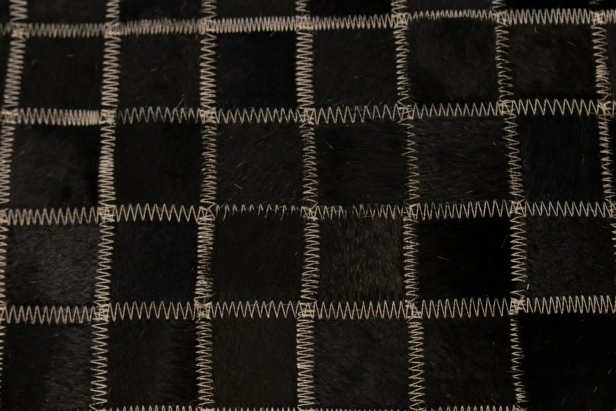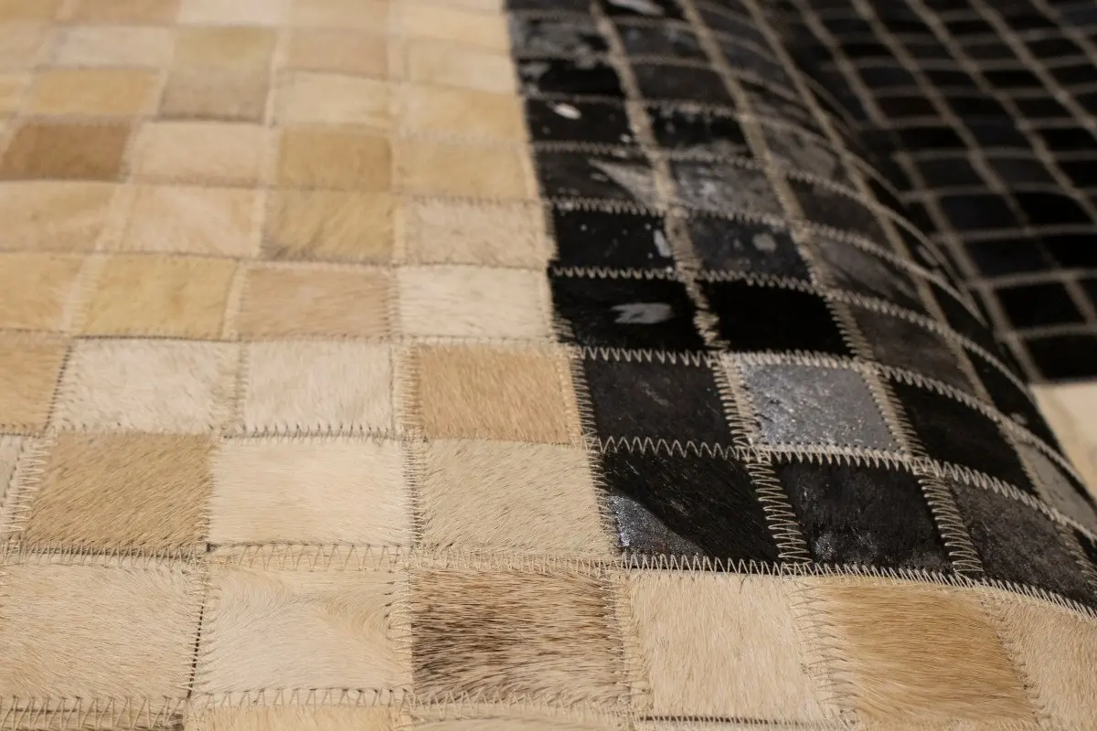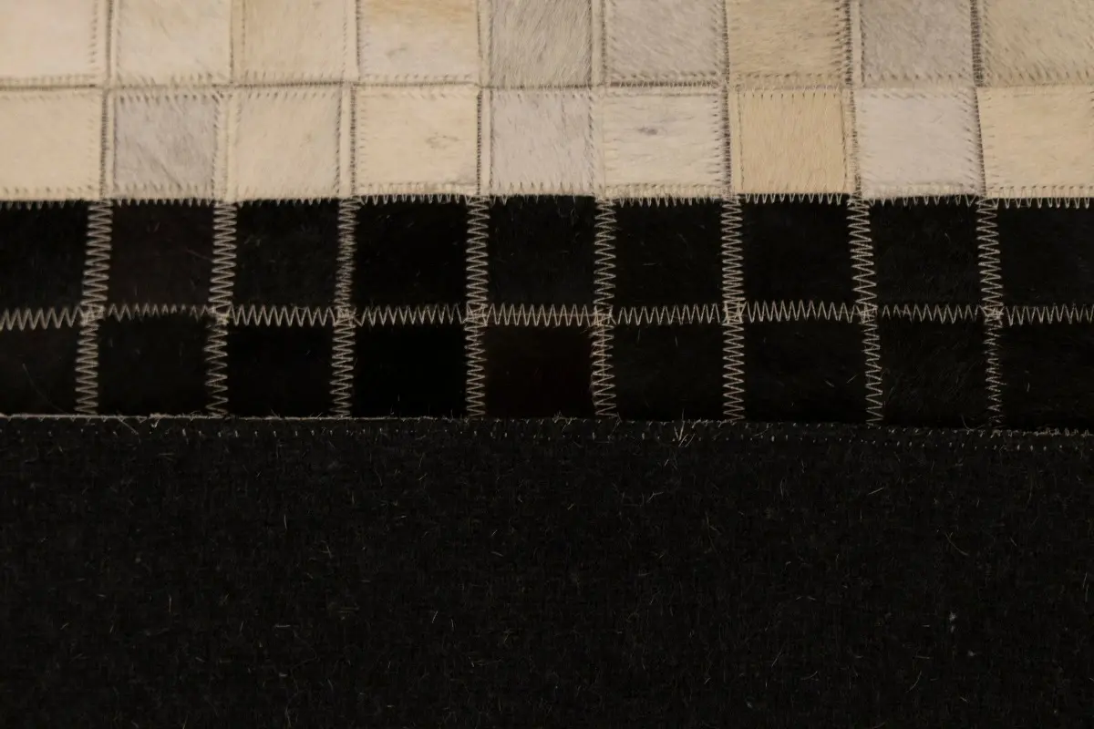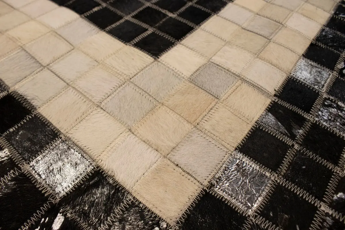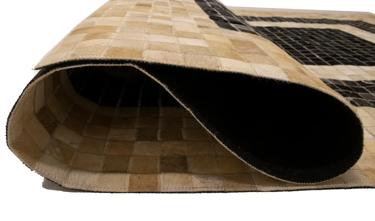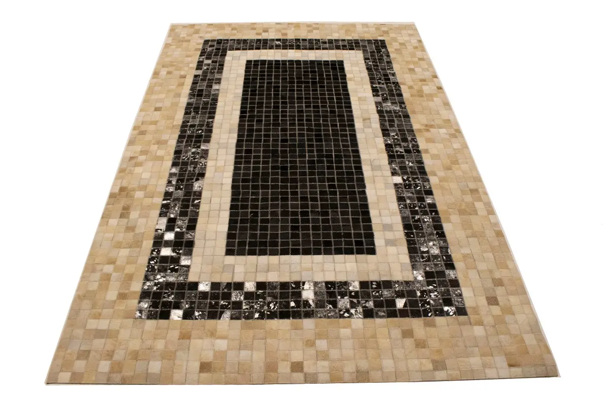 Black Beige Cowhide 5X8 Modern Leather Rug
