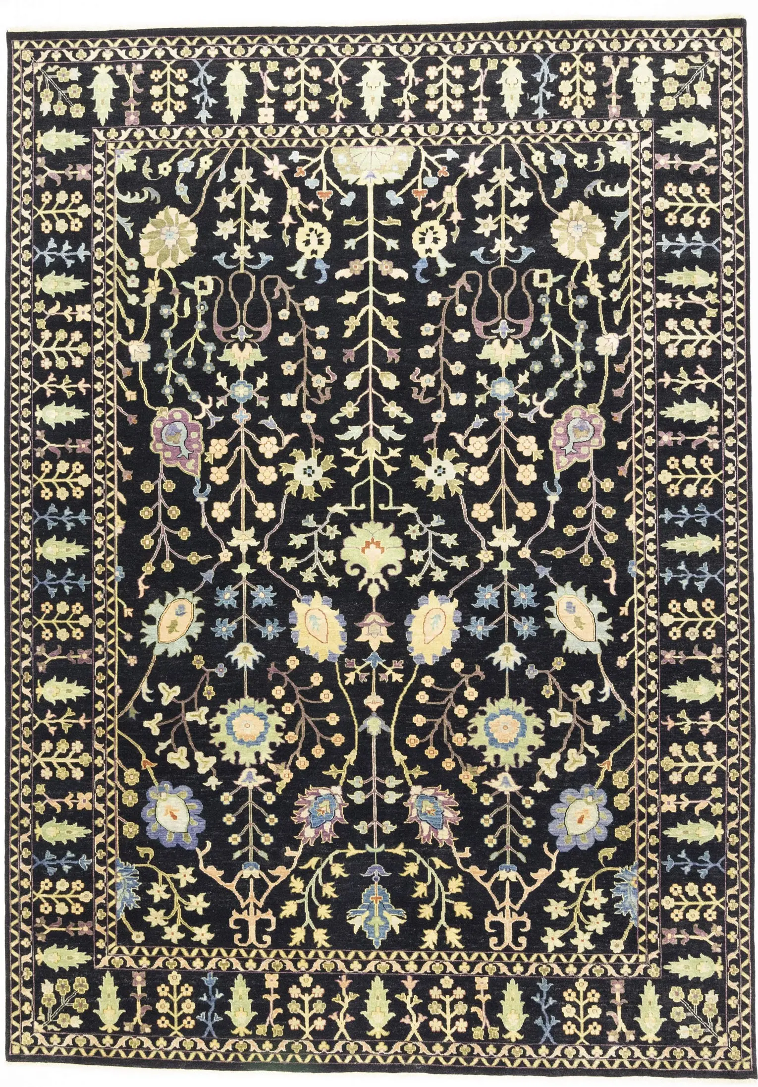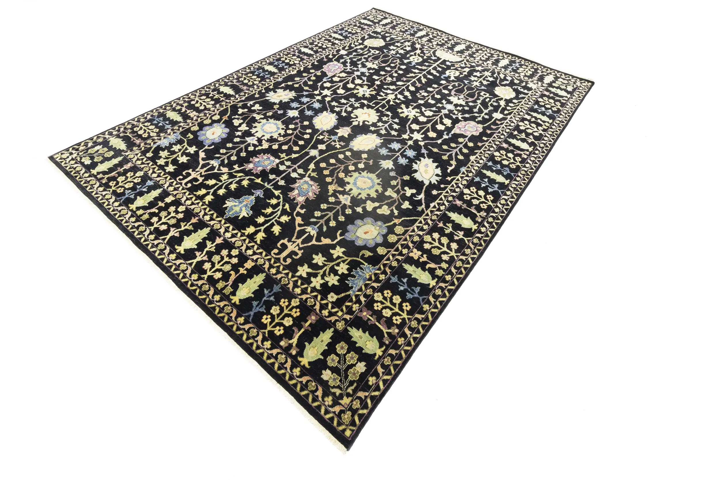 Hand Knotted 10X14 black oriental rug made with natural dyes (fine wool pile and cotton foundation), superior knot count, and alluring ancient designs. This Oriental rug never will go out of style and would be among your most valuable treasures.