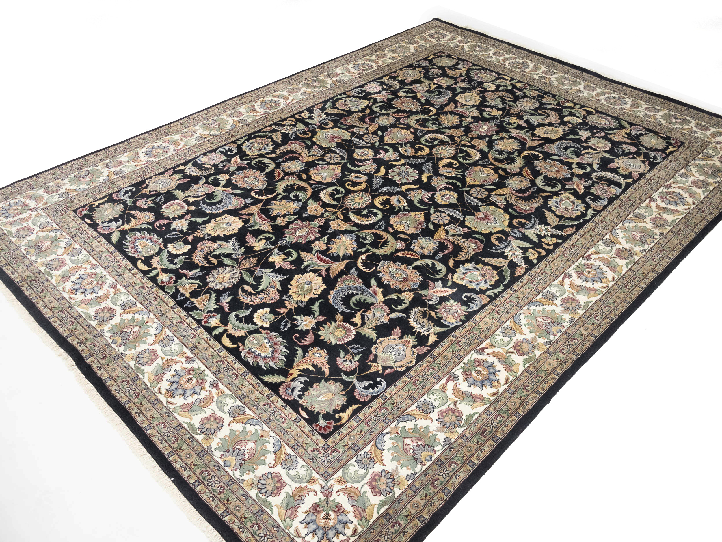 Hand Knotted 10X14 Black oriental rug made with natural dyes (fine wool pile and cotton foundation), superior knot count, and appealing ancient designs. This Oriental rug never will go out of style and would be among your most valuable treasures.