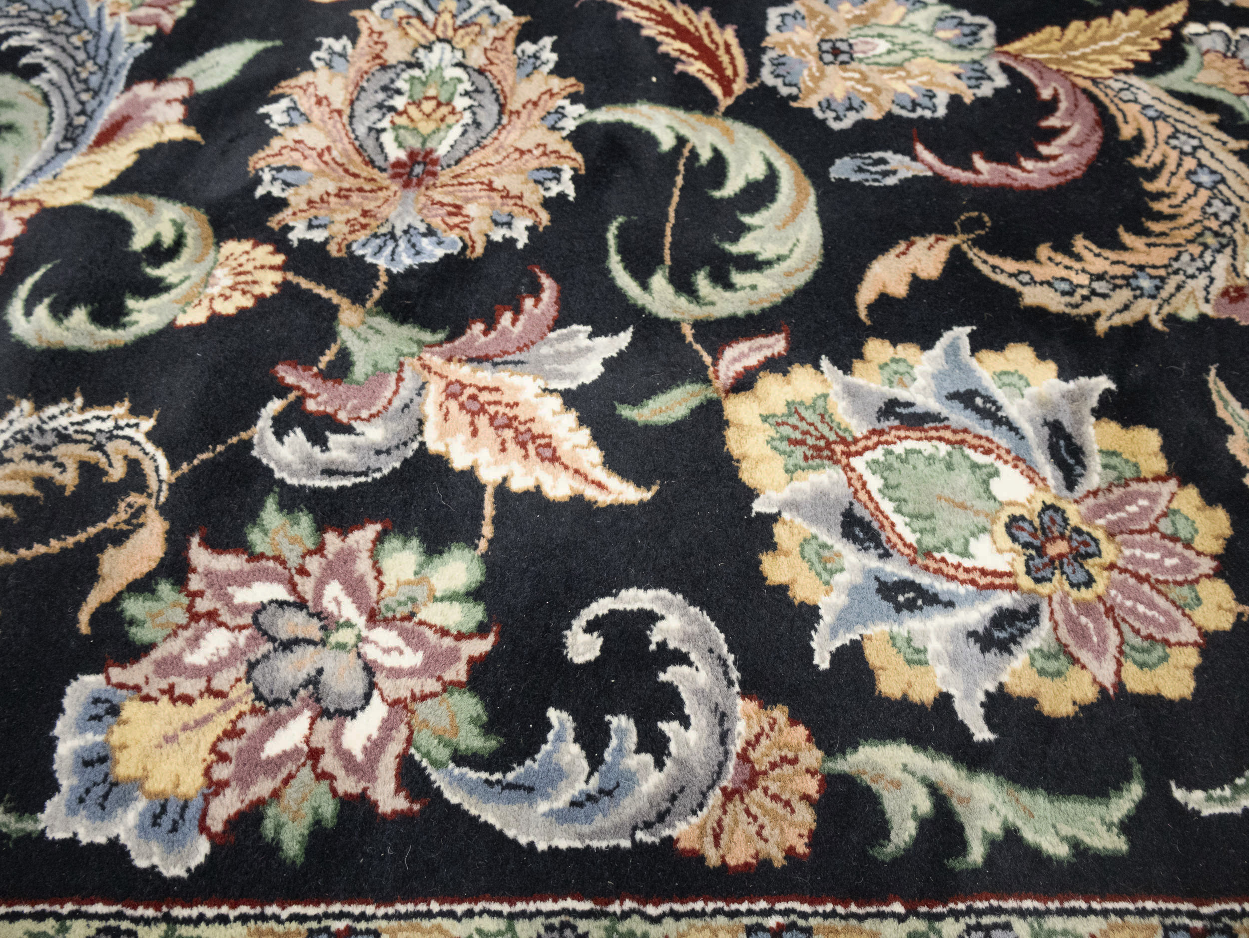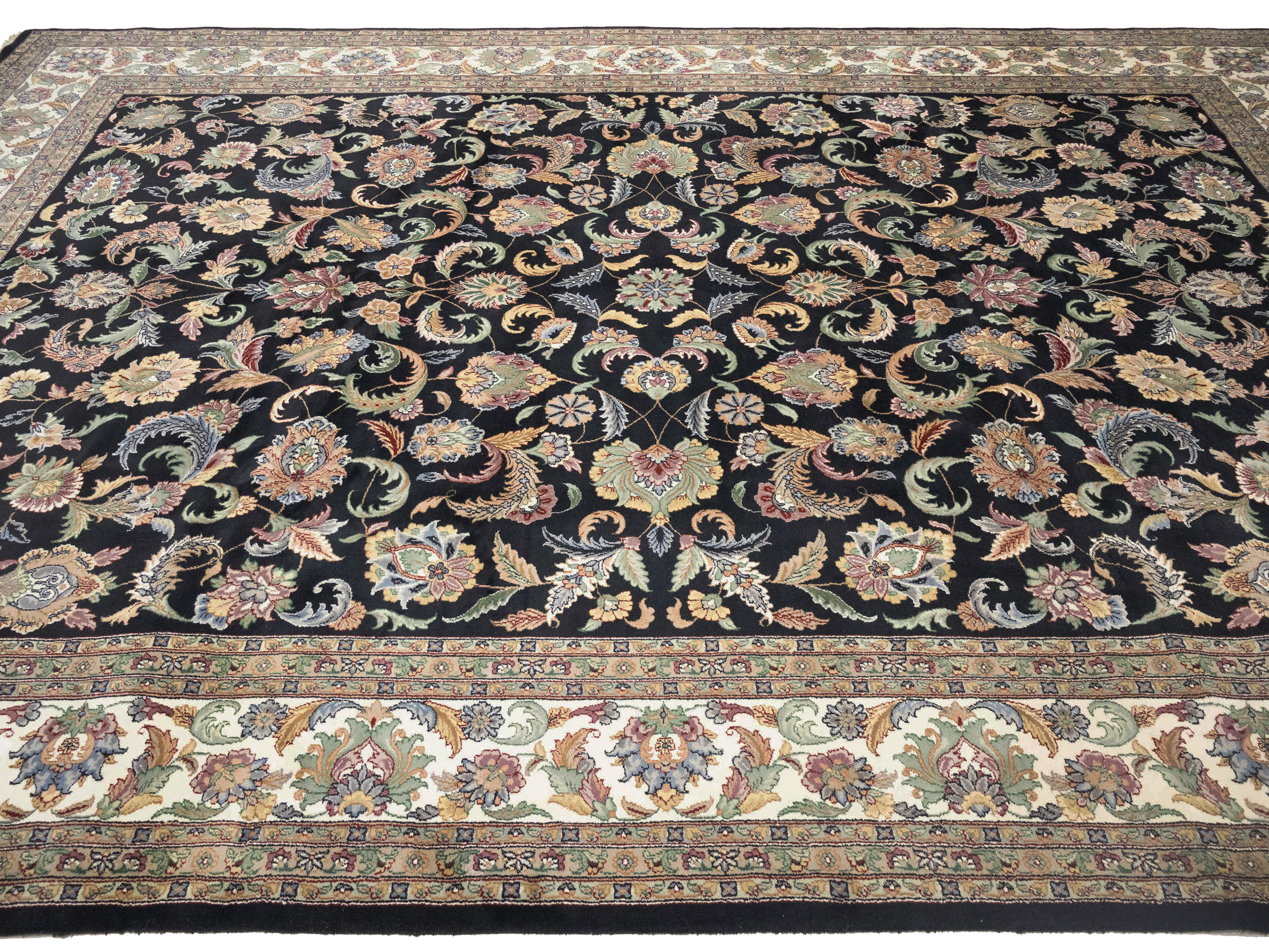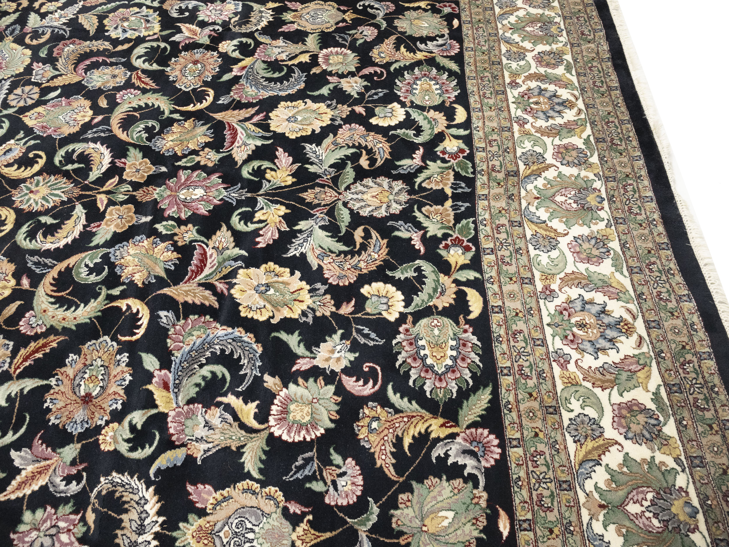 This original 10X14 Black new Oriental rug was finely knotted by the hands of weavers influenced by a variety of amazing artistic designs, to recreate the aged look of the exceptional piece with a richness of color and embellished background field. What set this vintage style Oriental area rug from the others are the material and dye used (wool pile and cotton foundation), knot count, antique designs, fantastic grades, and its regional historical connection: it has deep roots, from the story of the people who produced it to the meaning of the symbols and colors displayed across its canvas that have been praised for centuries. This Indian home décor carpet will be completely cozy and inviting that never will go out of style! Also, this Oriental rug would be among your most valuable treasures, it is a great investment that increase in value over time, and it will last a lifetime because was woven with high-quality, all-natural wool. Eco-friendly, opulent yet affordable; this rug will give you an extra pop of character to help define your home environment with luxury and warmth that will capture the eyes and attention of your audience (homeowners, designers, decorators, family and friends).<