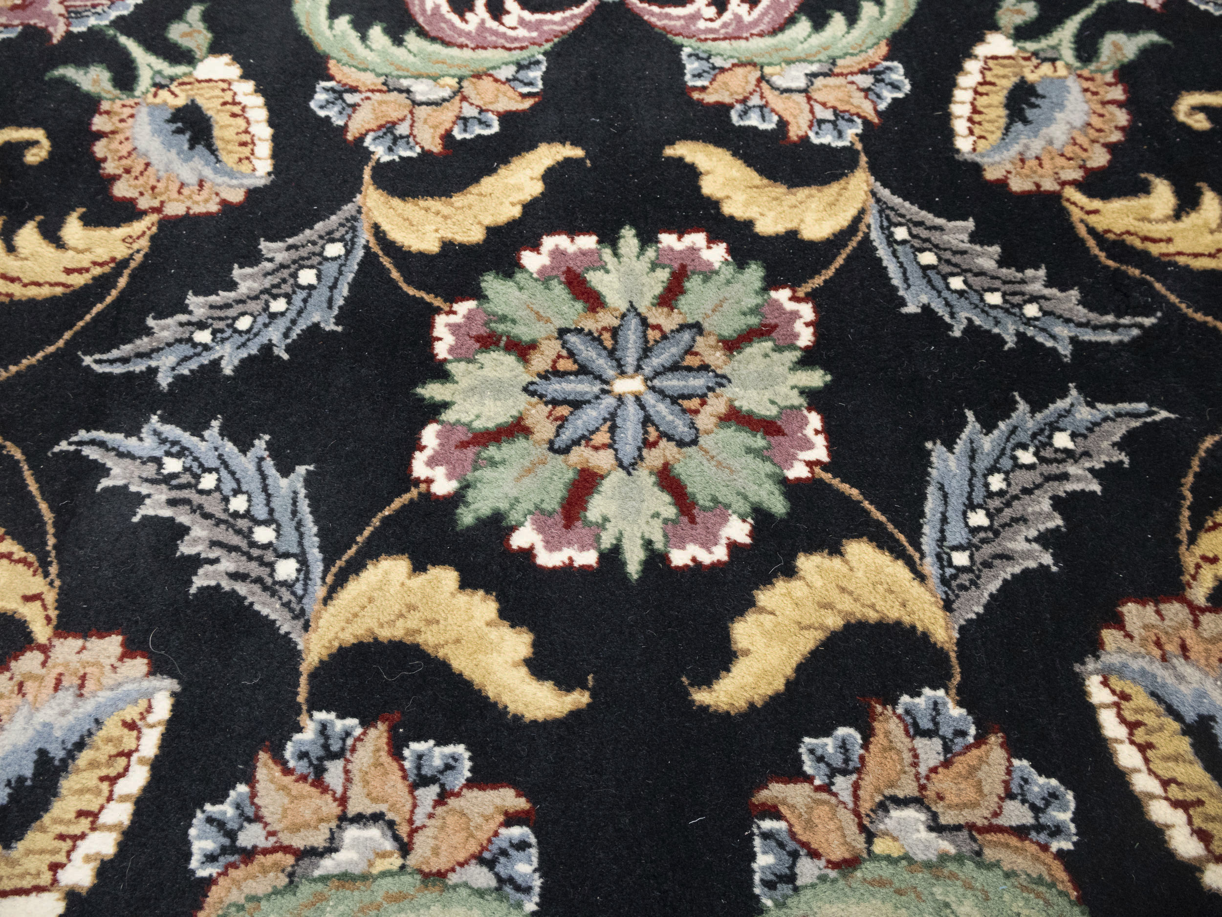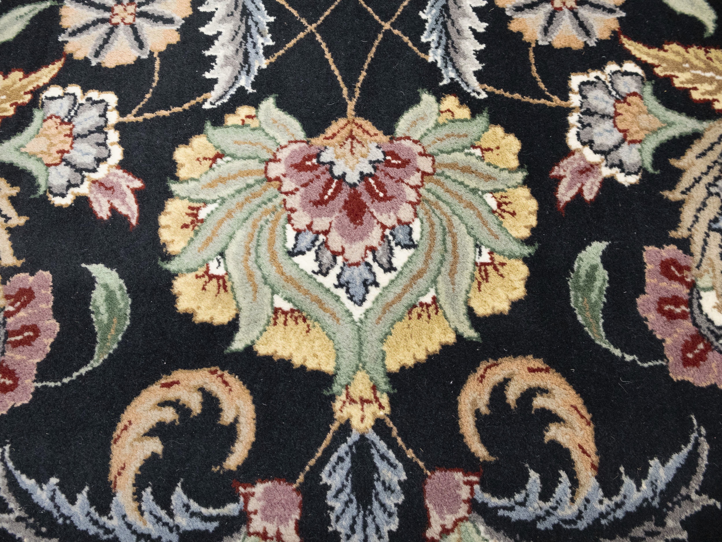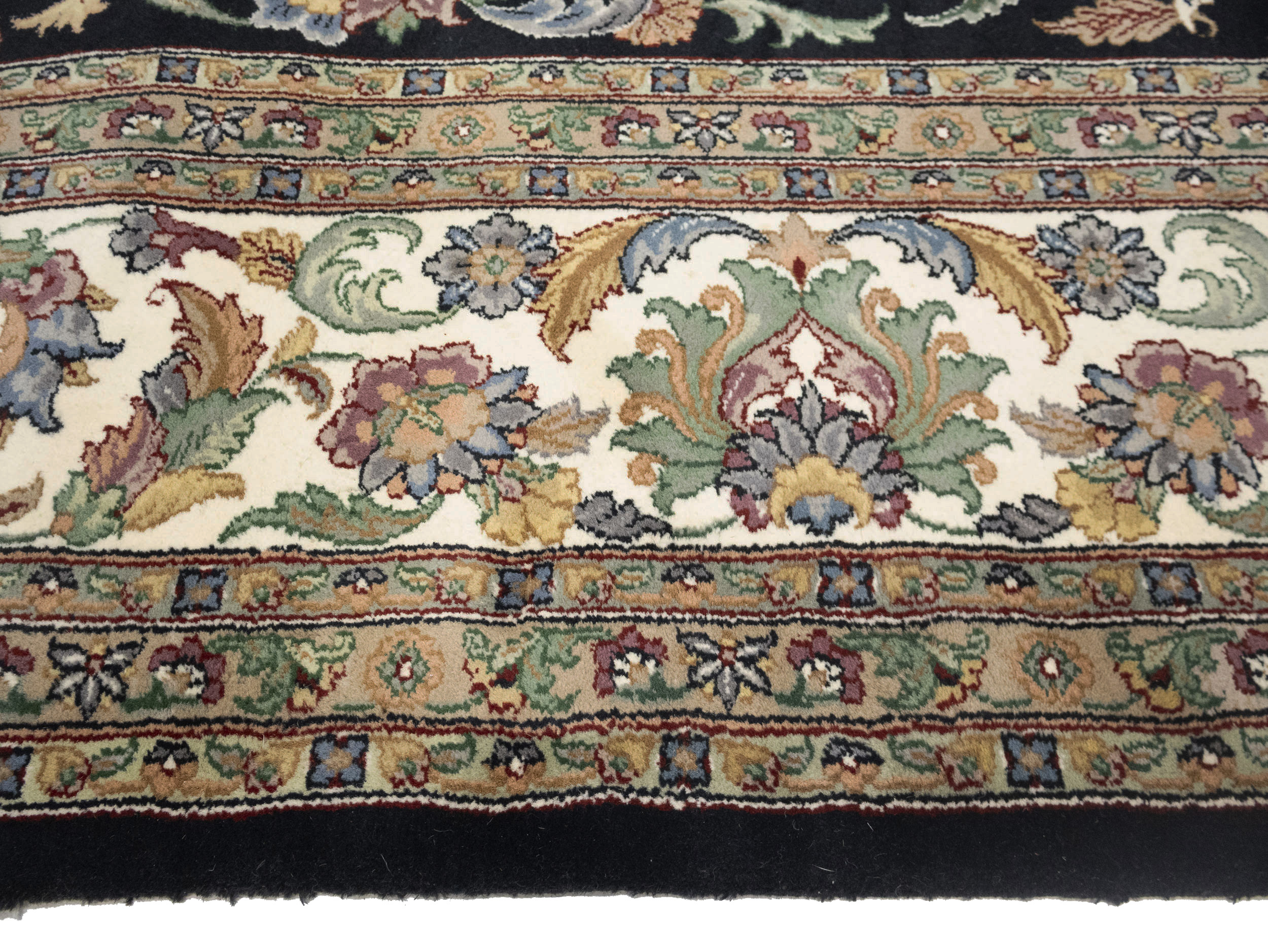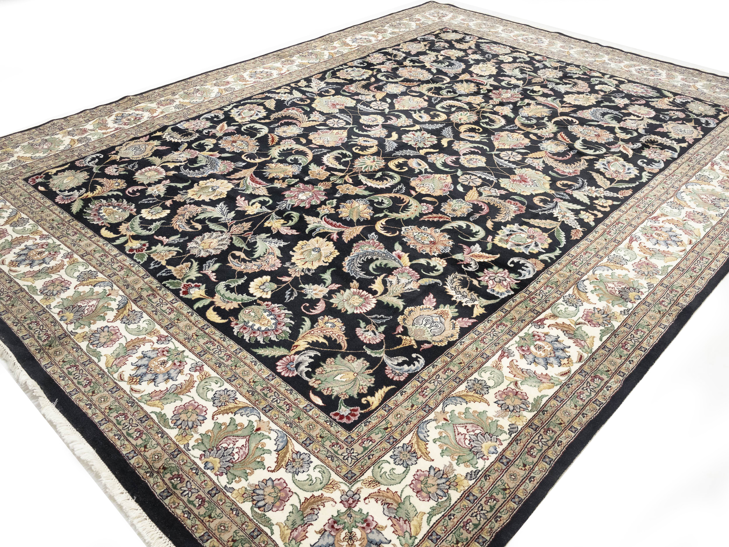 This original 10X14 Black new Oriental rug was finely knotted by the hands of weavers influenced by a variety of amazing artistic designs, to recreate the aged look of the exceptional piece with a richness of color and embellished background field. What set this vintage style Oriental area rug from the others are the material and dye used (wool pile and cotton foundation), knot count, antique designs, fantastic grades, and its regional historical connection: it has deep roots, from the story of the people who produced it to the meaning of the symbols and colors displayed across its canvas that have been praised for centuries. This Indian home décor carpet will be completely cozy and inviting that never will go out of style! Also, this Oriental rug would be among your most valuable treasures, it is a great investment that increase in value over time, and it will last a lifetime because was woven with high-quality, all-natural wool. Eco-friendly, opulent yet affordable; this rug will give you an extra pop of character to help define your home environment with luxury and warmth that will capture the eyes and attention of your audience (homeowners, designers, decorators, family and friends).<